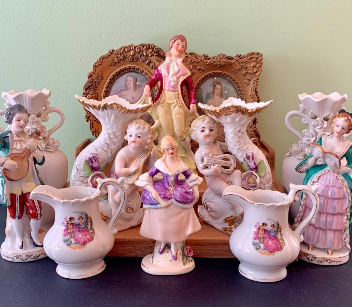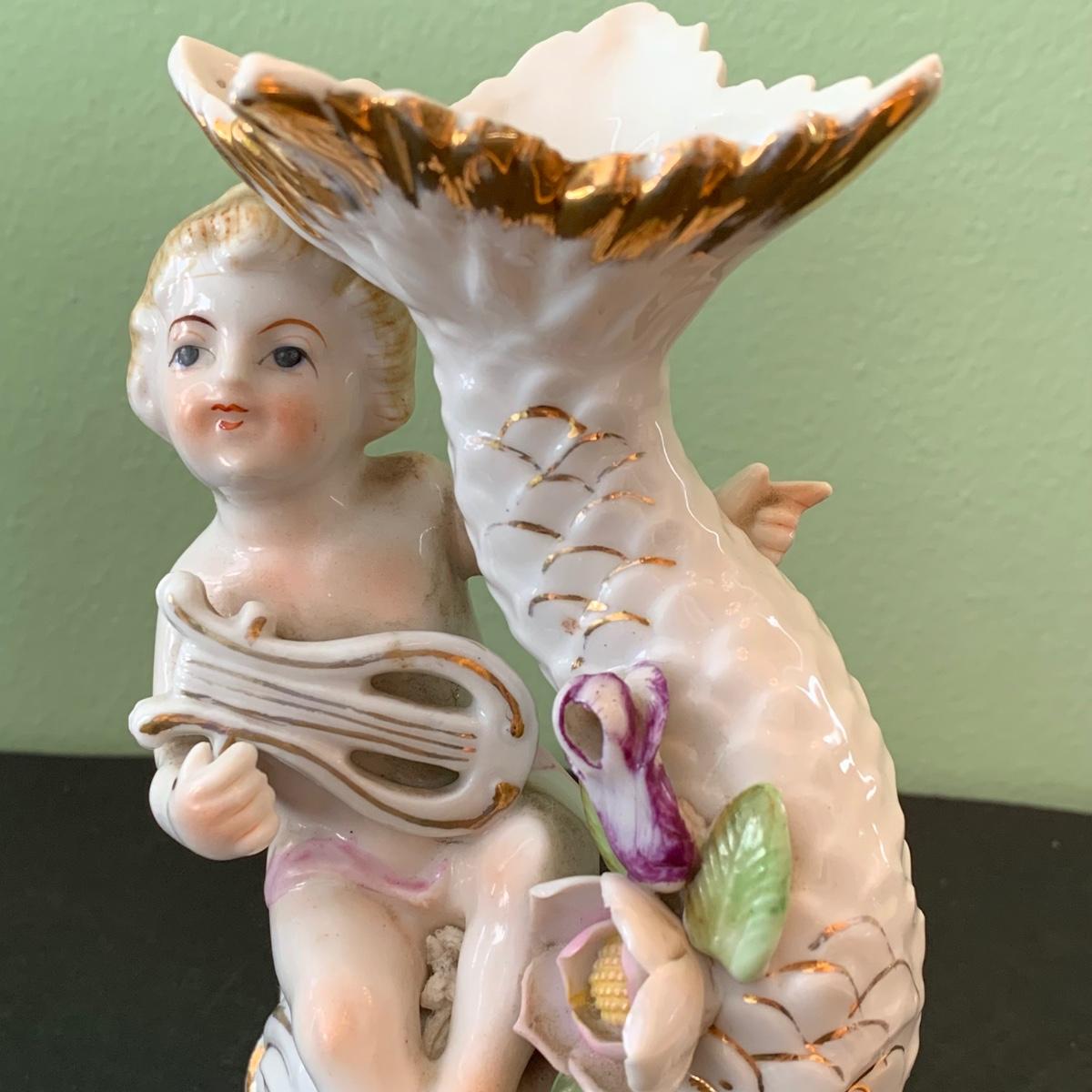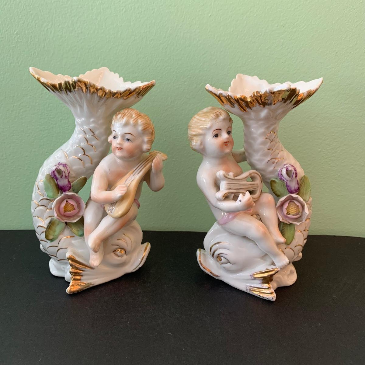 LOT 125L: Vintage Collectibles: Cherub/Fish Vase, Victorian Figurines, Lady Louisa Fitzgerald Portraits, White Porcelain Vases