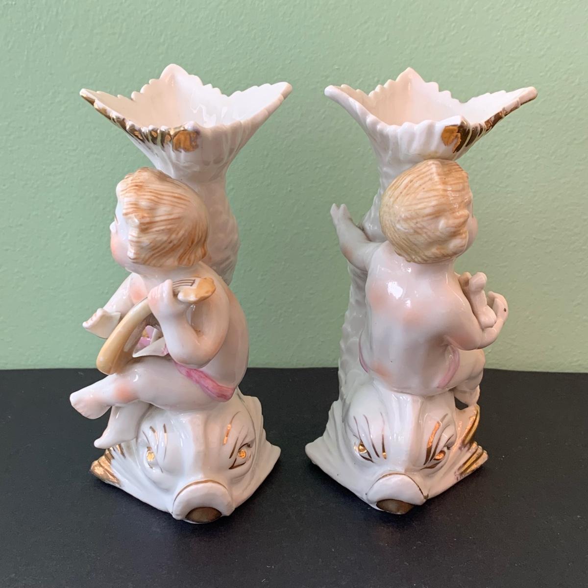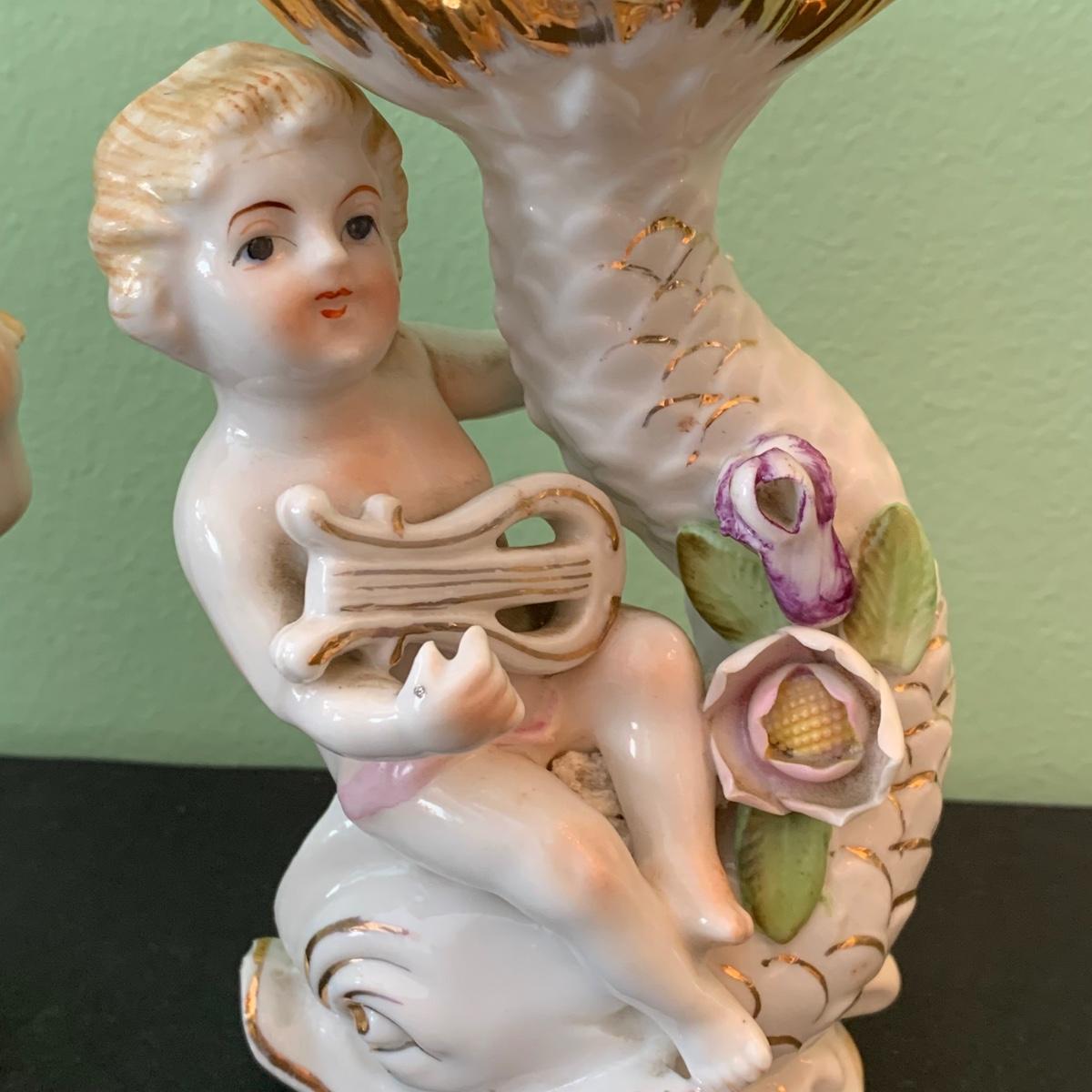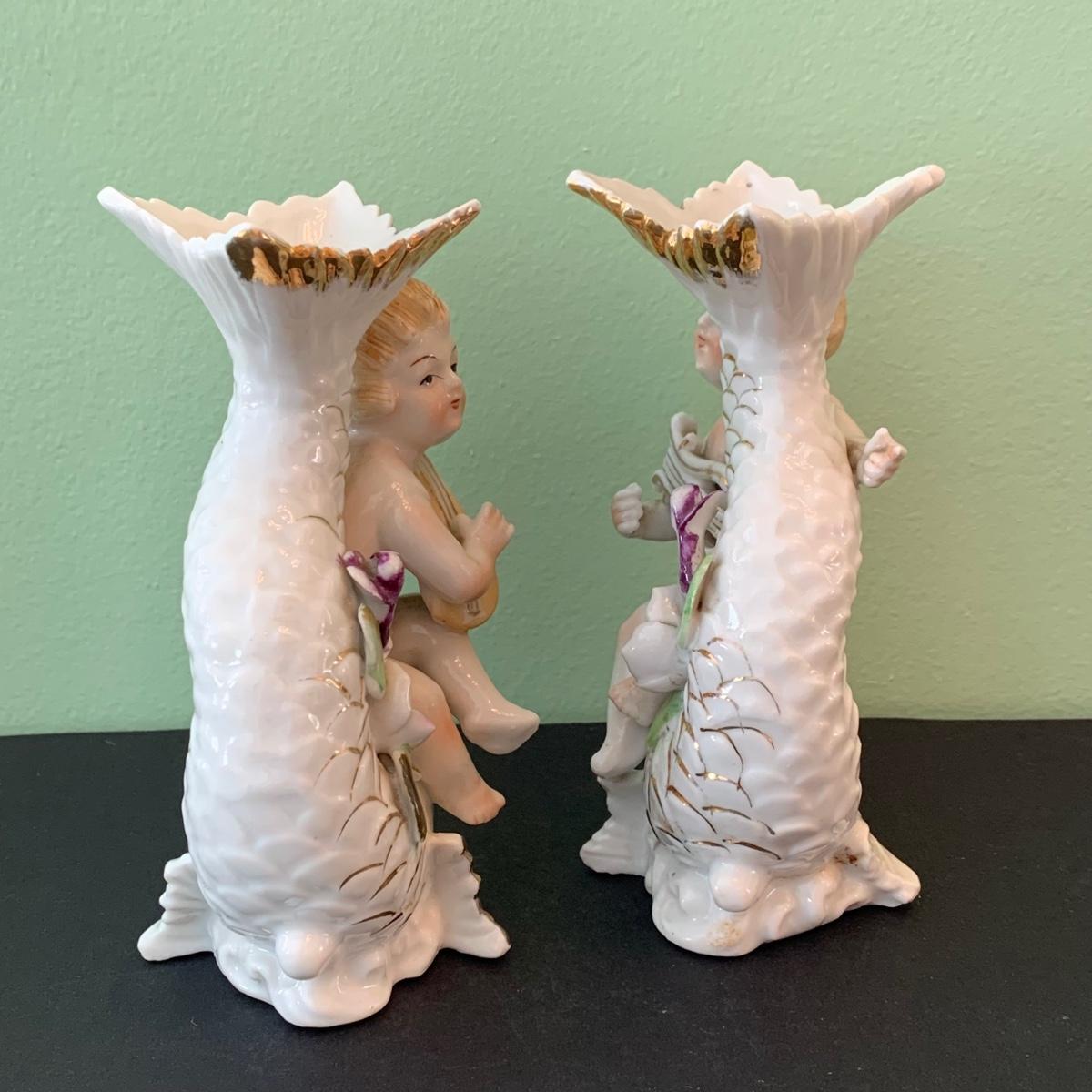 LOT 125L: Vintage Collectibles: Cherub/Fish Vase, Victorian Figurines, Lady Louisa Fitzgerald Portraits, White Porcelain Vases
