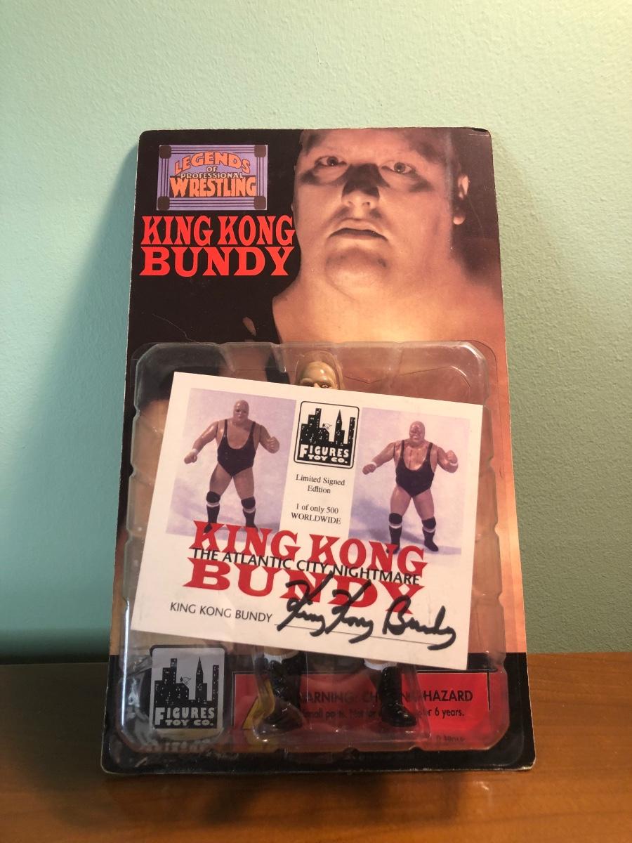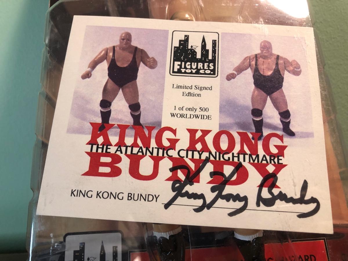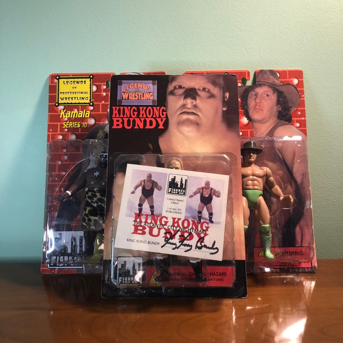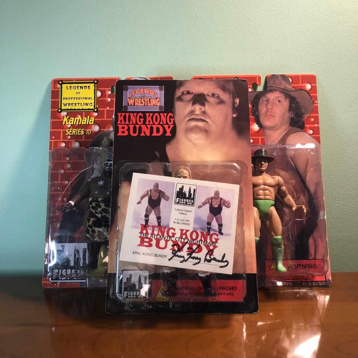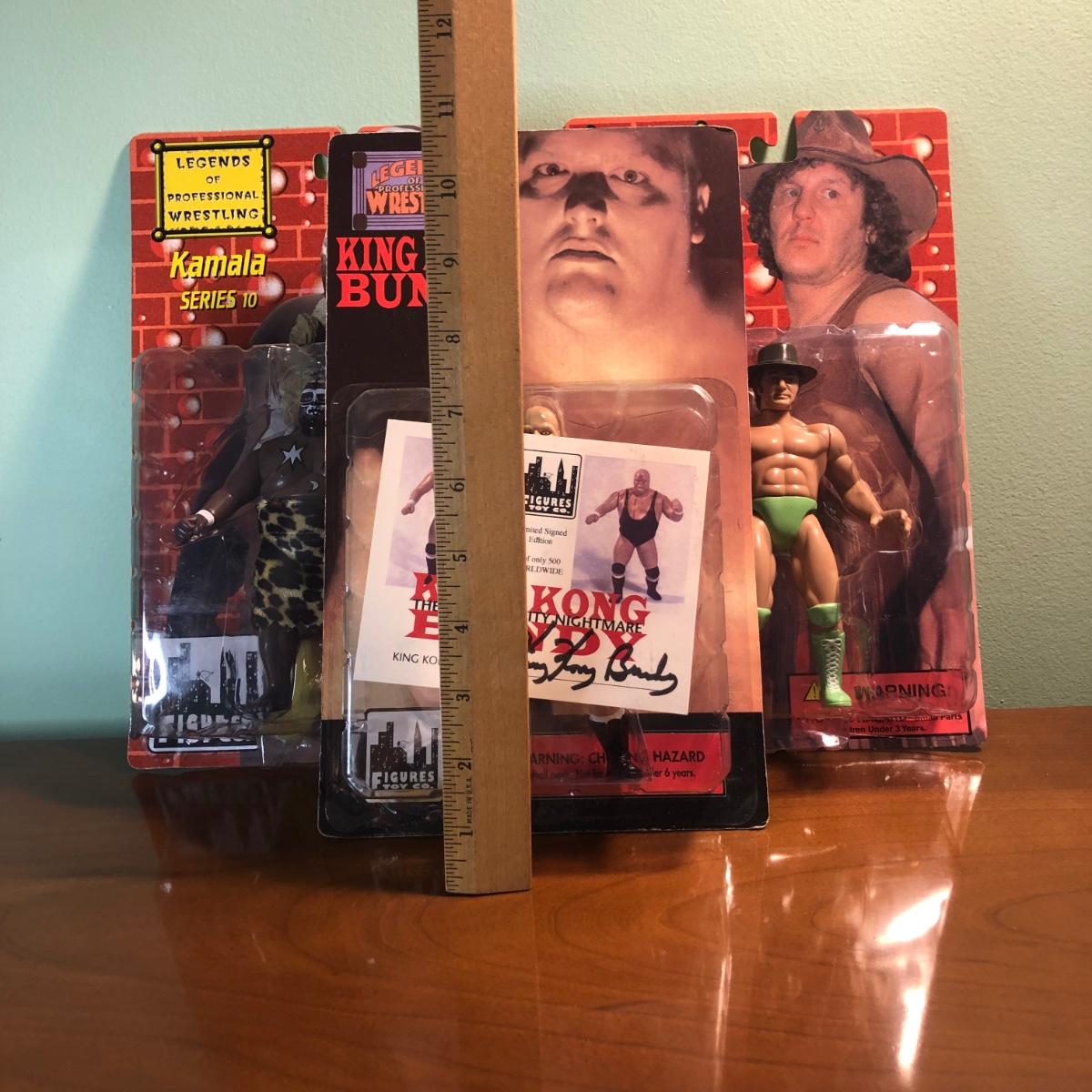 LOT 139MBC: Figures Toy Company Legends of Professional Wrestling - 1998 Limited Signed Edition King Kong Bundy, 2000 Series 10 Kamala & 2000 Series 12 Bob Orton Jr.