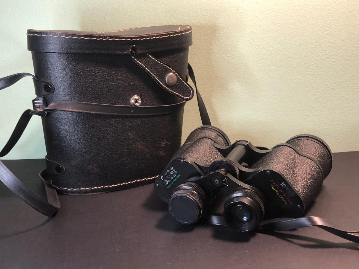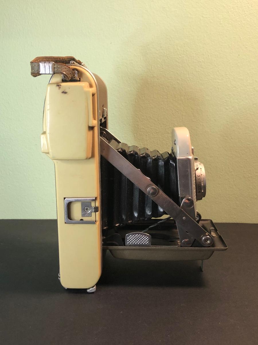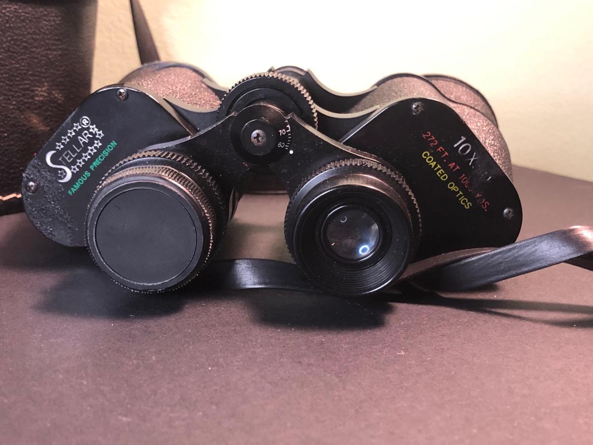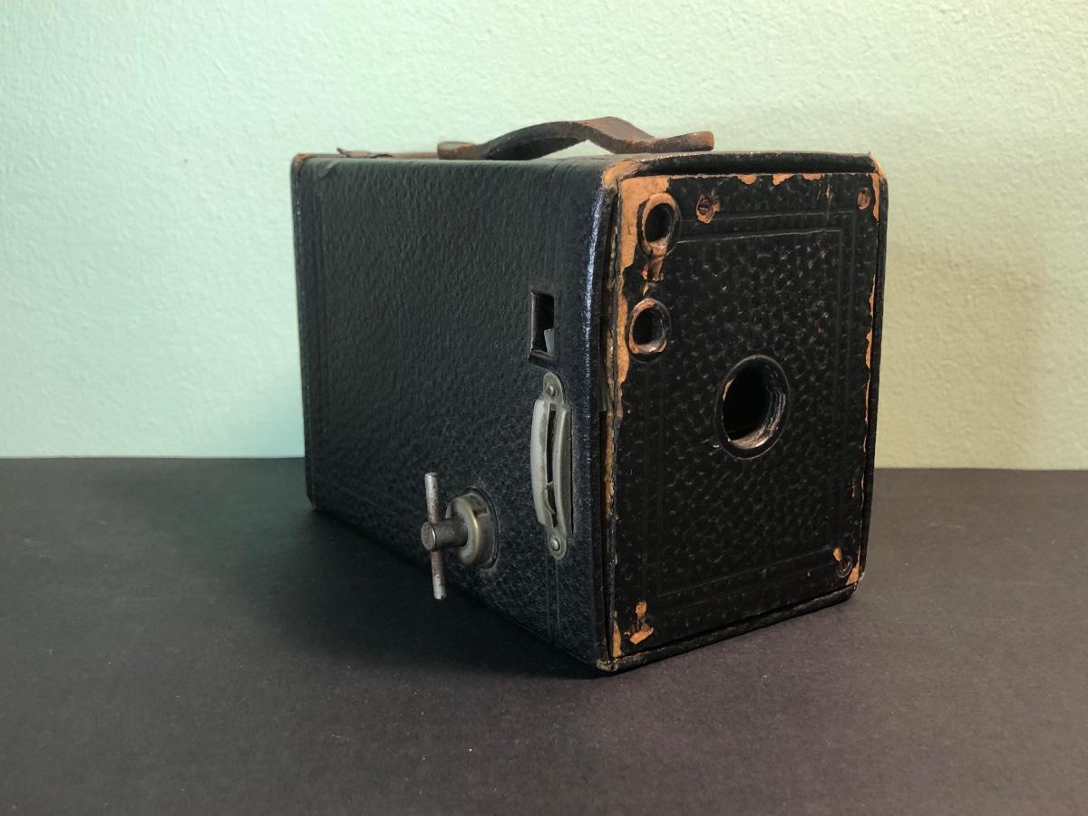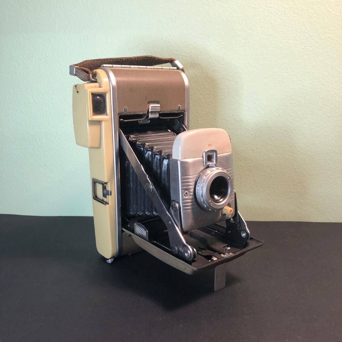 LOT 142MBC: Vintage Cameras & More - Polaroid Folding Model 80A, Kodak No. 2 Brownie Box, Polaroid OneStep Flash & Stellar Binoculars w/ Case