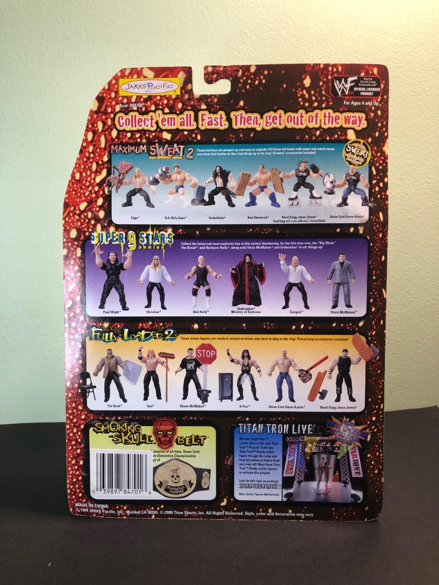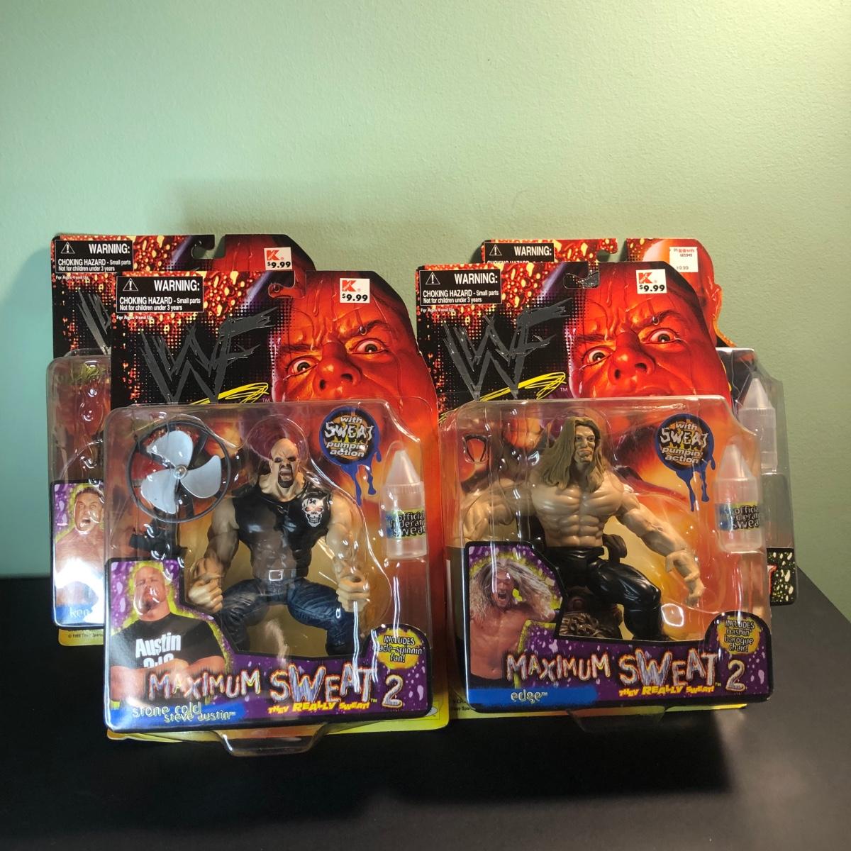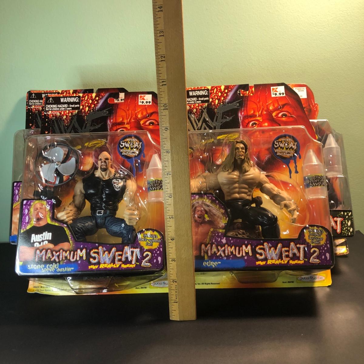 LOT 145MBC: NIP 1999 Jaaks Pacific WWF Maximum Sweat Figures - Undertaker, Ken Shamrock, Edge & Stone Cold Steve Austin