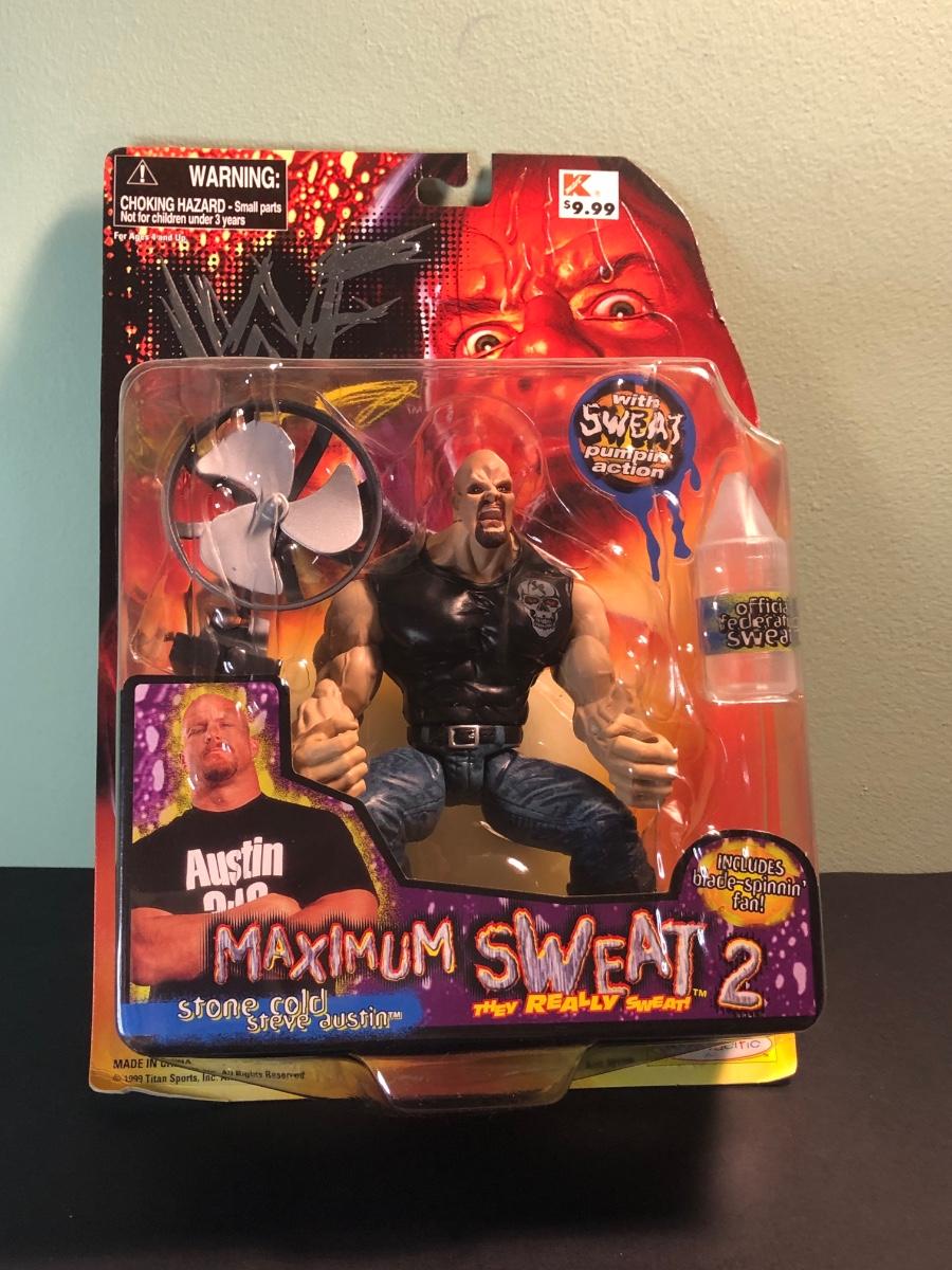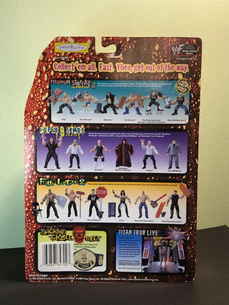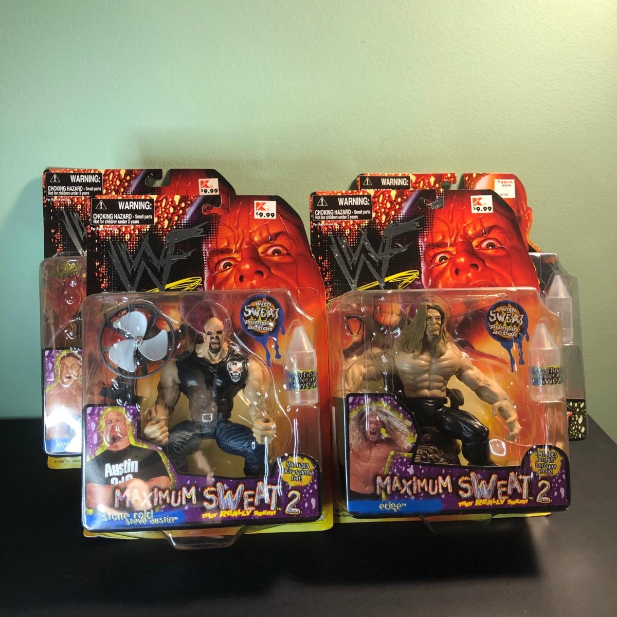 LOT 145MBC: NIP 1999 Jaaks Pacific WWF Maximum Sweat Figures - Undertaker, Ken Shamrock, Edge & Stone Cold Steve Austin