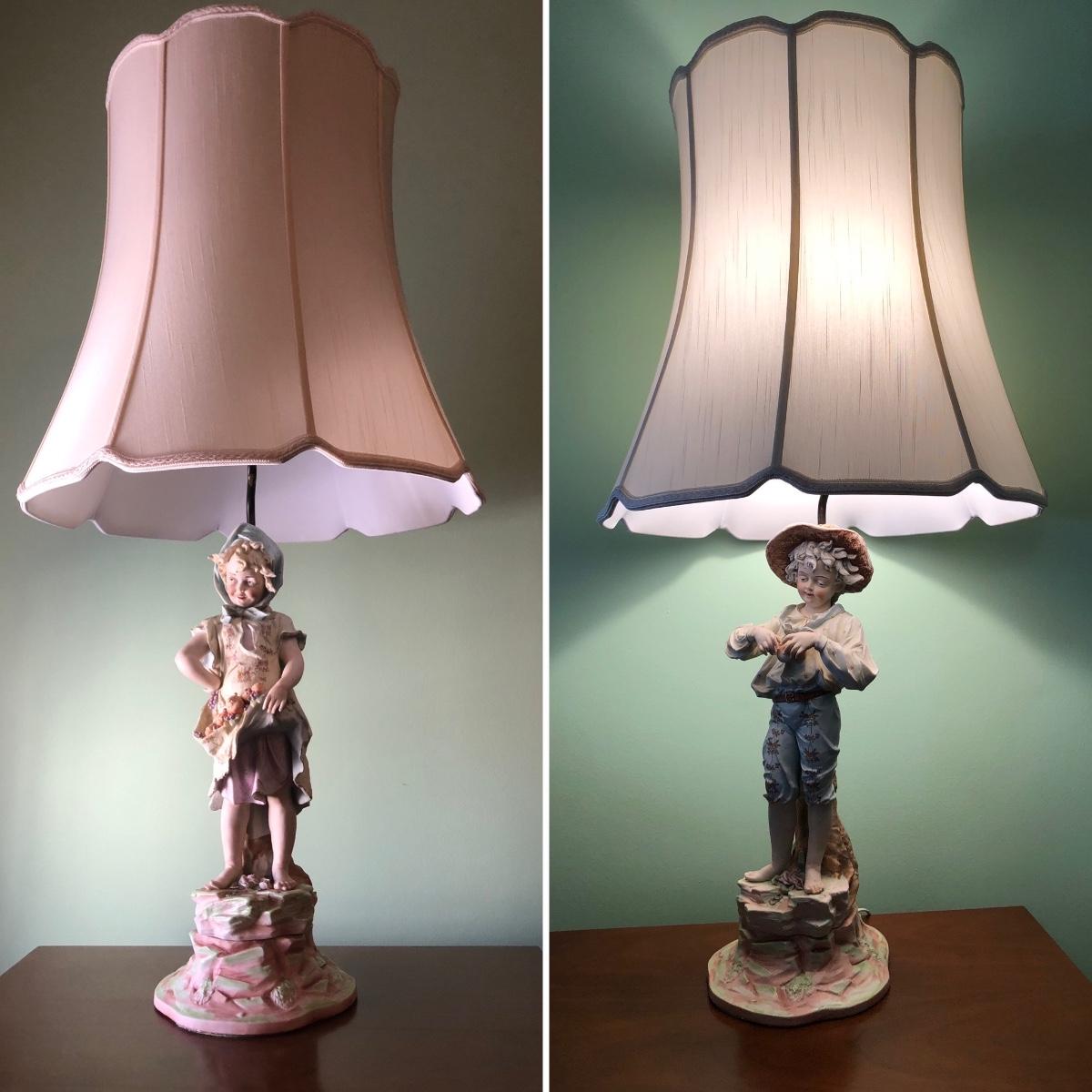 LOT 149GB: Two Vintage Signed J. Morie Porcelain Sculpture Figure Lamps