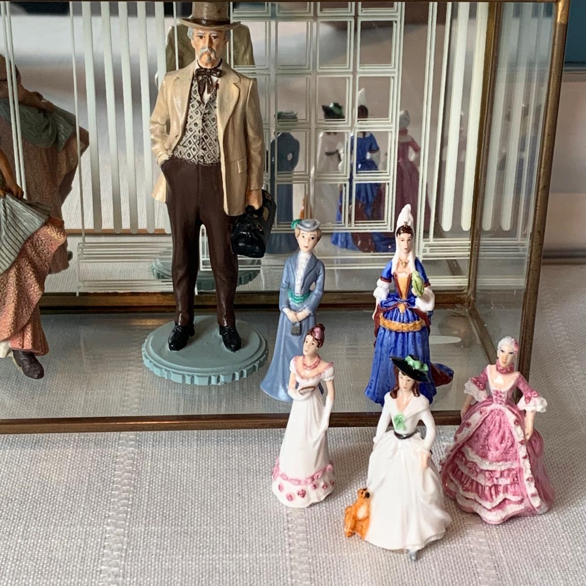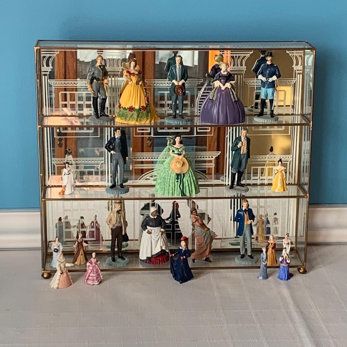 LOT 150FB: Gone with the Wind Figures w/ Mirrored Display Stand - Franklin Mint & Fine Porcelain