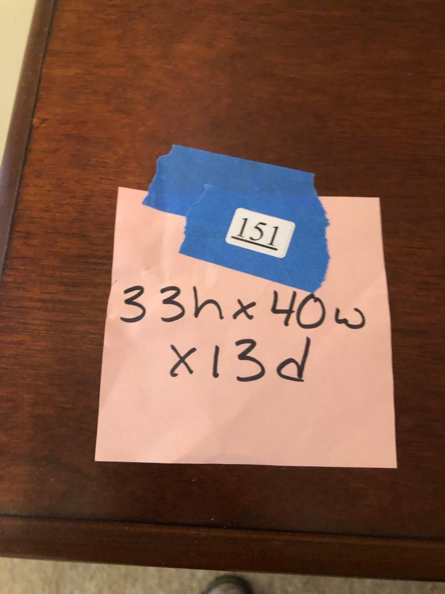 Please see all pictures as they are the best representation of the items. The pictures show condition, measurements if taken, and what is included in the lot. Due to the large amount that we photograph and the time frame, we are not Furniture pieces is located on the 2nd floor of the home. Measures 33H x 40W x 13D.