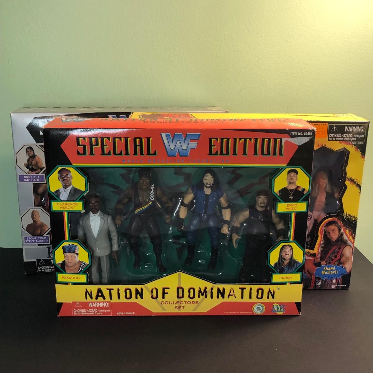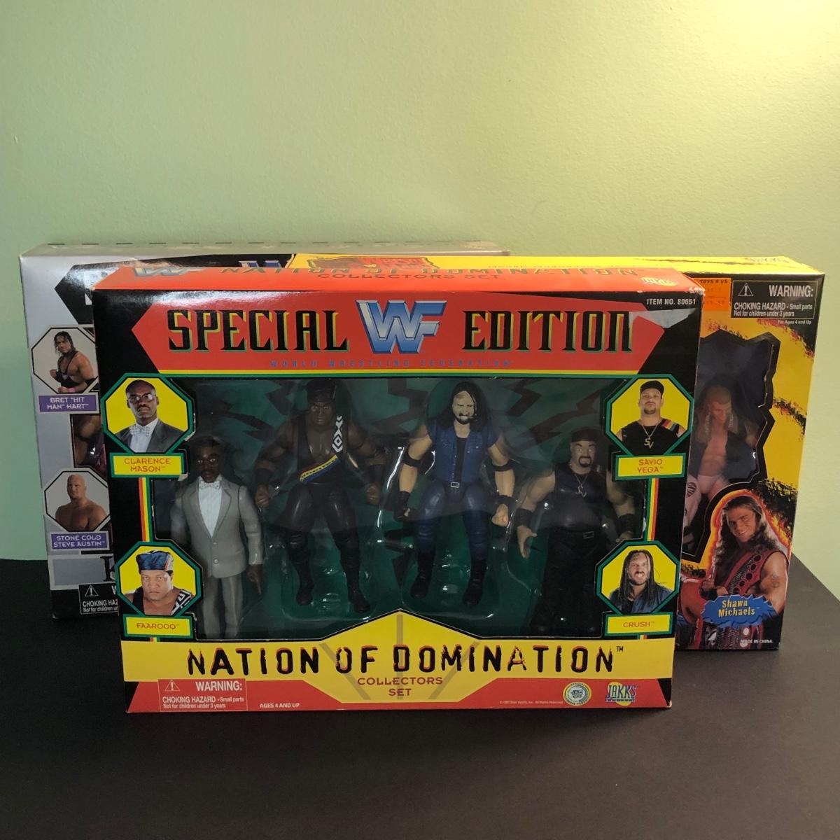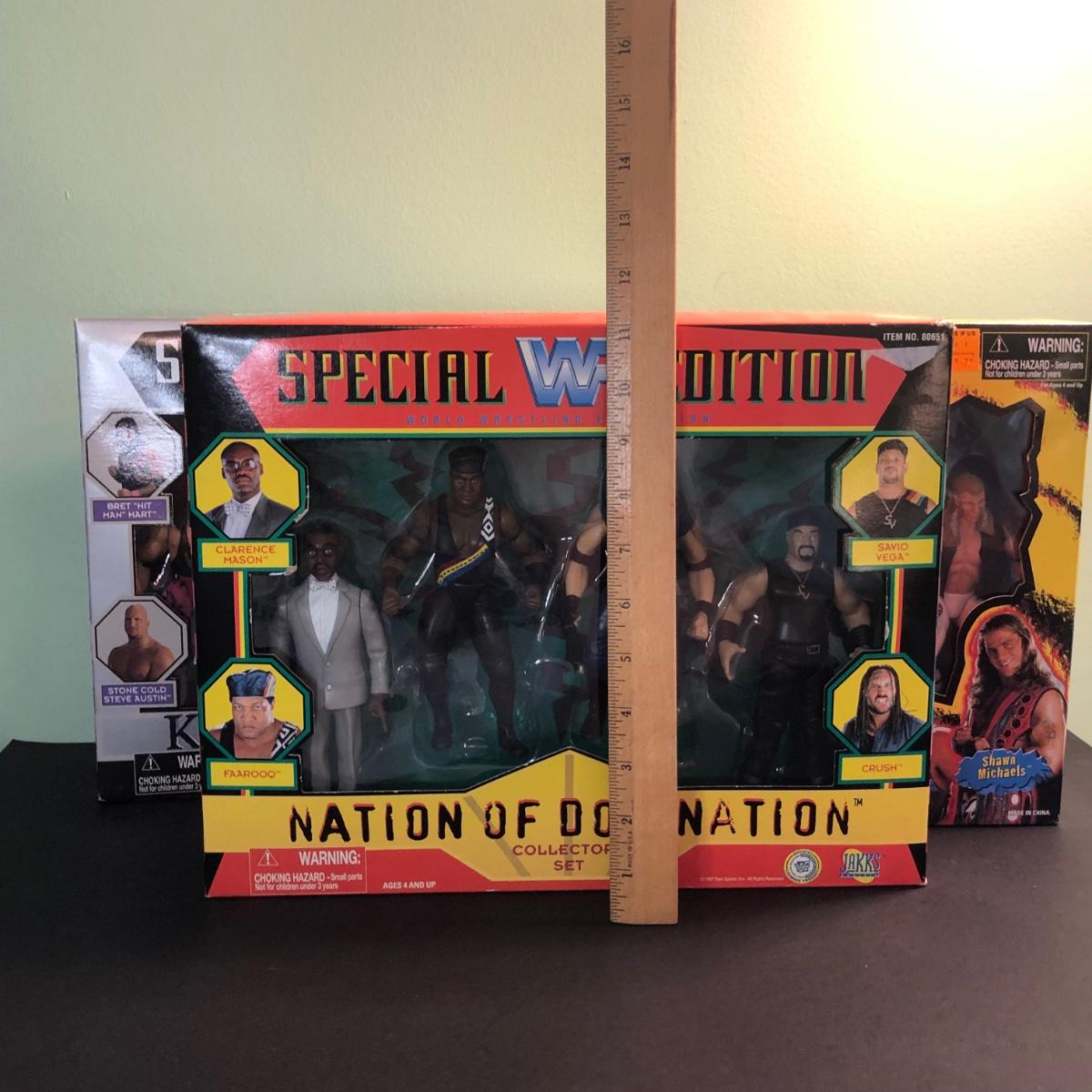 LOT 154MBC: NIP Jaaks Pacific Wrestling Sets - 1997 WWF Nation of Domination, 1998 WrestleMania XIV & 1997 Special Edition WWF King of the Iron Rungs Collector's Set