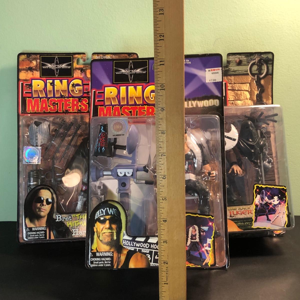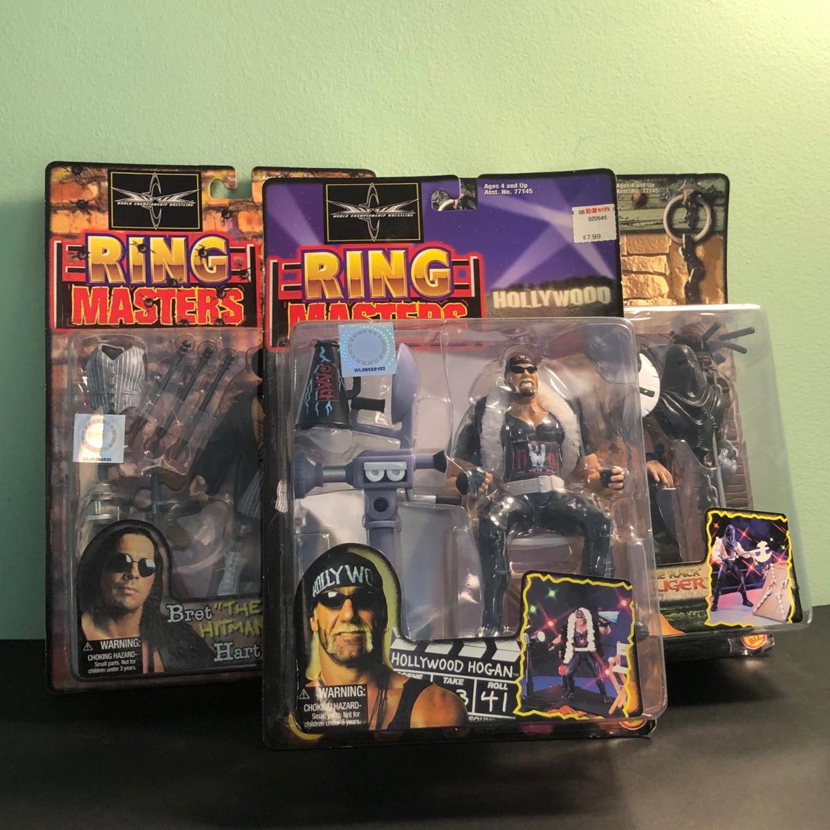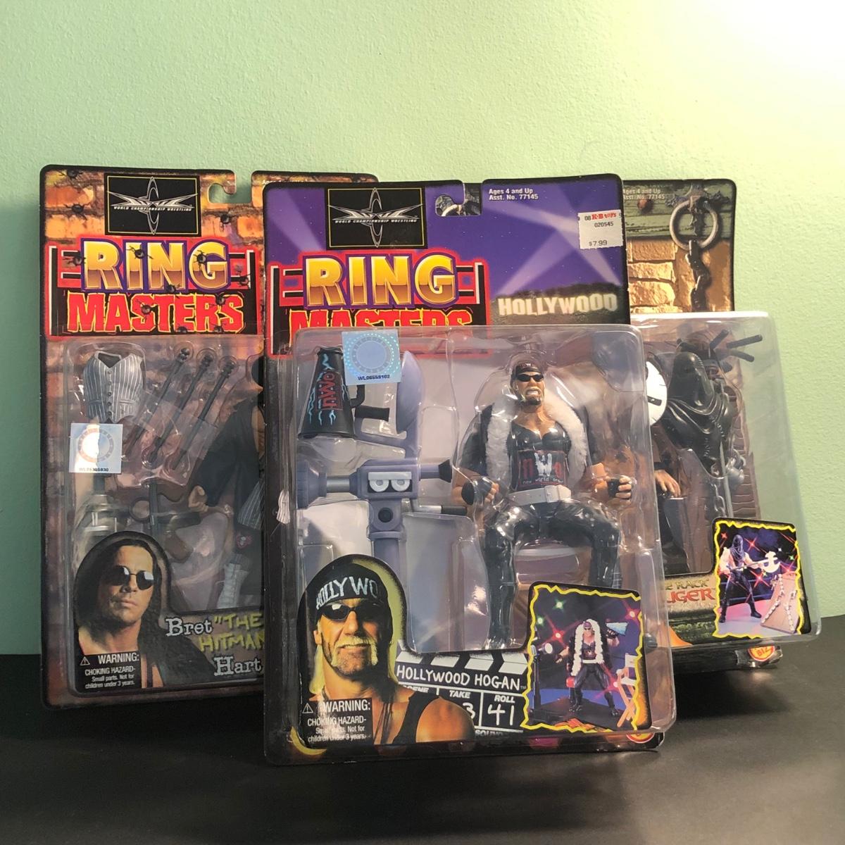 LOT 155MBC: NIP 1999 Toy Biz WCW New World Order Ring Masters - Hollywood Hogan, Bret "The Hitman" Hart & Lex Luger