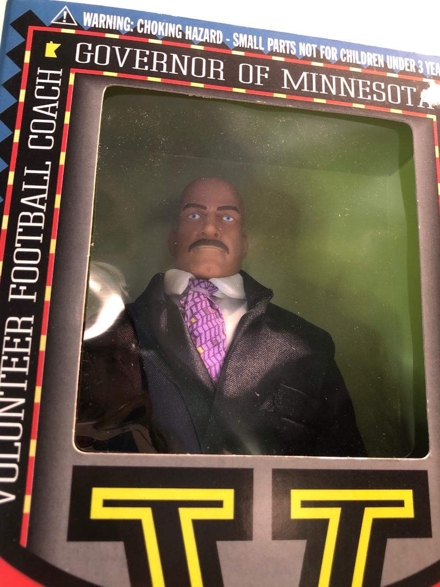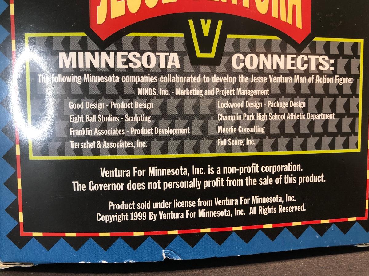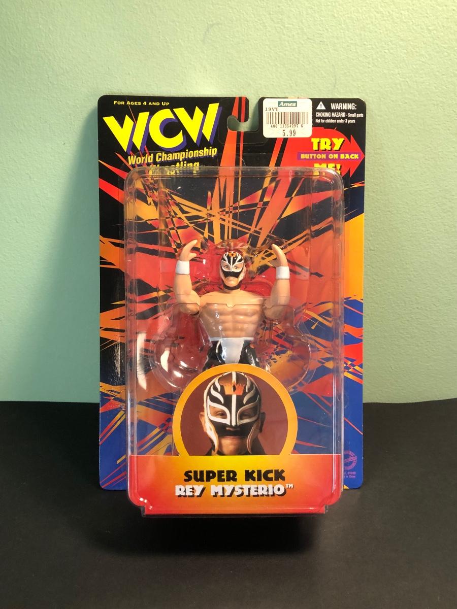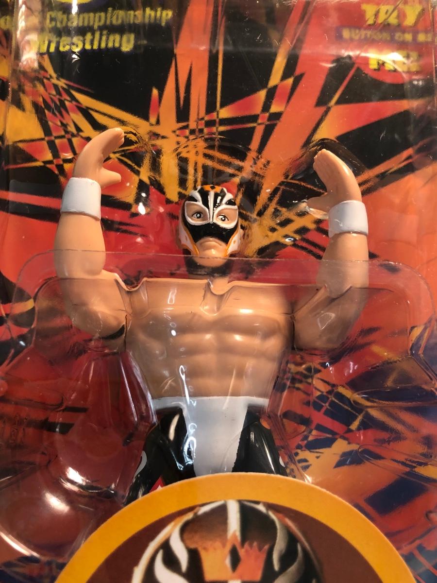 LOT 158MBC: 1998 Limited Edition Signature Series WCW Bill Goldberg Poseable Action Figure, 1999 Jessie Ventura for Governor of Minnesota Action Figure, WCW Super Kick Rey Mysterio & Jimmy Hart