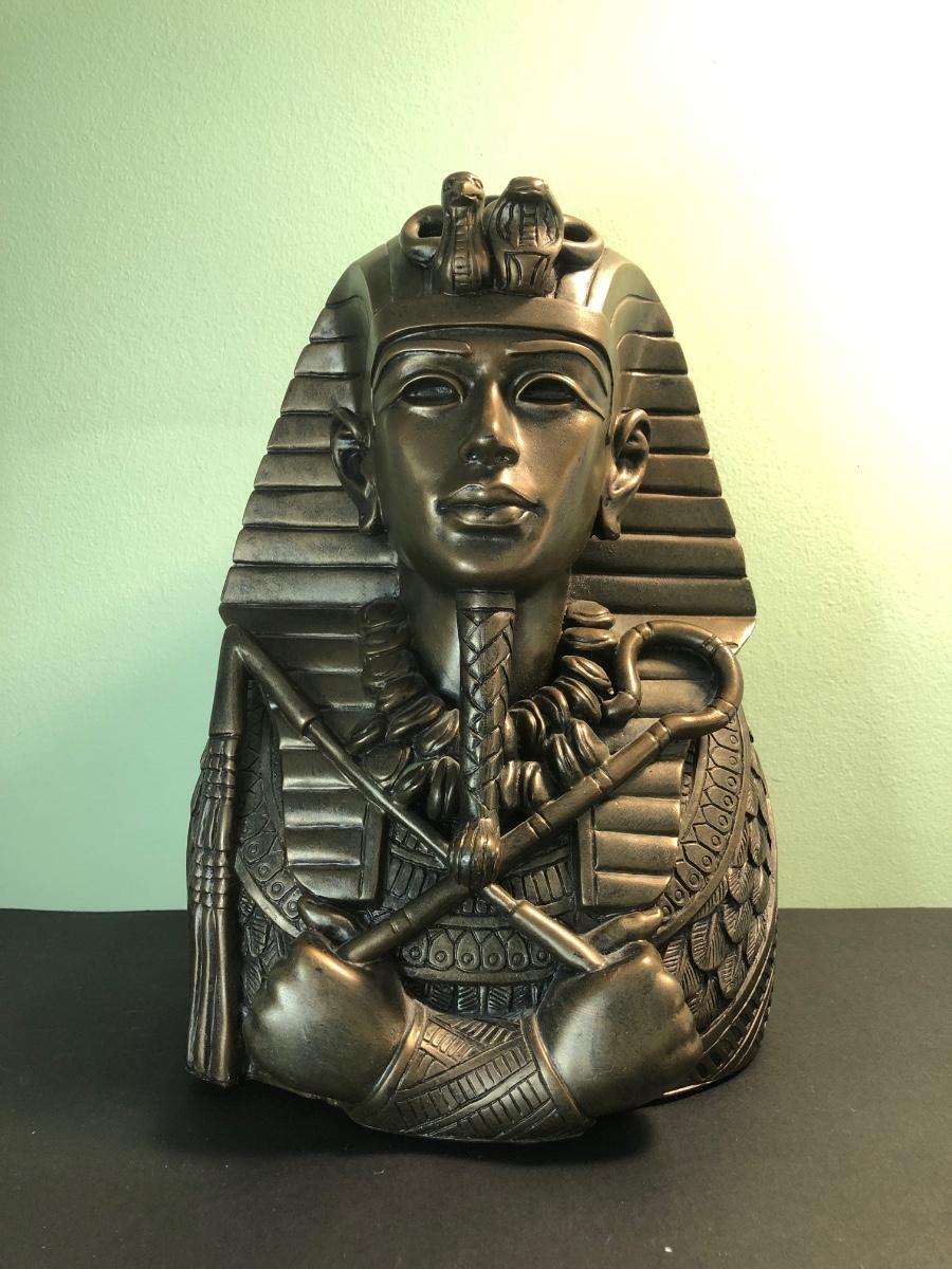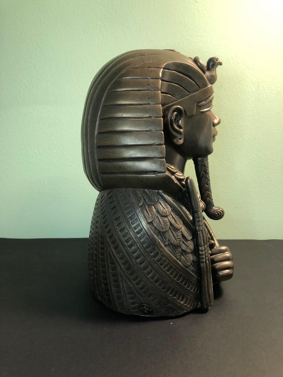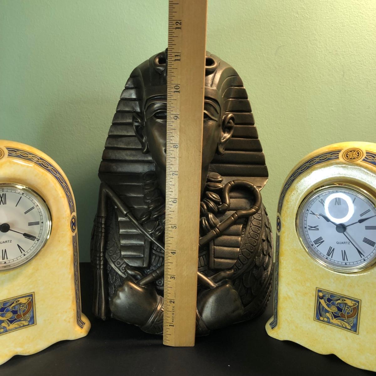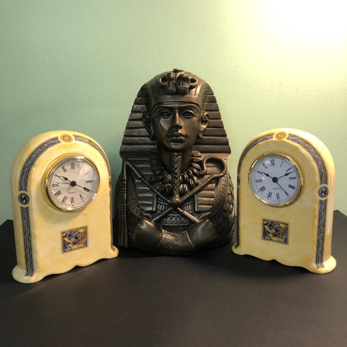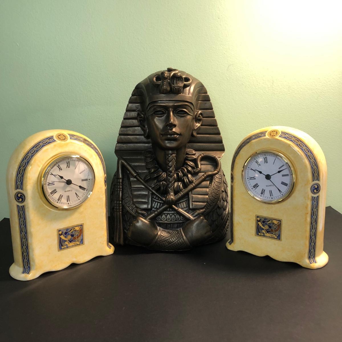 LOT 160FB: Egyptian Pharoah Bust & Two Ceramic Quartz Clocks w/ Egyptian Designs