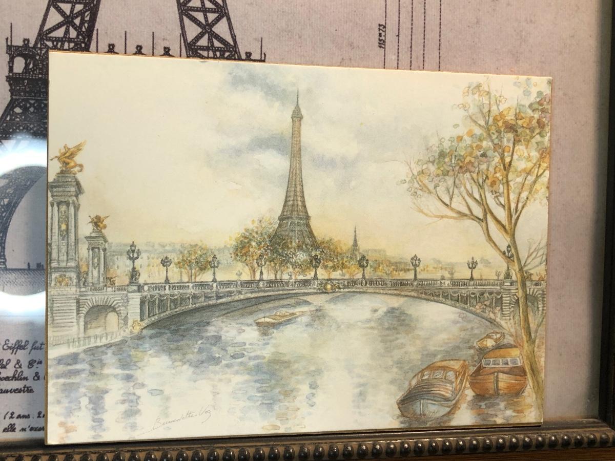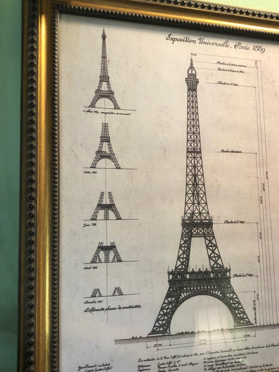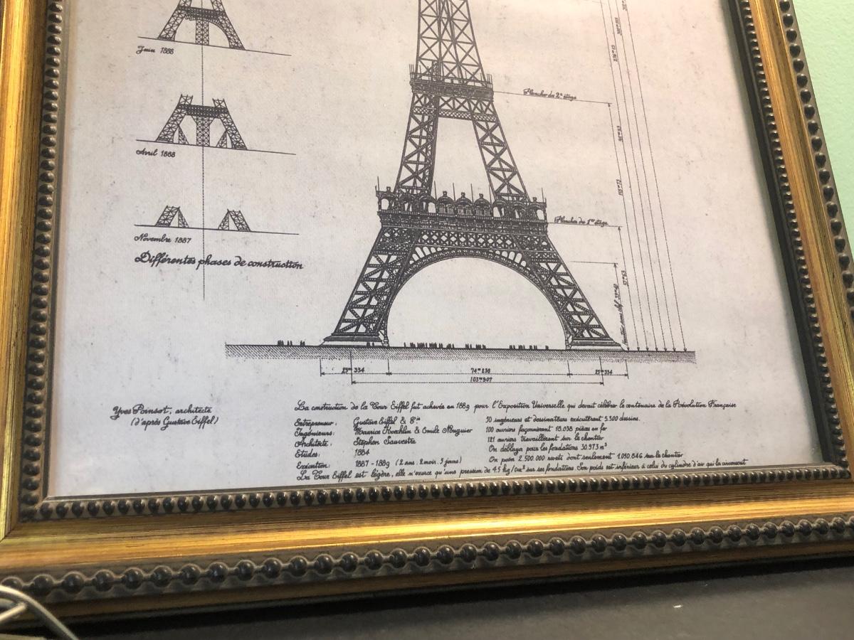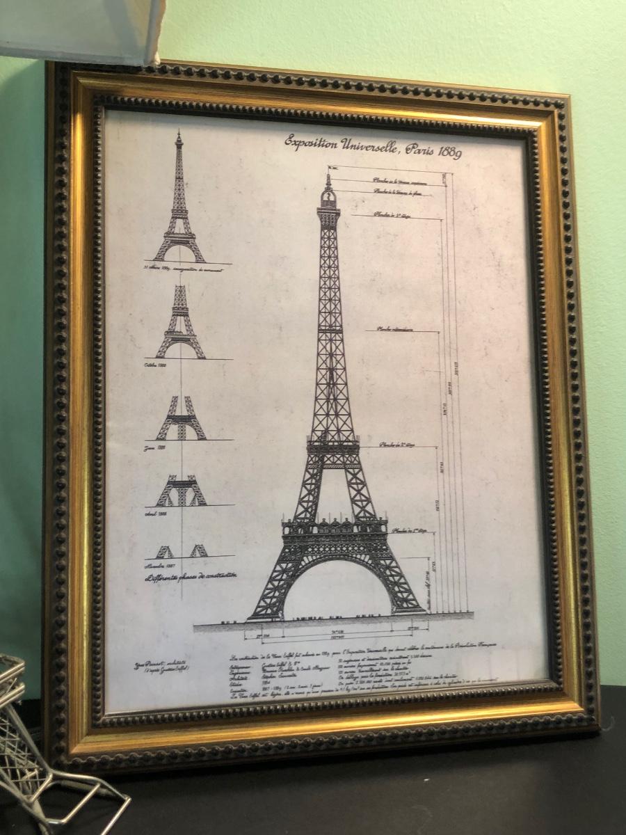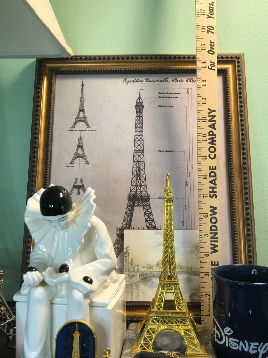 LOT 162FB: Paris / Eiffel Tower Collection - Disneyland Paris Mug, Eiffel Tower Schematic Print, Lamp, & More