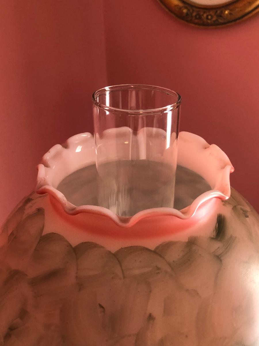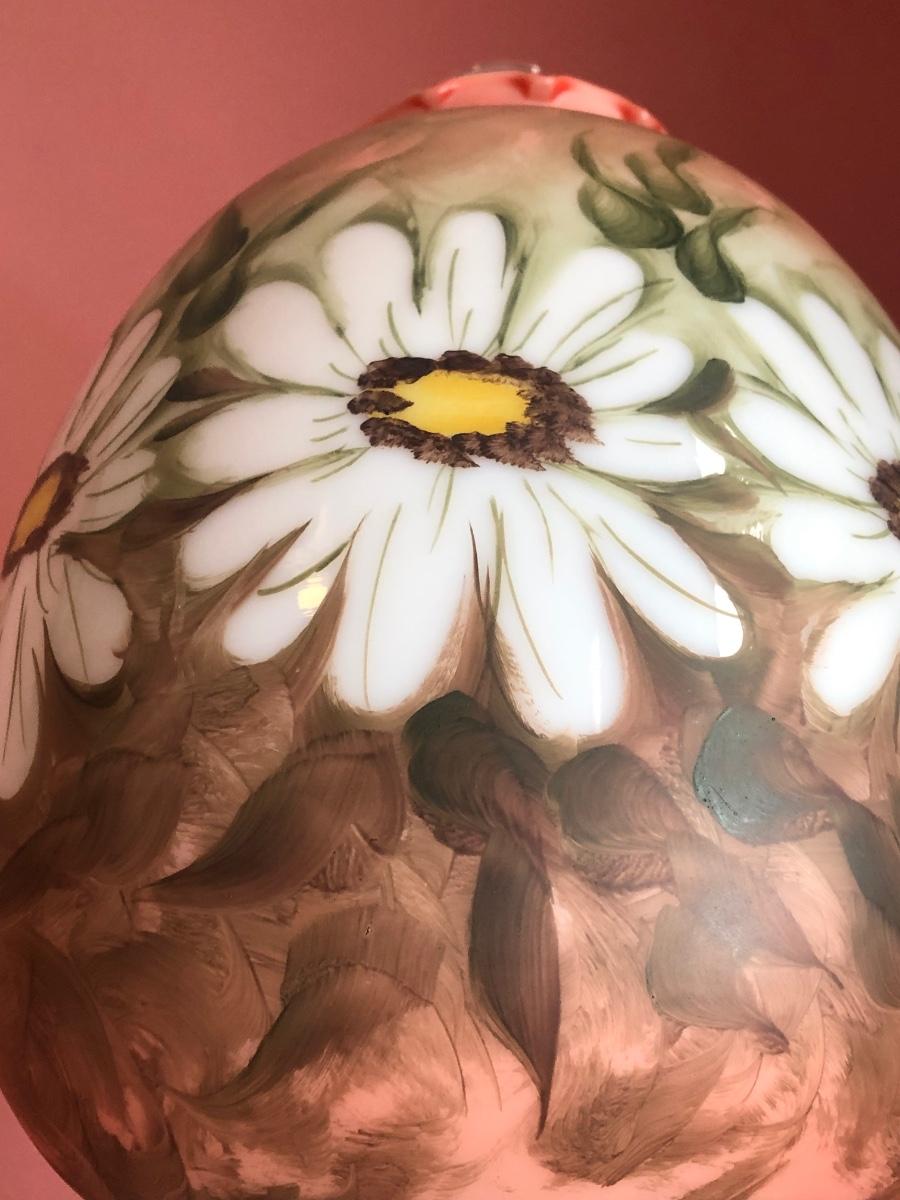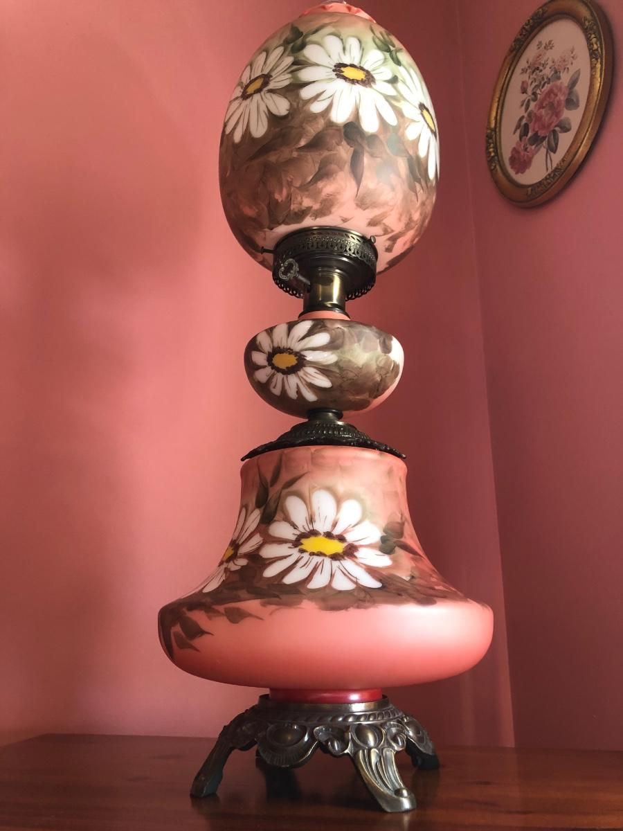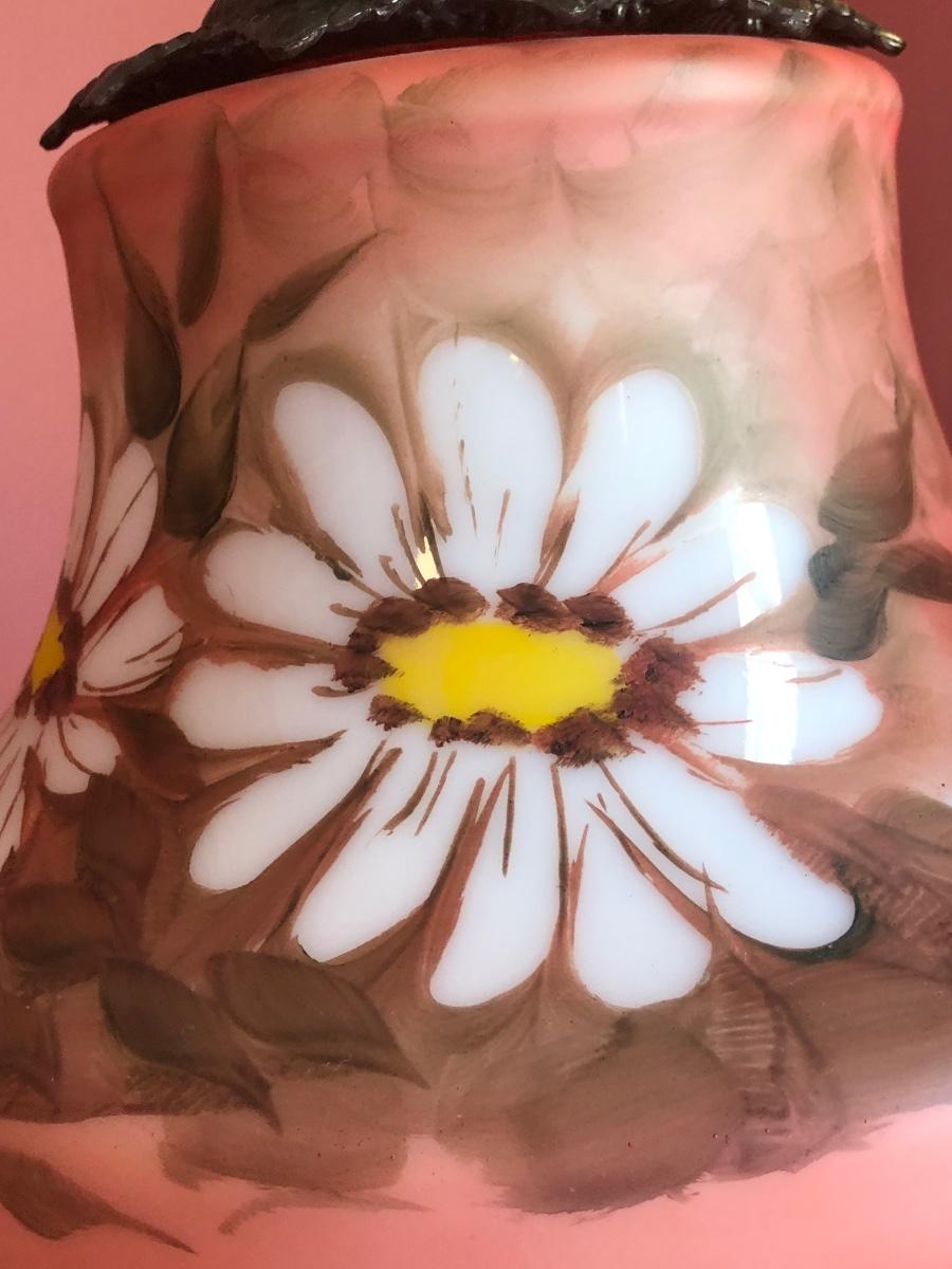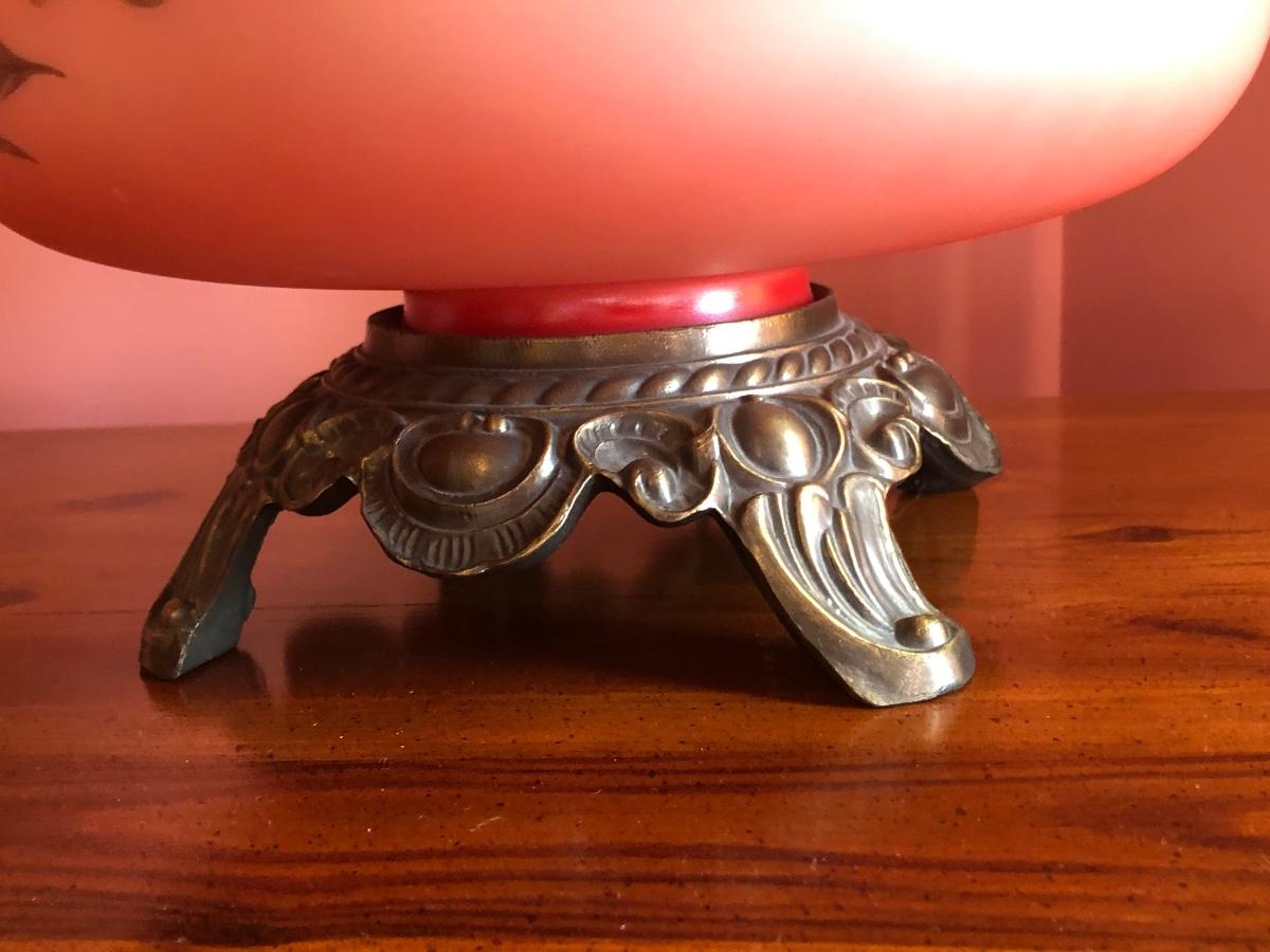 LOT 165PB: Beautiful Floral Hand-Painted 3-Tiered Pink Hurricane Lamp