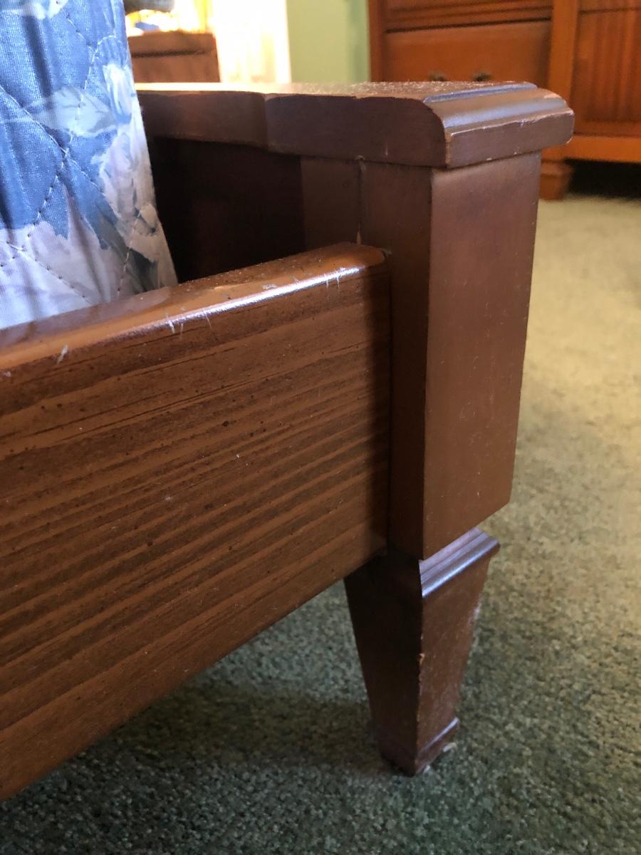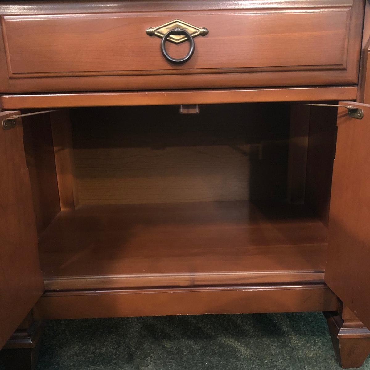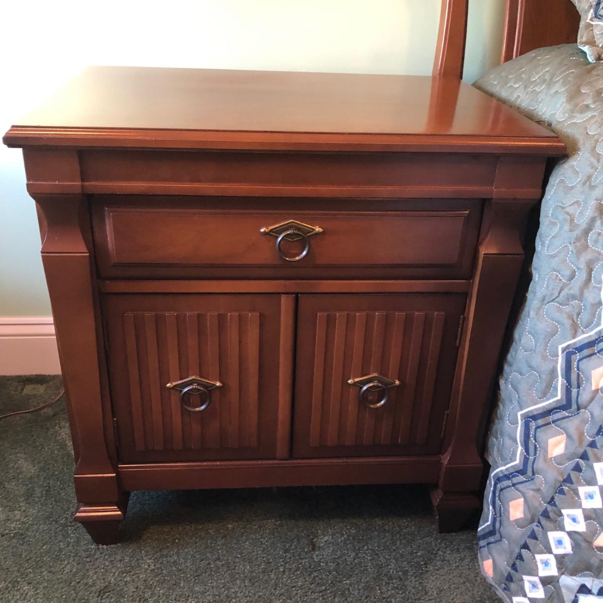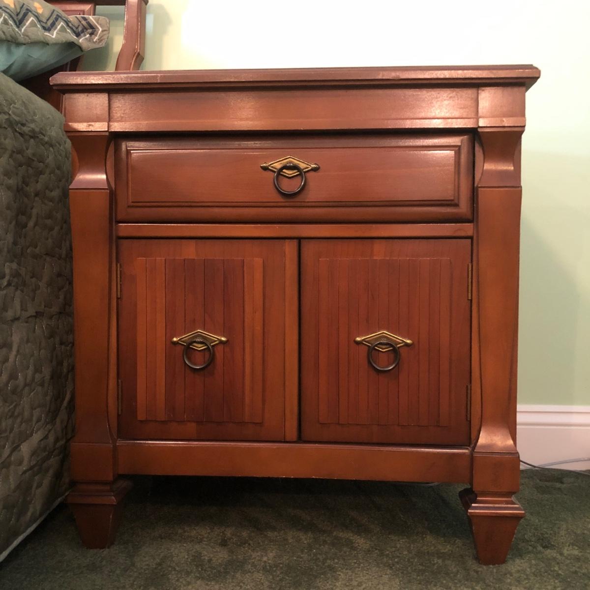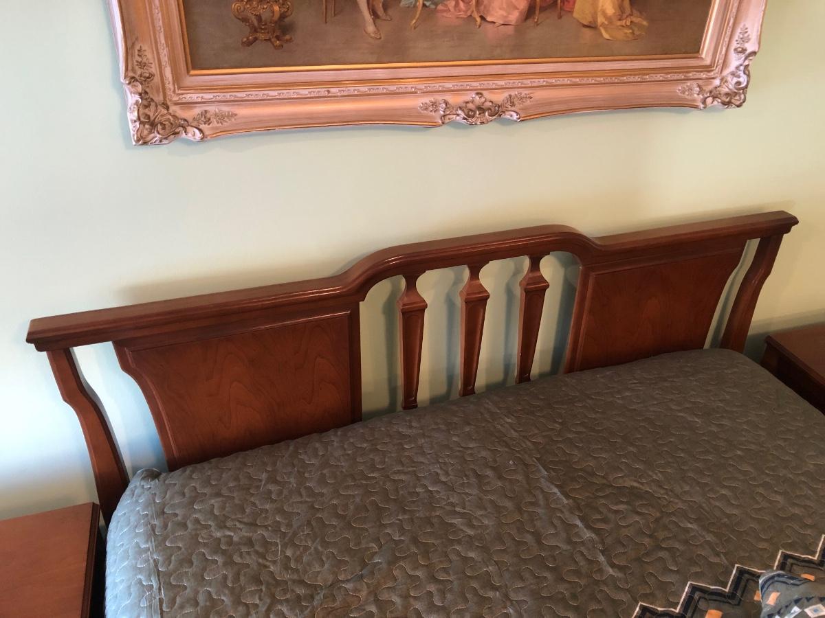 LOT 180GB: Full Sized Wooden Bed w/ 2 Matching End Tables