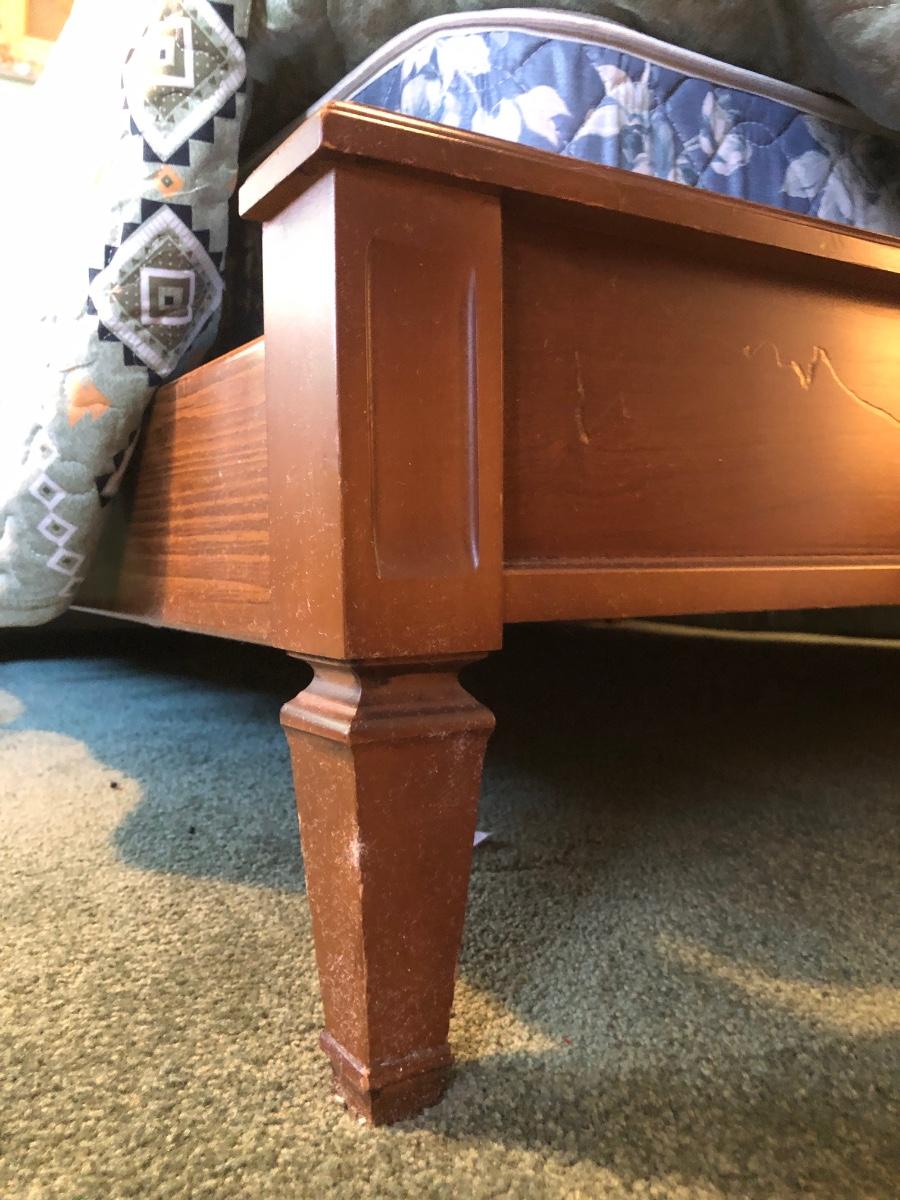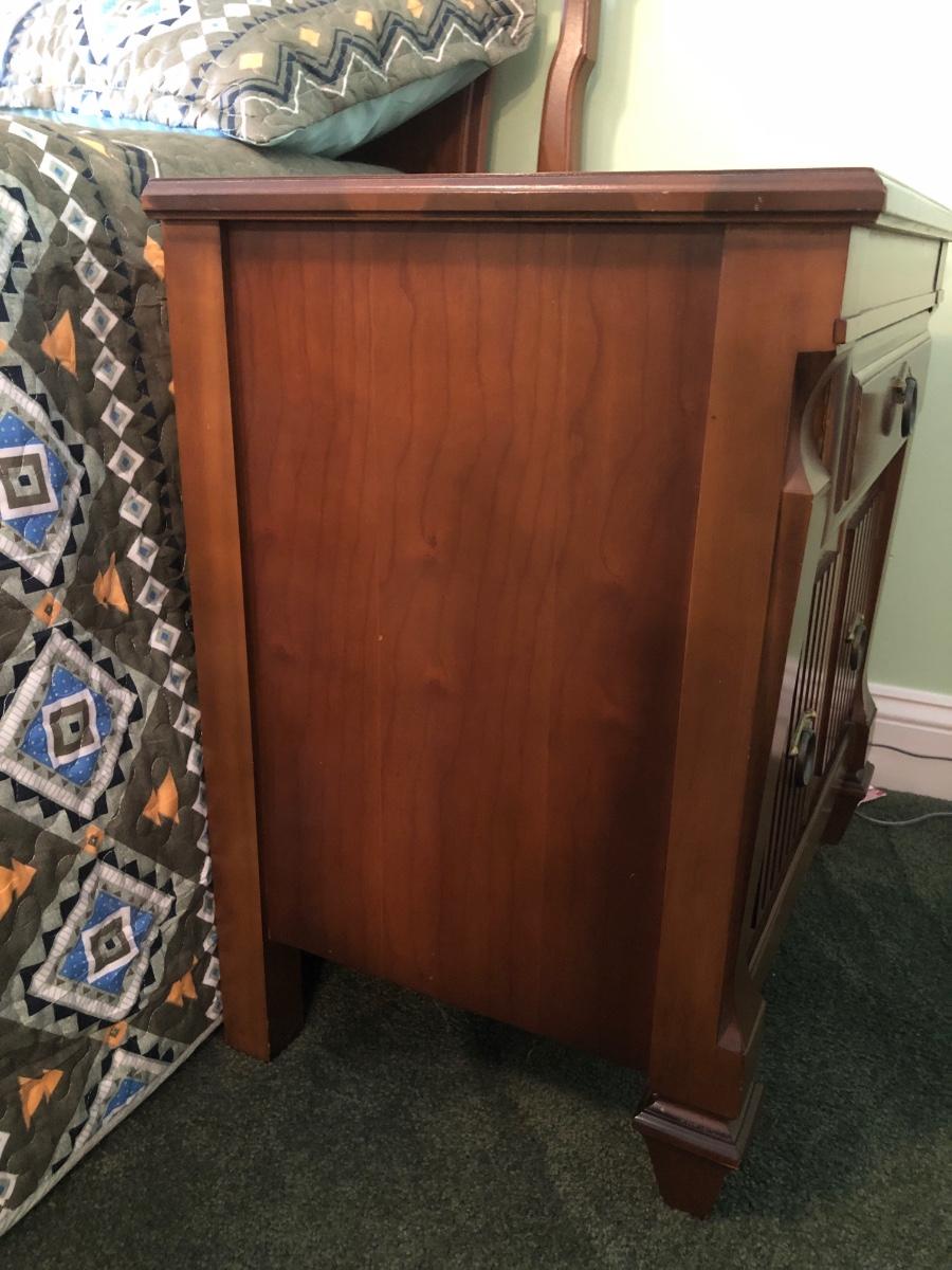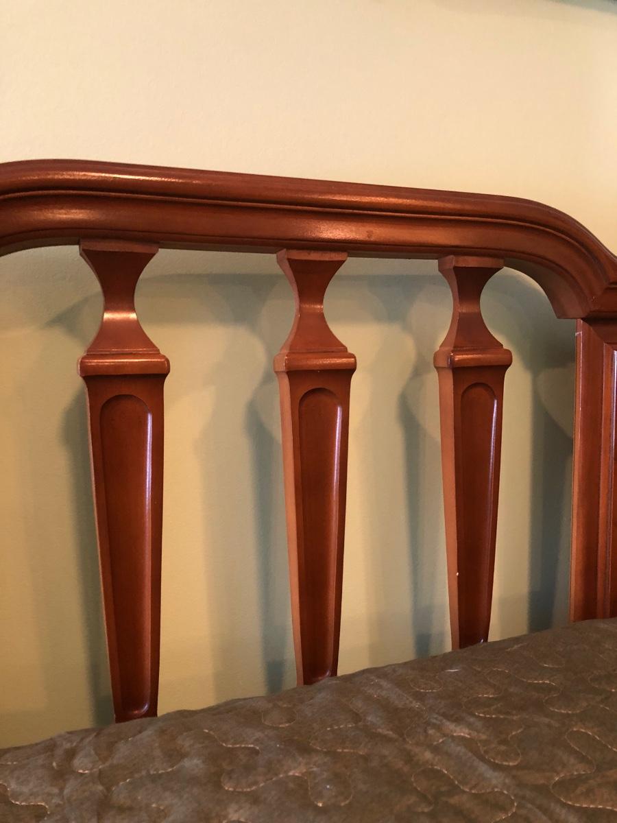 Bed measures 38H x 79D x 59W and end tables measure 24H x 24W x 16D.
