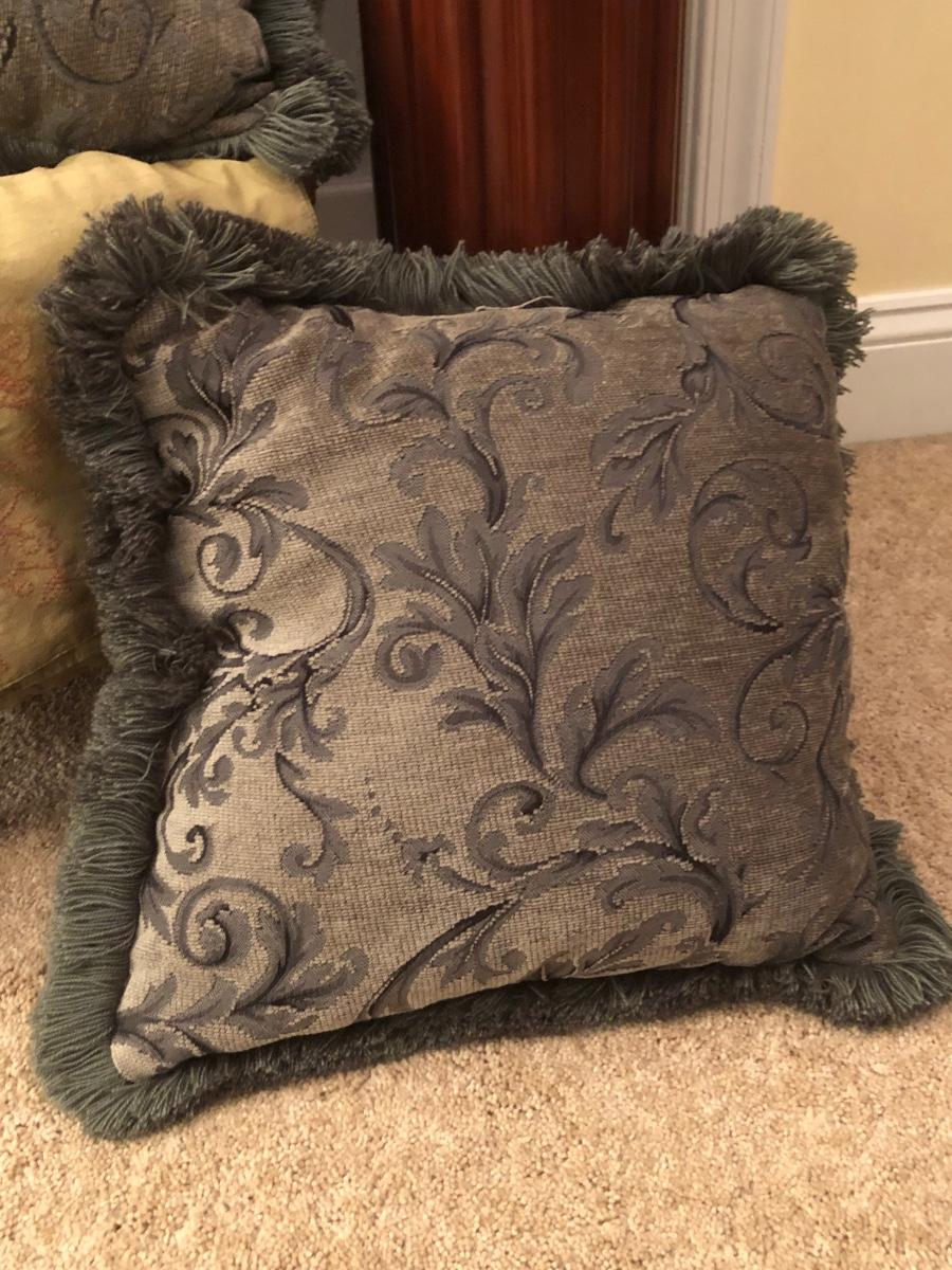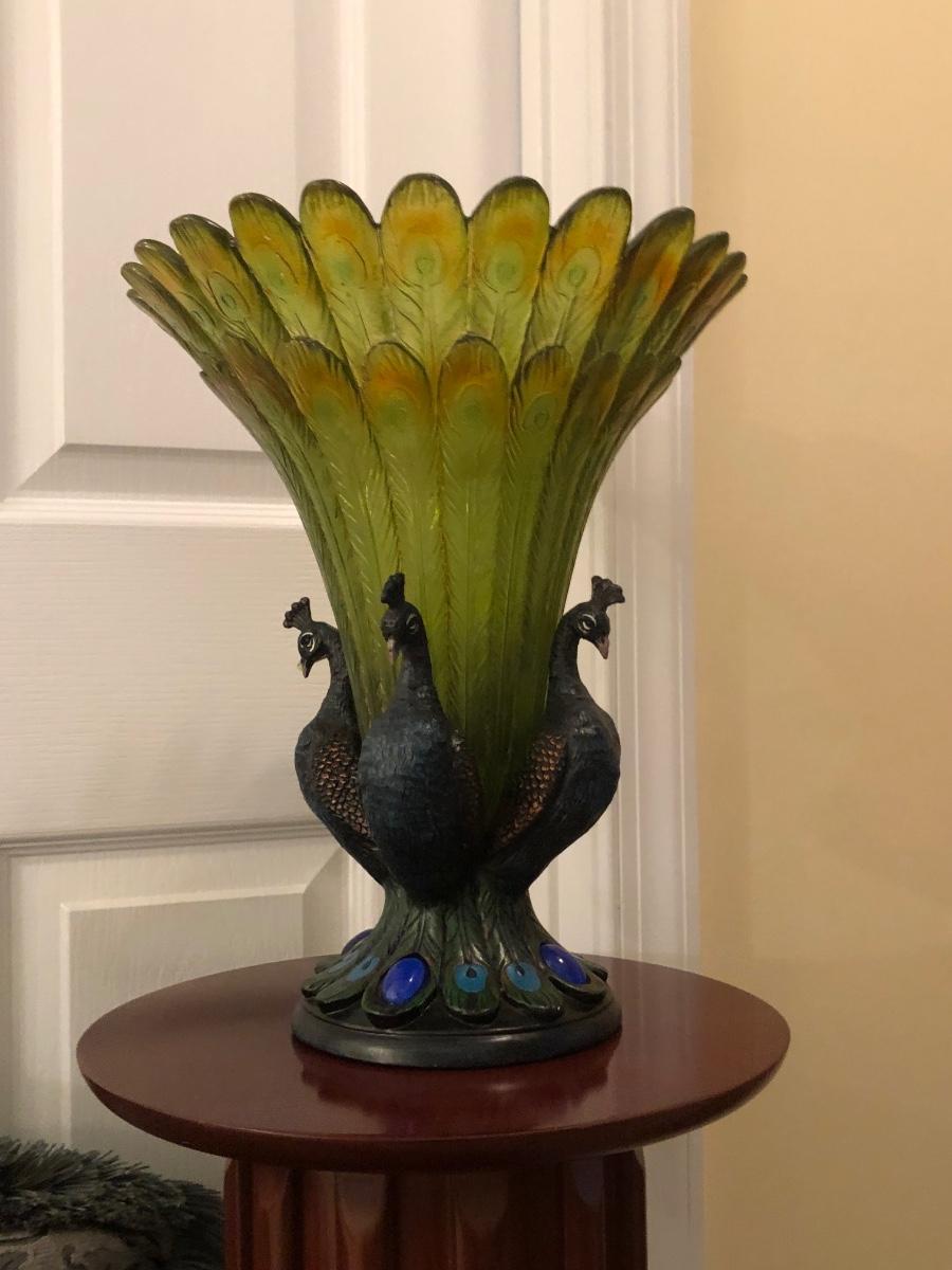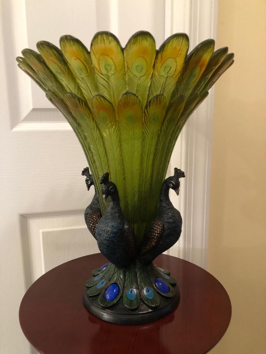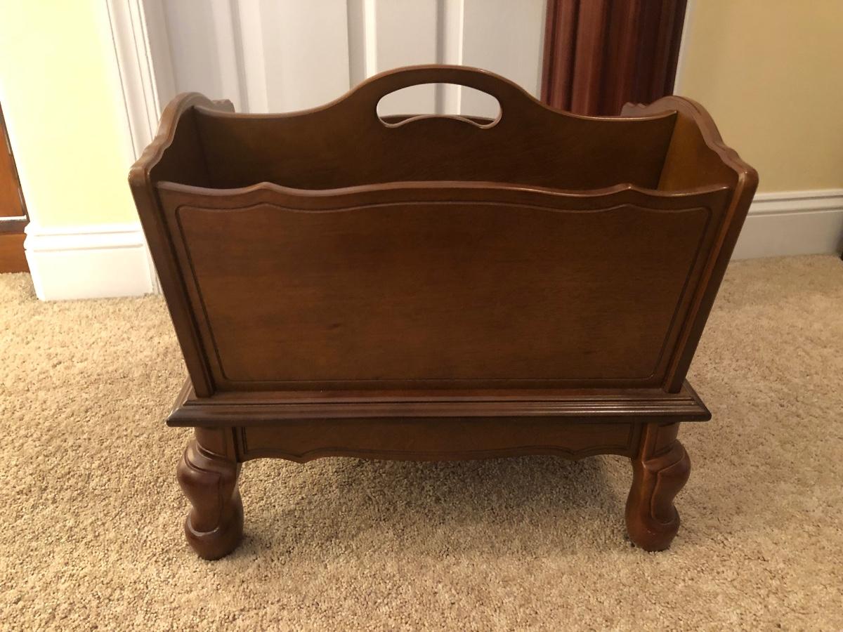 LOT 184GB: Home Decor Peacock Vase, Cherry Wood Pedestal & Magazine Rack, Home Decor Pillows & Table Runners