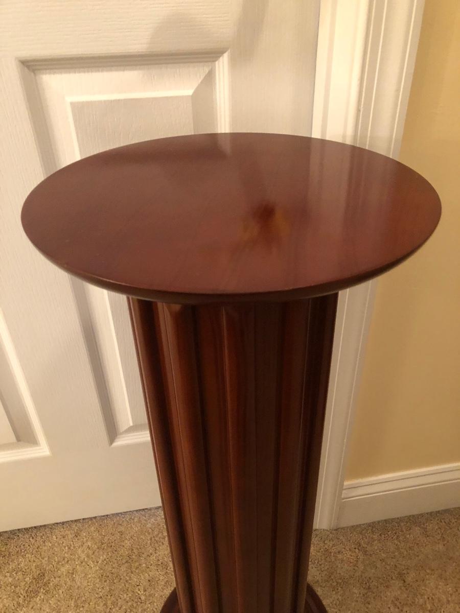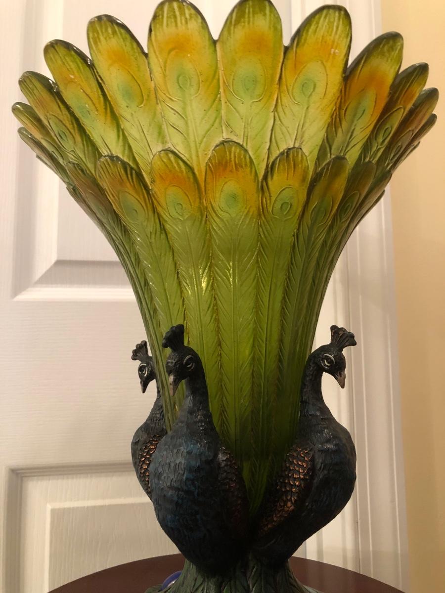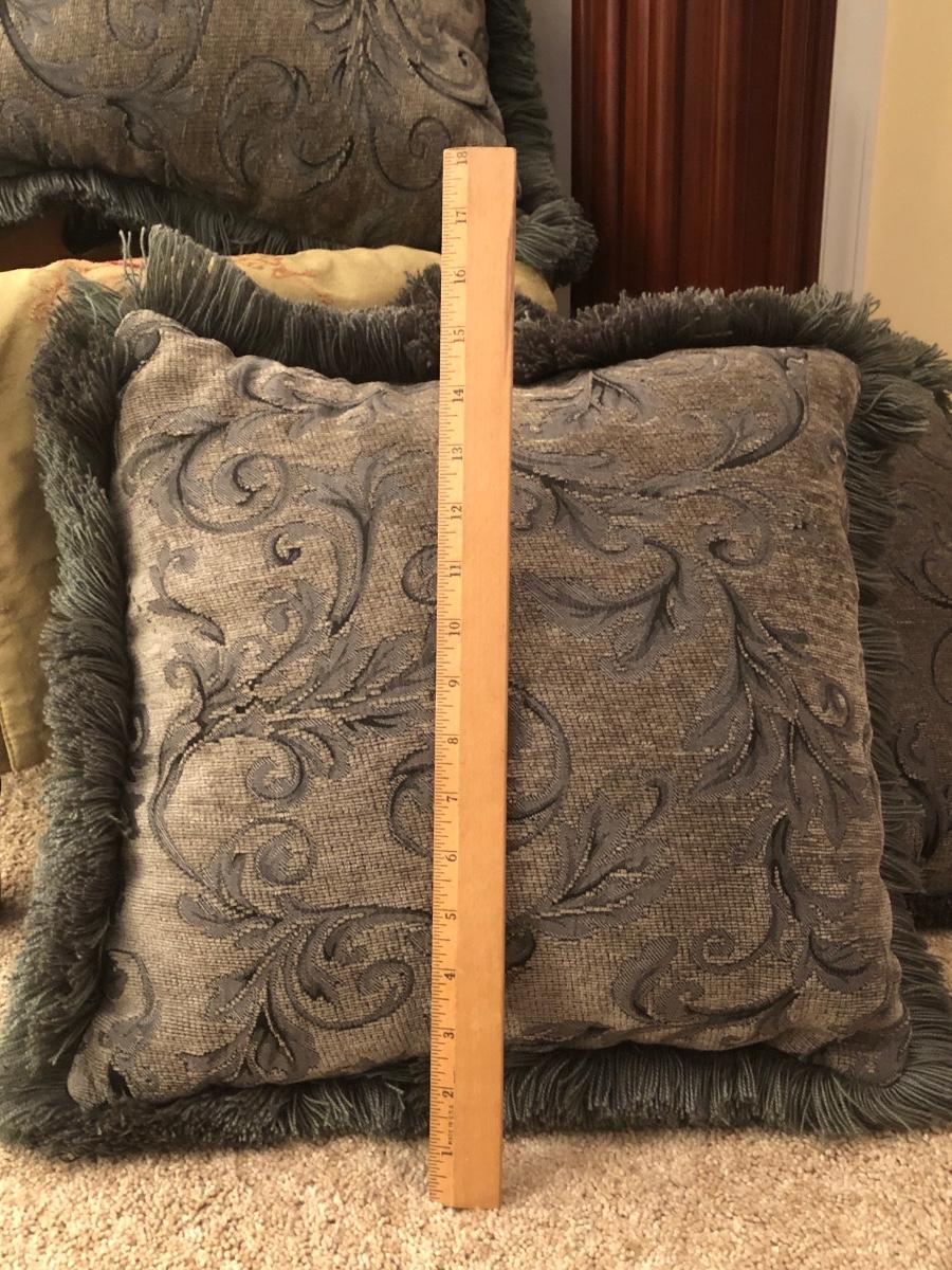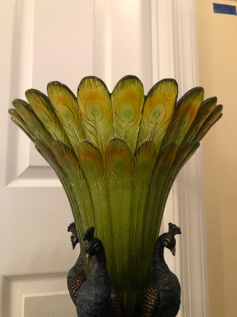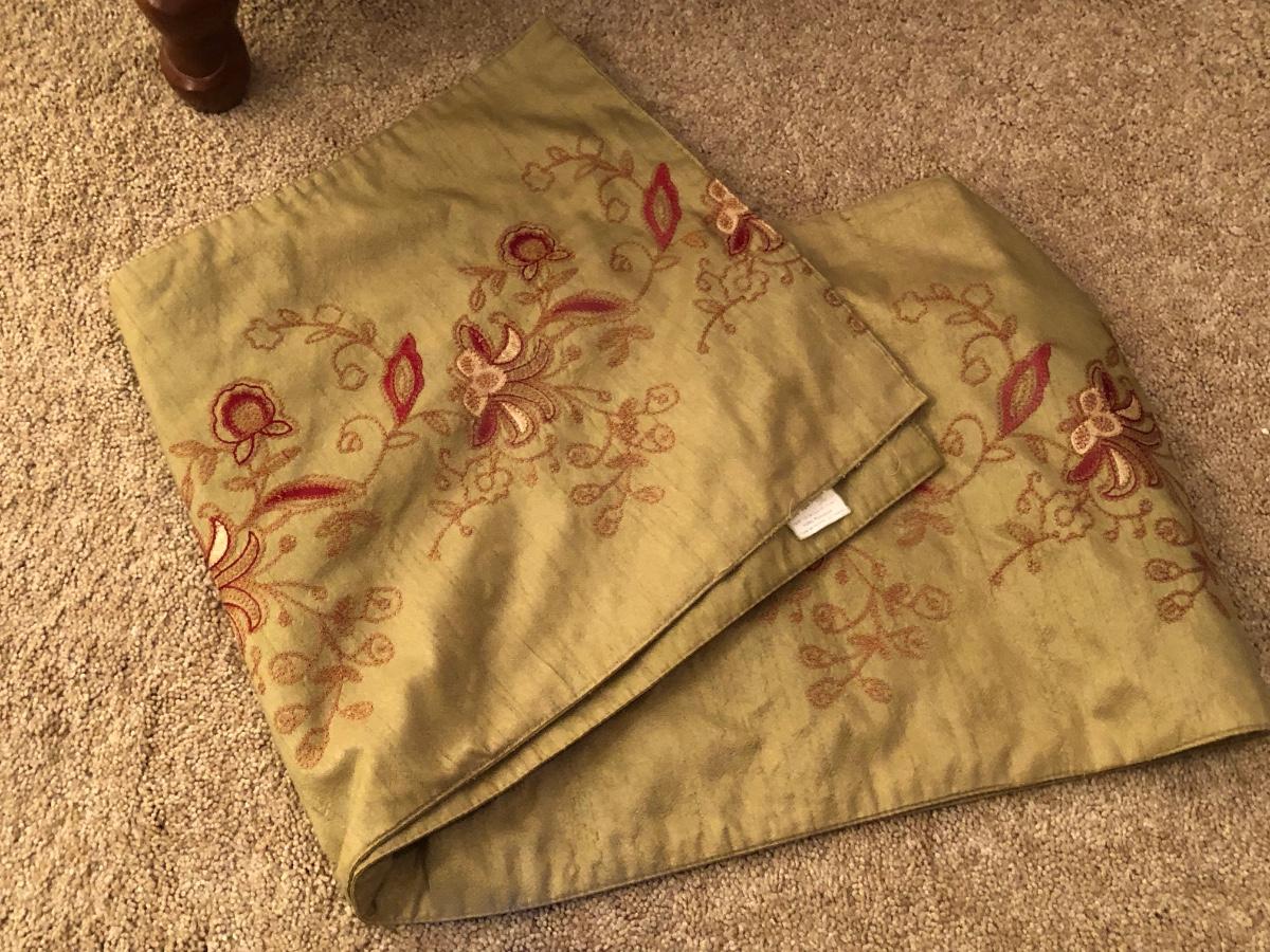 LOT 184GB: Home Decor Peacock Vase, Cherry Wood Pedestal & Magazine Rack, Home Decor Pillows & Table Runners