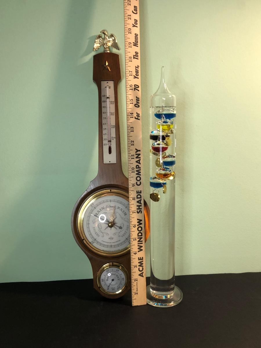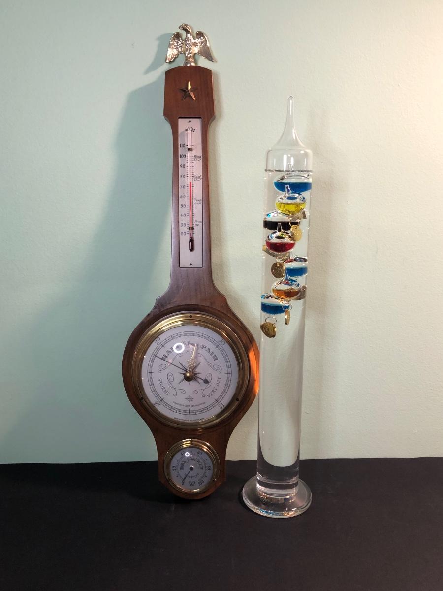 LOT 186MBC: Glass Galileo Thermometer & Wall Mounted Barometer w/ Eagle