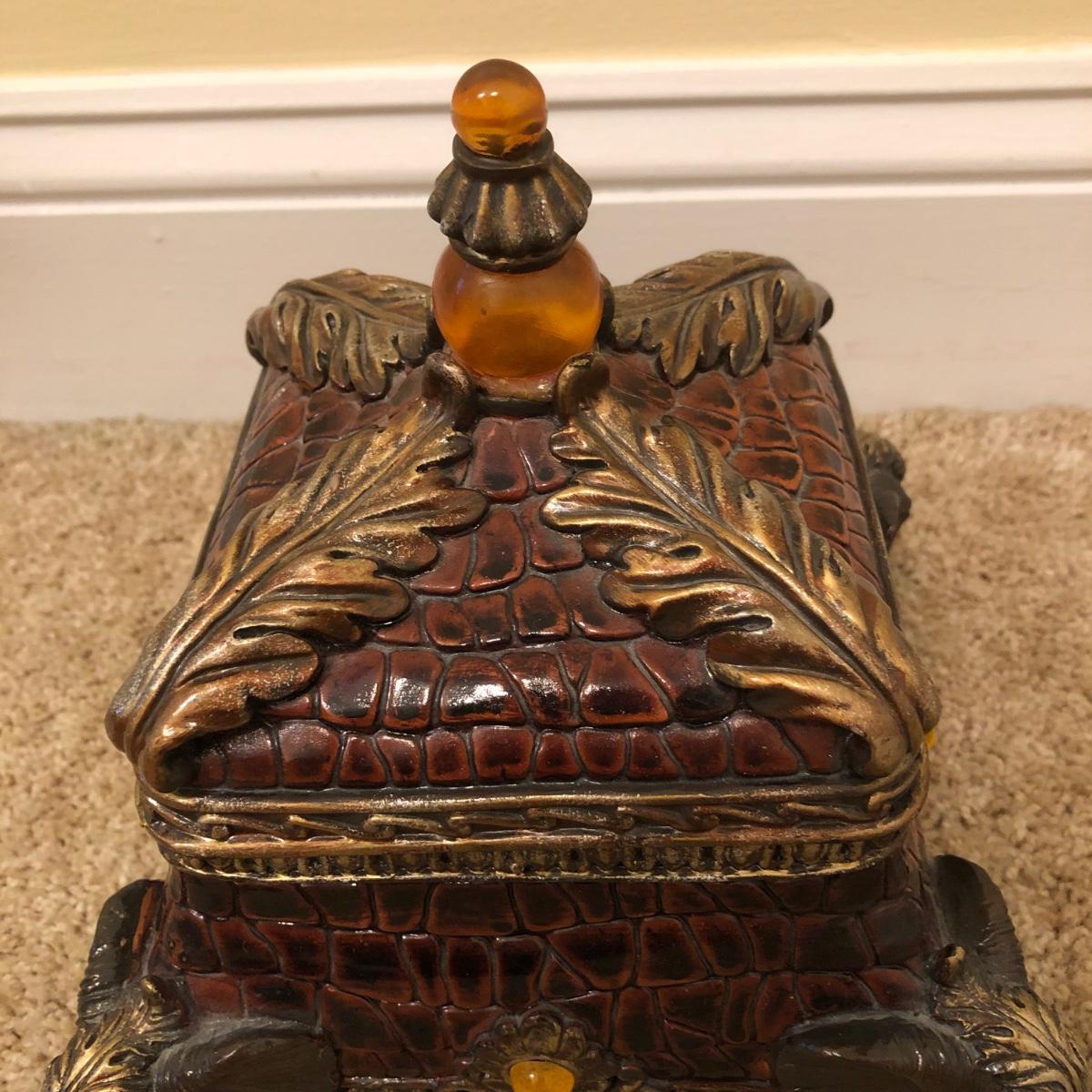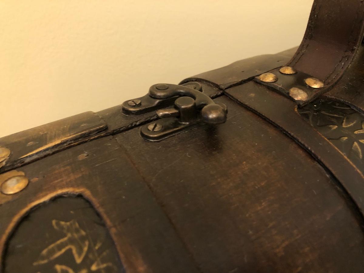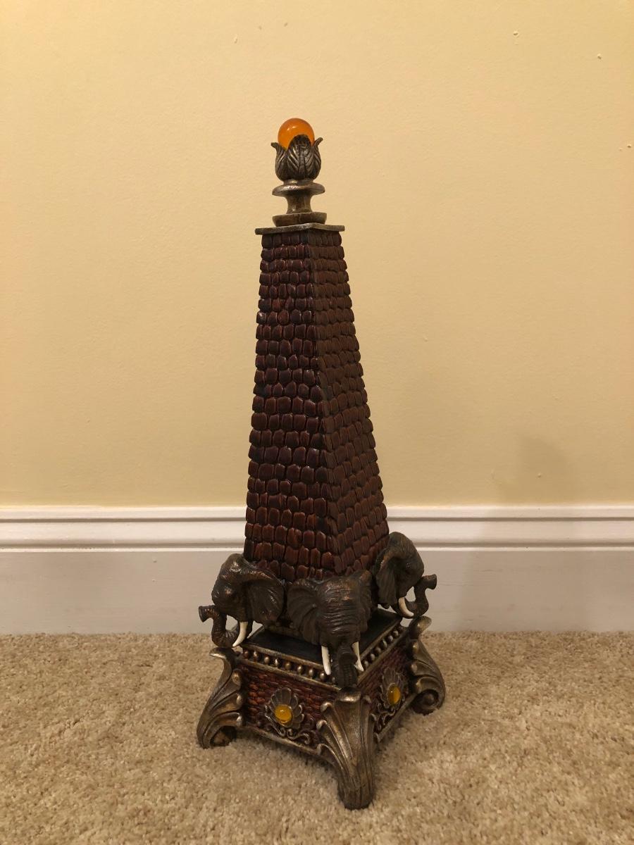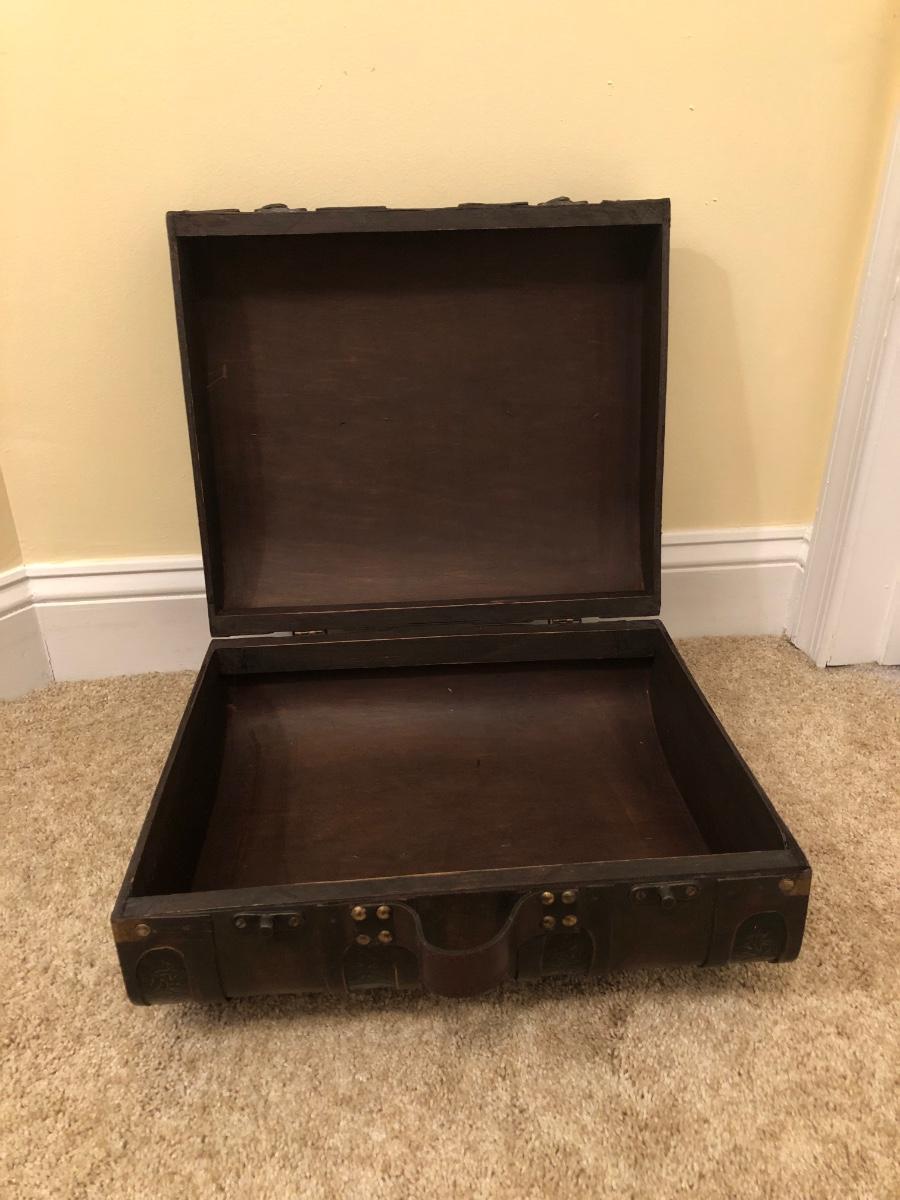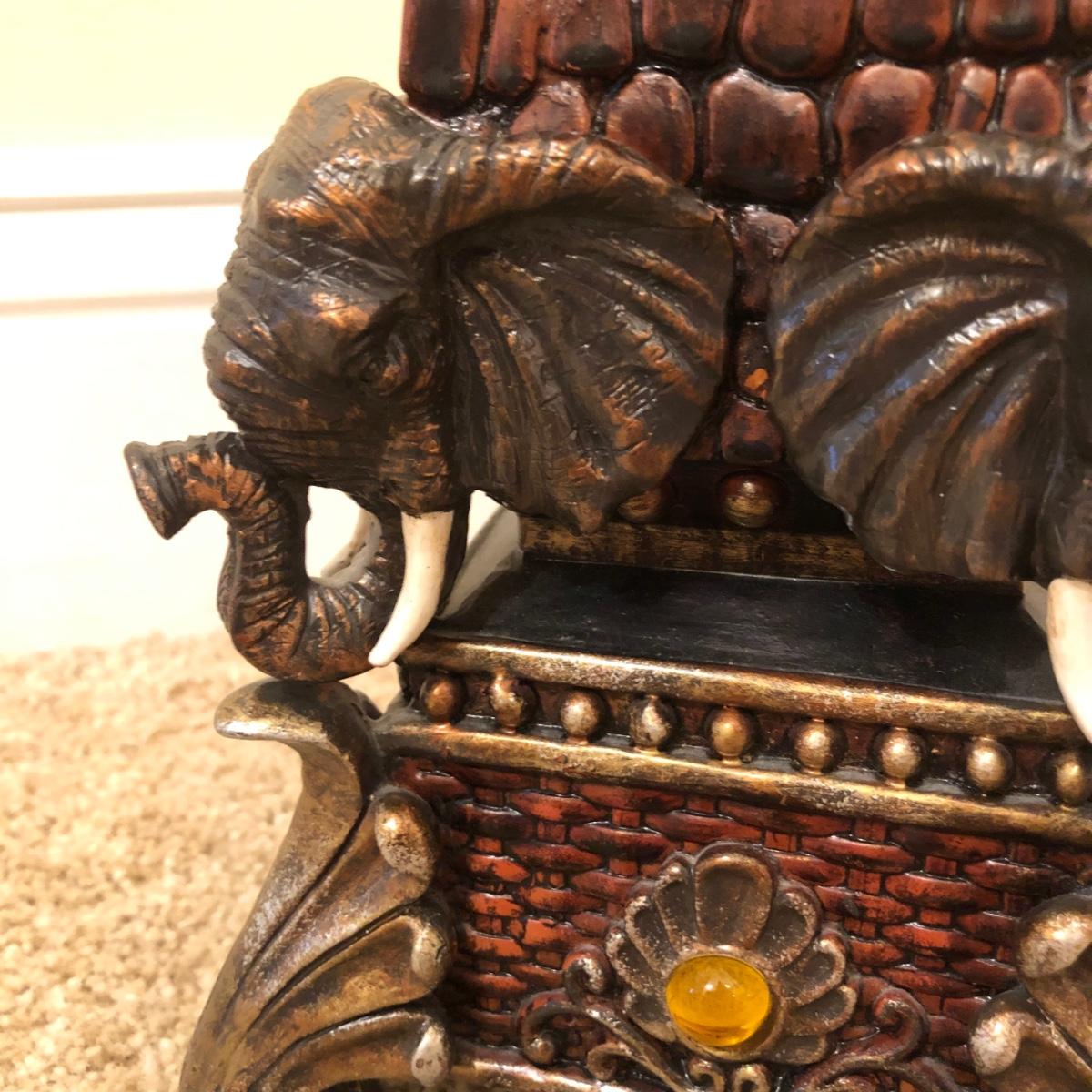 LOT 187MBC: Ornate Elephant Box & Decor, Lamp & Decorative Wooden Suitcase