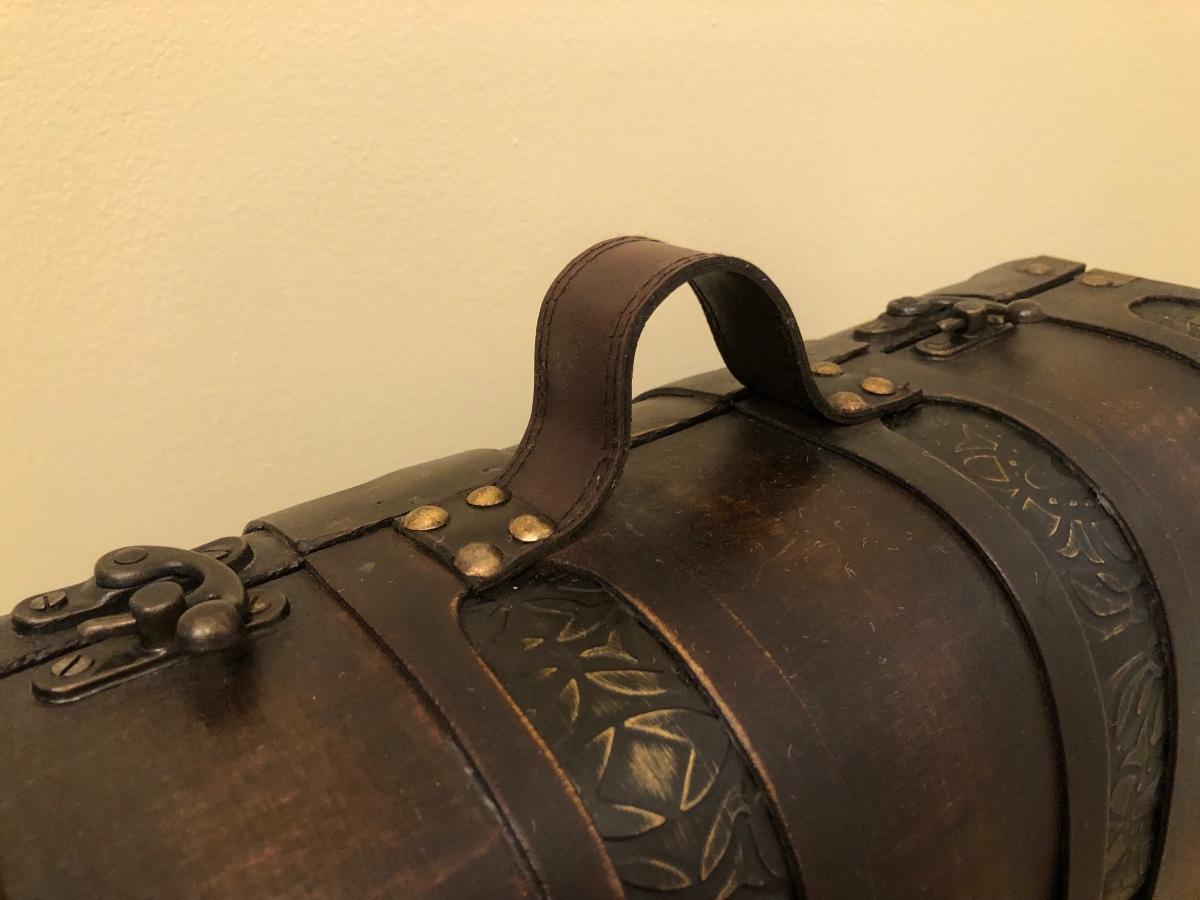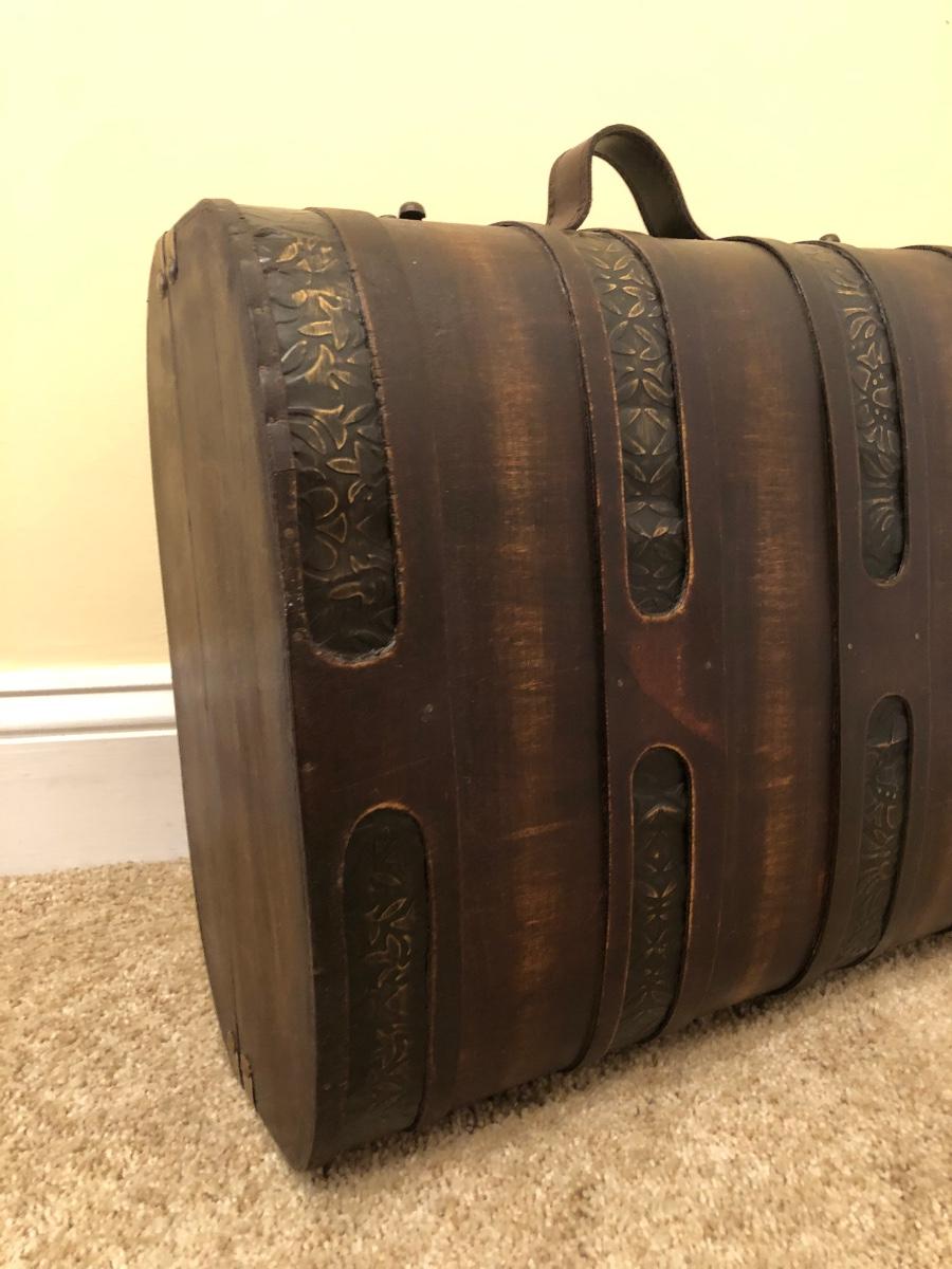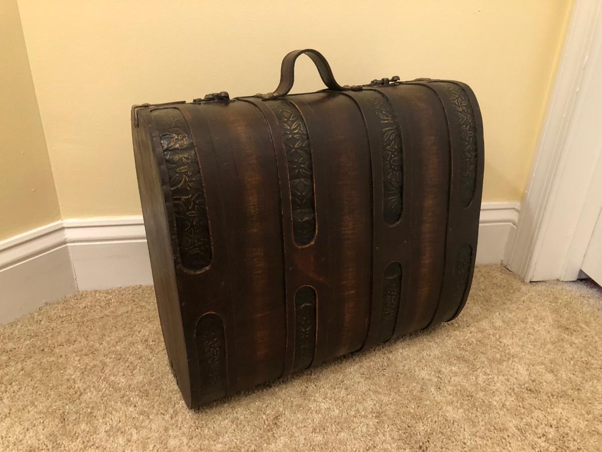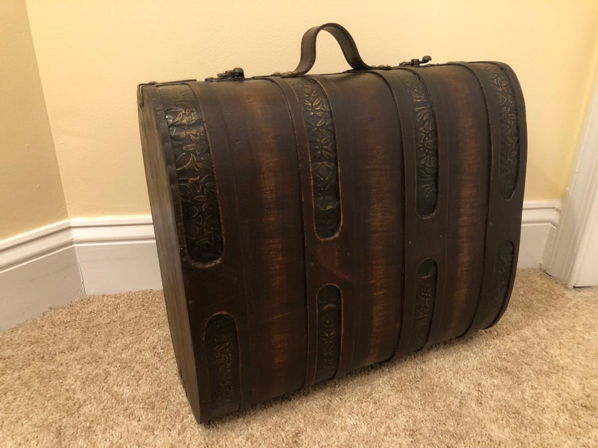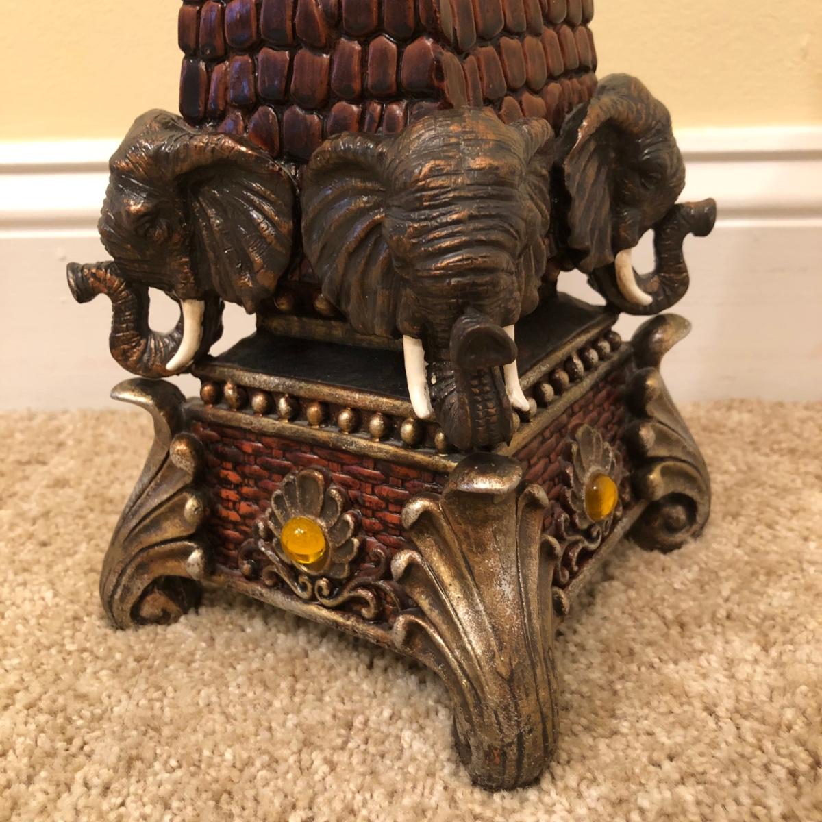 LOT 187MBC: Ornate Elephant Box & Decor, Lamp & Decorative Wooden Suitcase