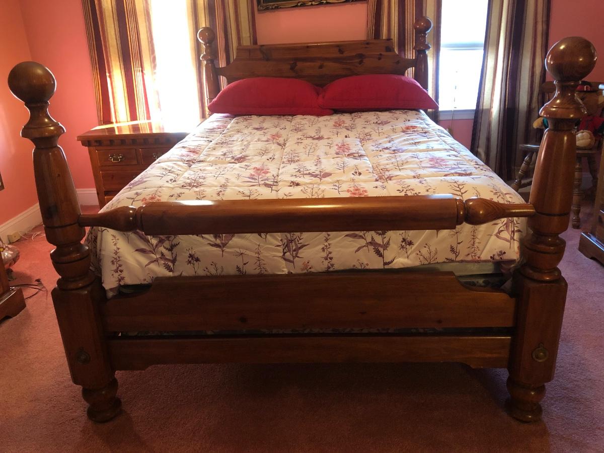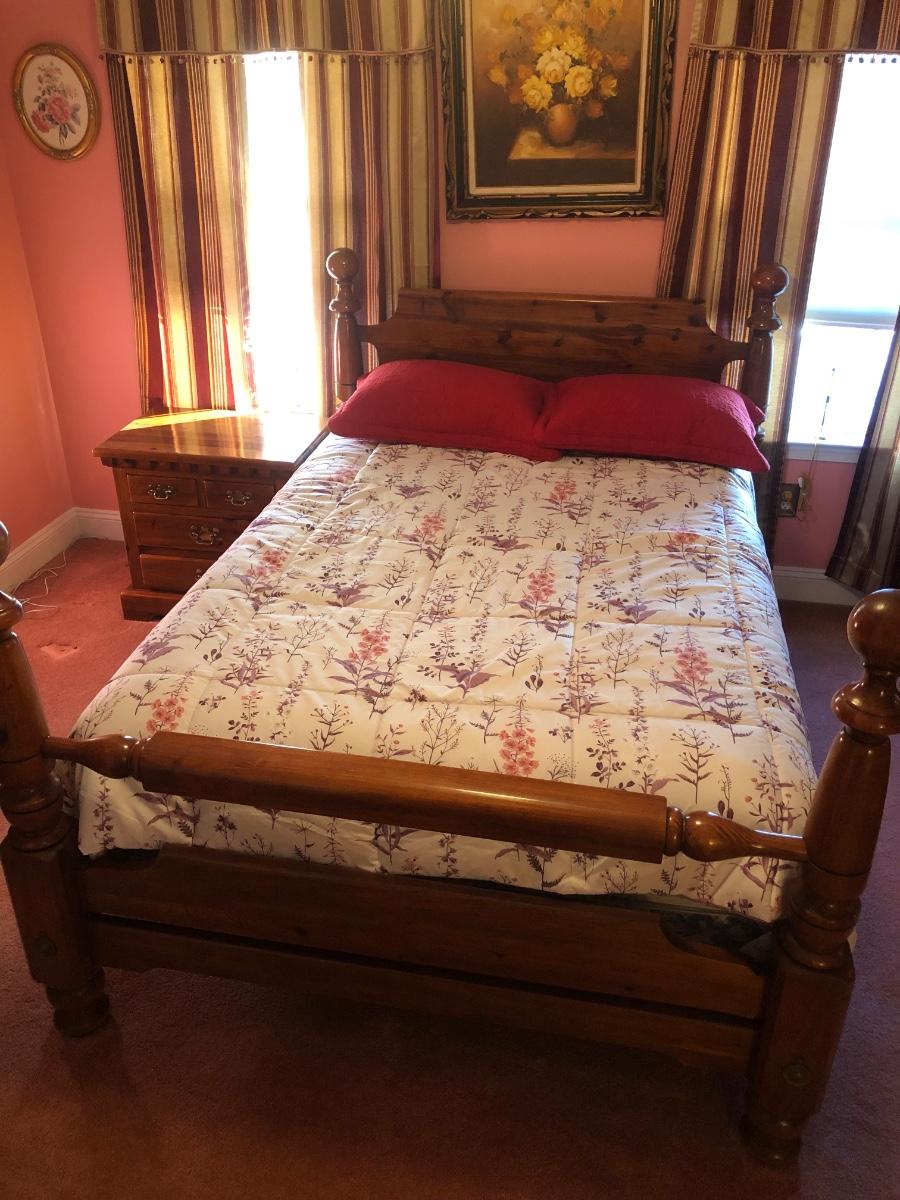 LOT 188PB: Vintage Link-Taylor Colonial Pine Full Sized Wooden Bed w/ Night Stand