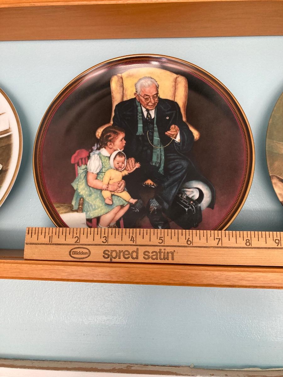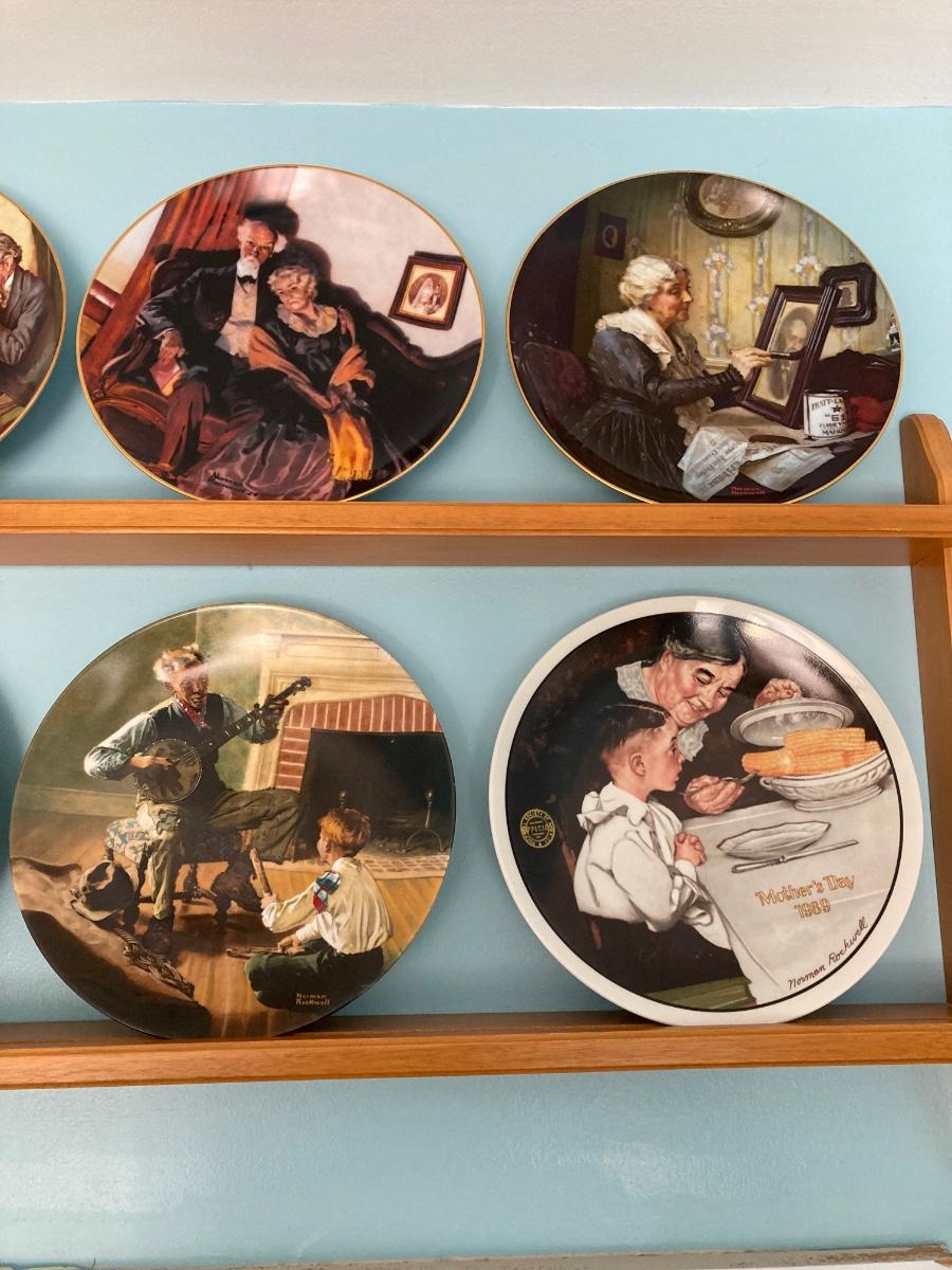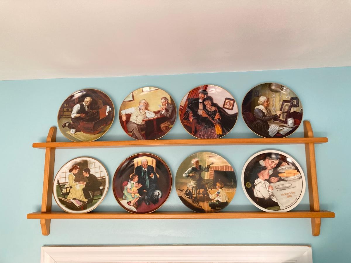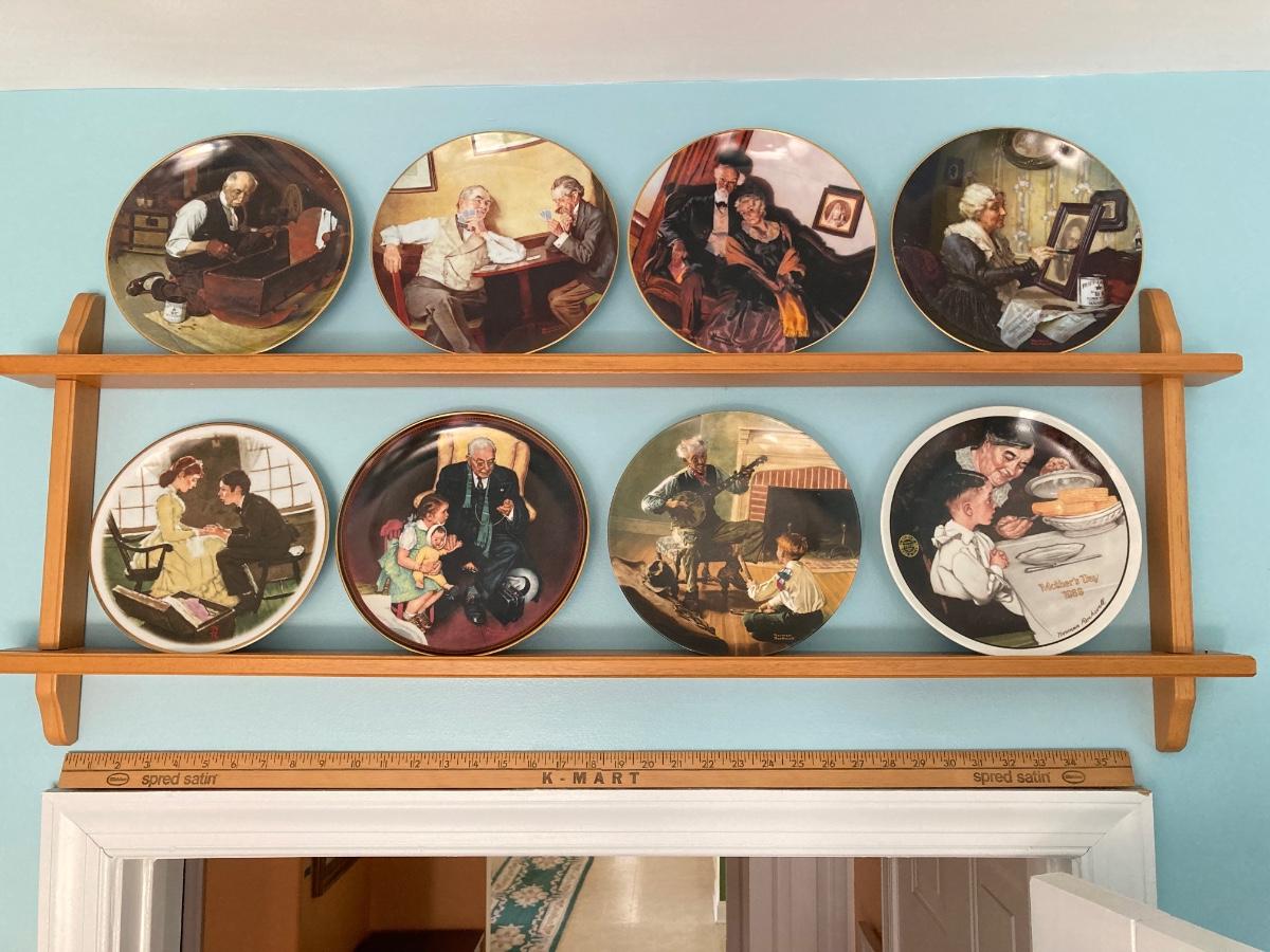 LOT 192W: Collection of Norman Rockwell Plates with Wooden Wall Shelf / Rack