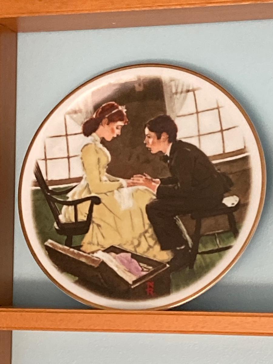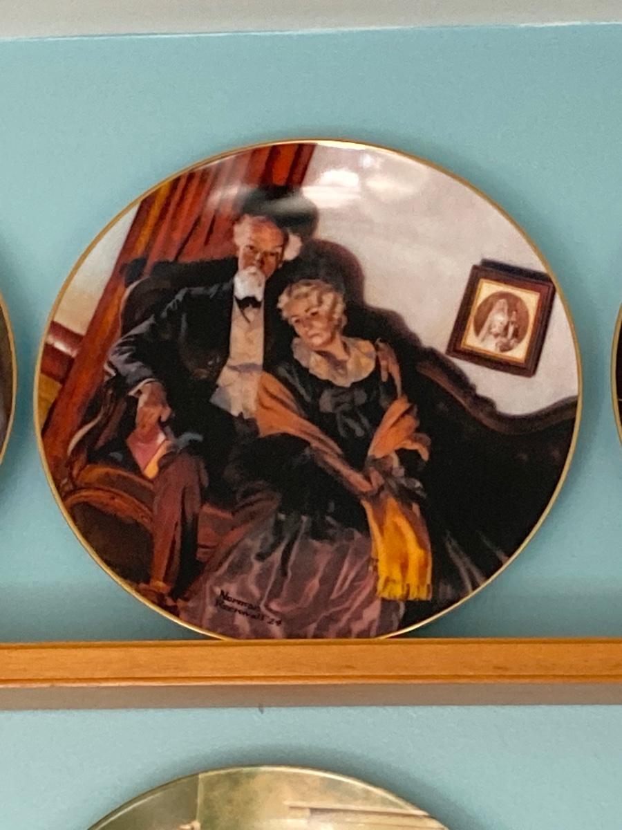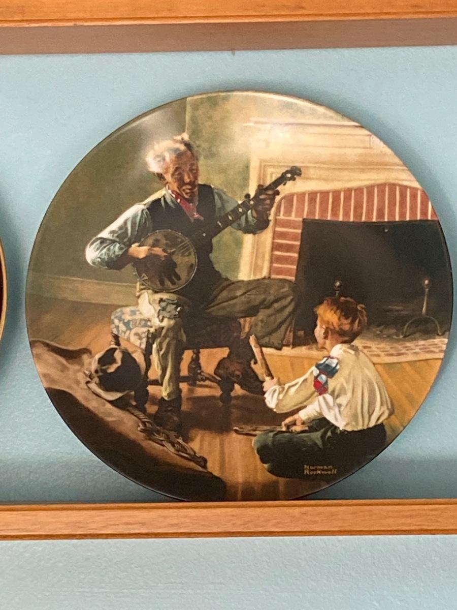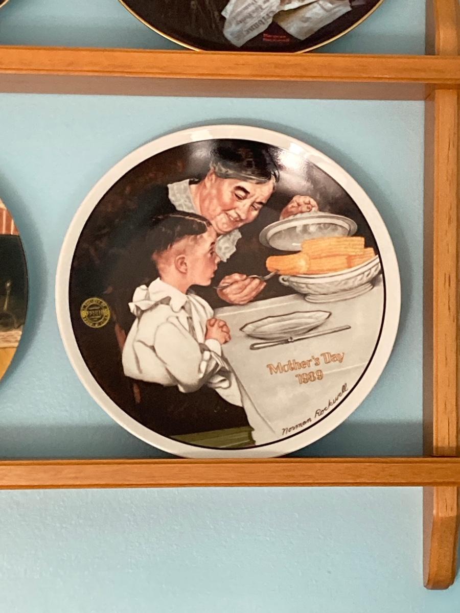 LOT 192W: Collection of Norman Rockwell Plates with Wooden Wall Shelf / Rack