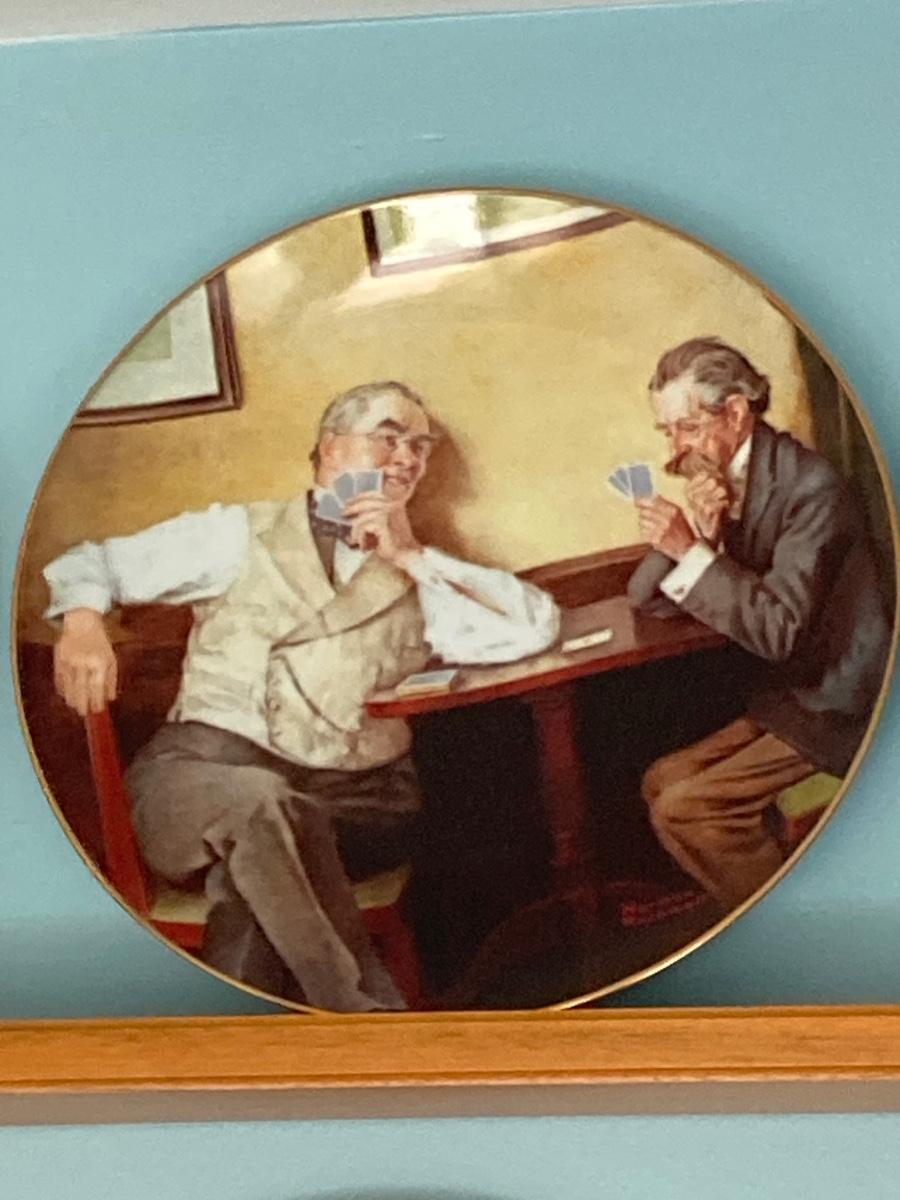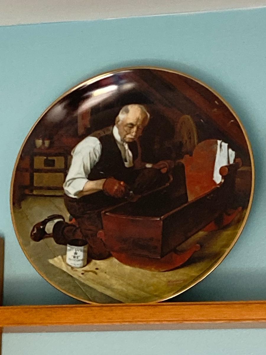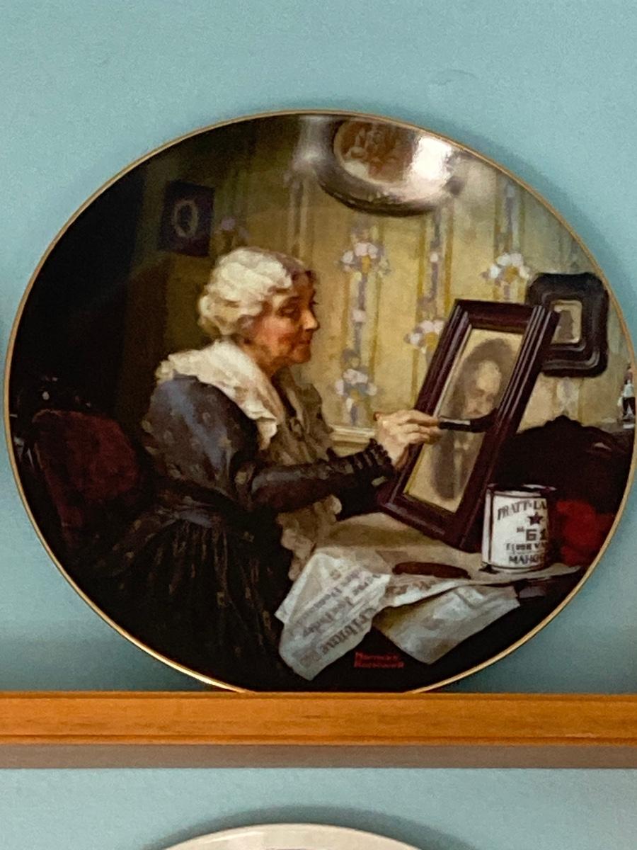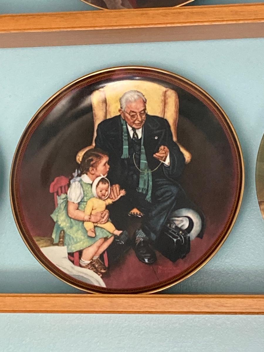 LOT 192W: Collection of Norman Rockwell Plates with Wooden Wall Shelf / Rack