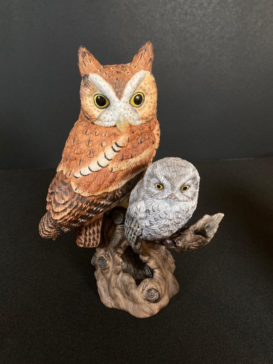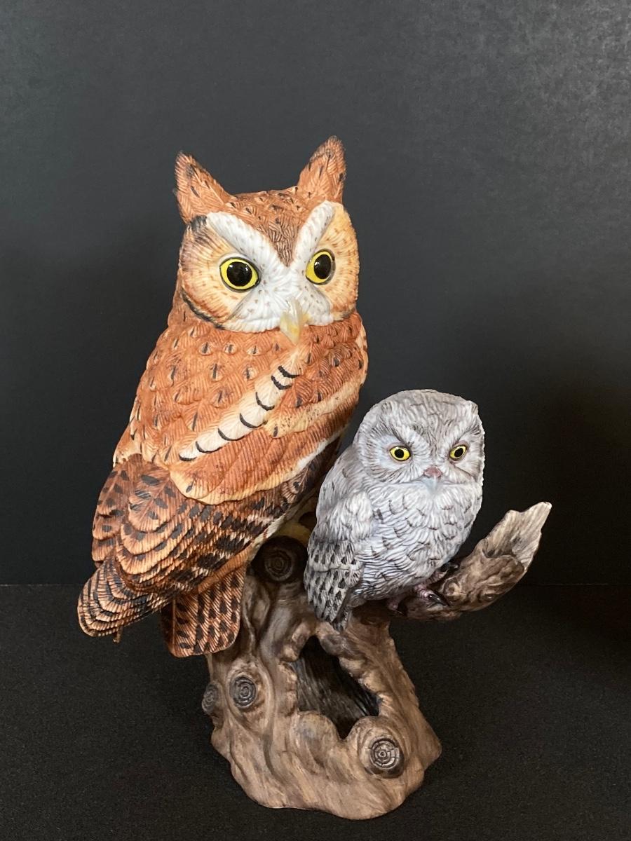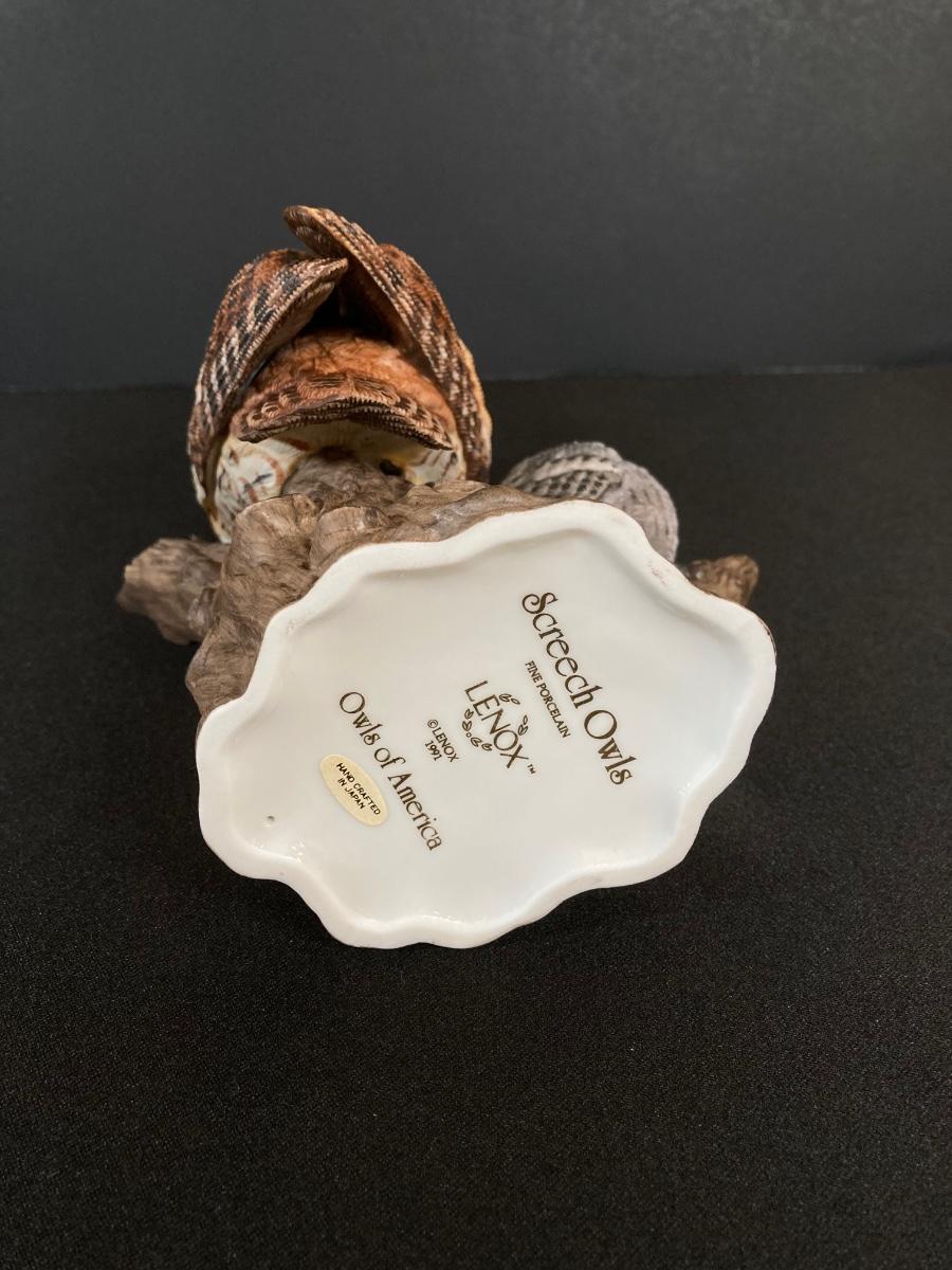 LOT 204KP: Lenox Owls of America Figurines - "Great Horned Owl" and "Screech Owls"