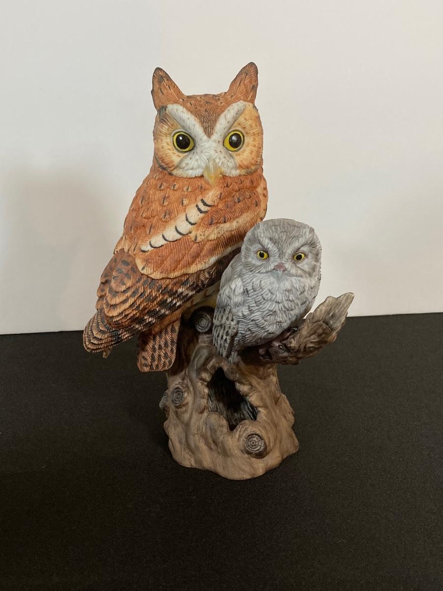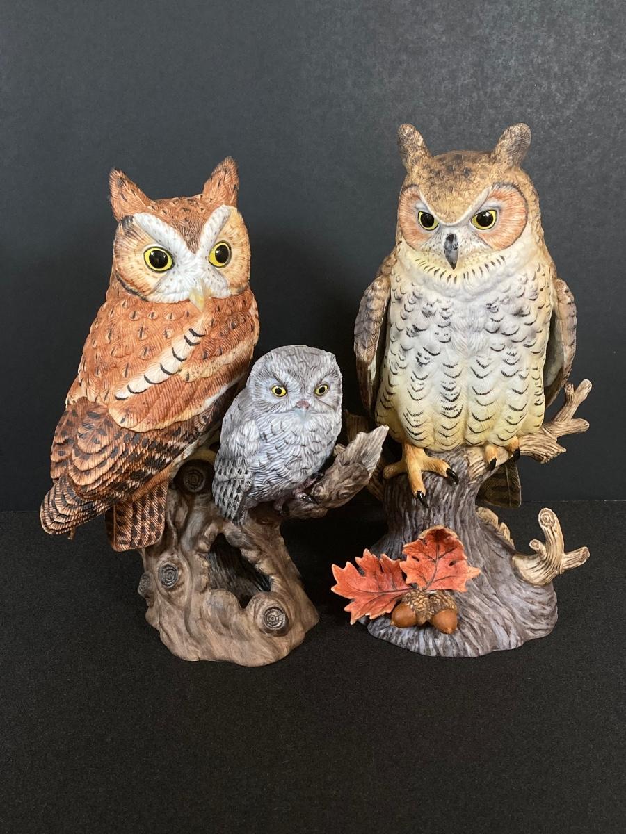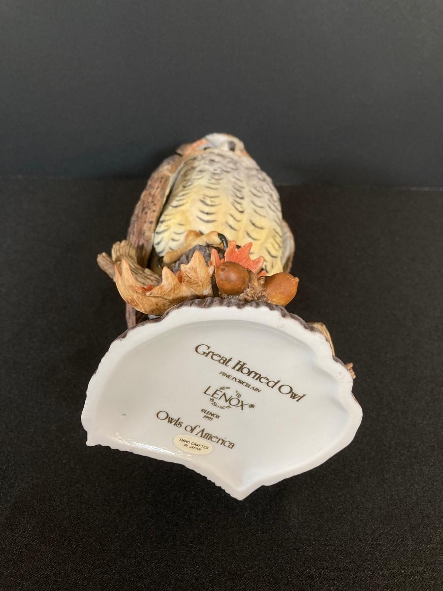 LOT 204KP: Lenox Owls of America Figurines - "Great Horned Owl" and "Screech Owls"