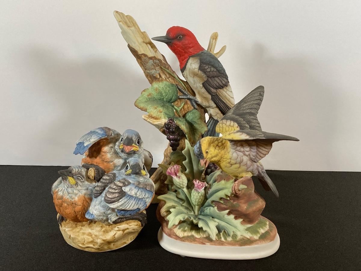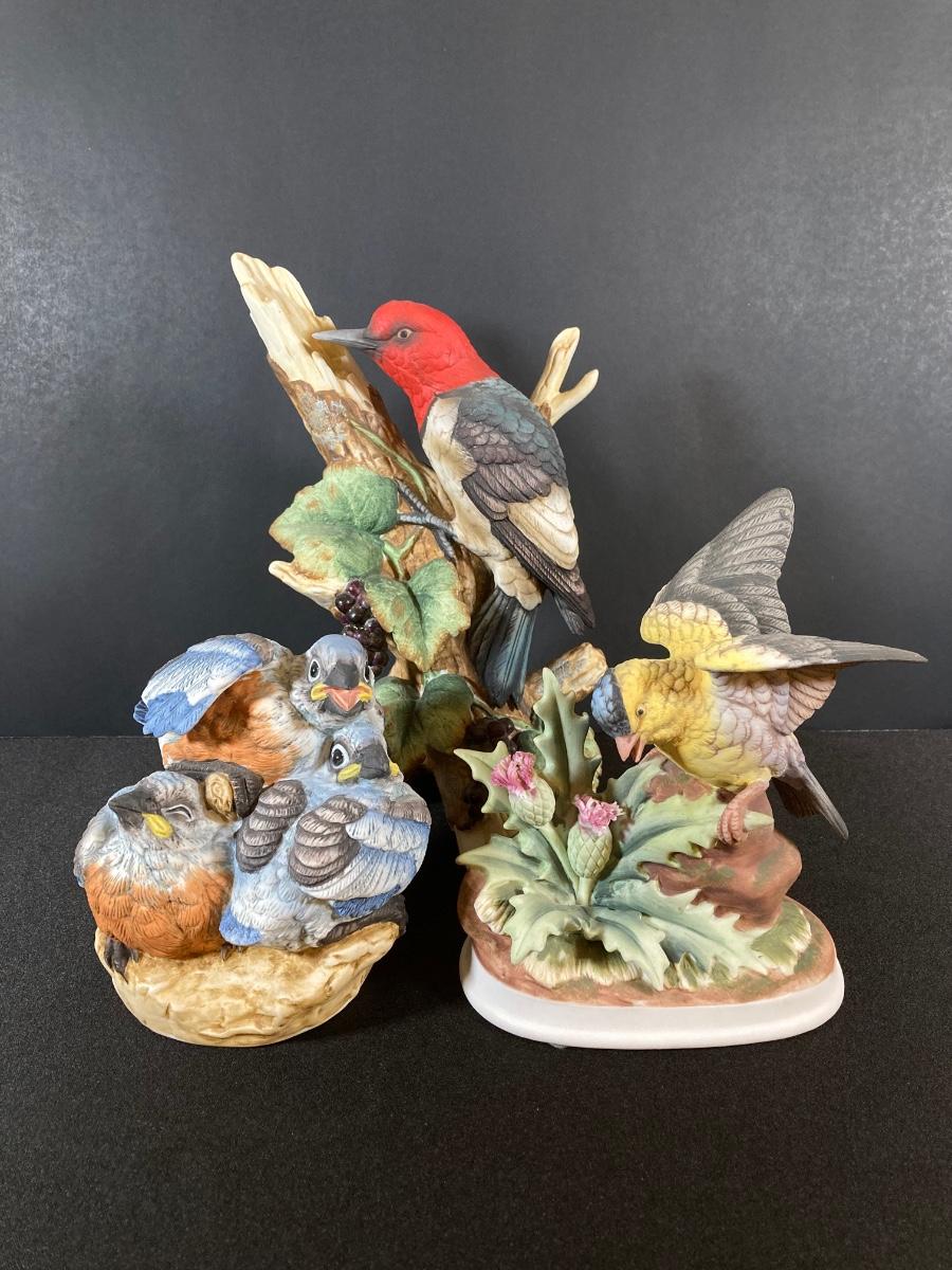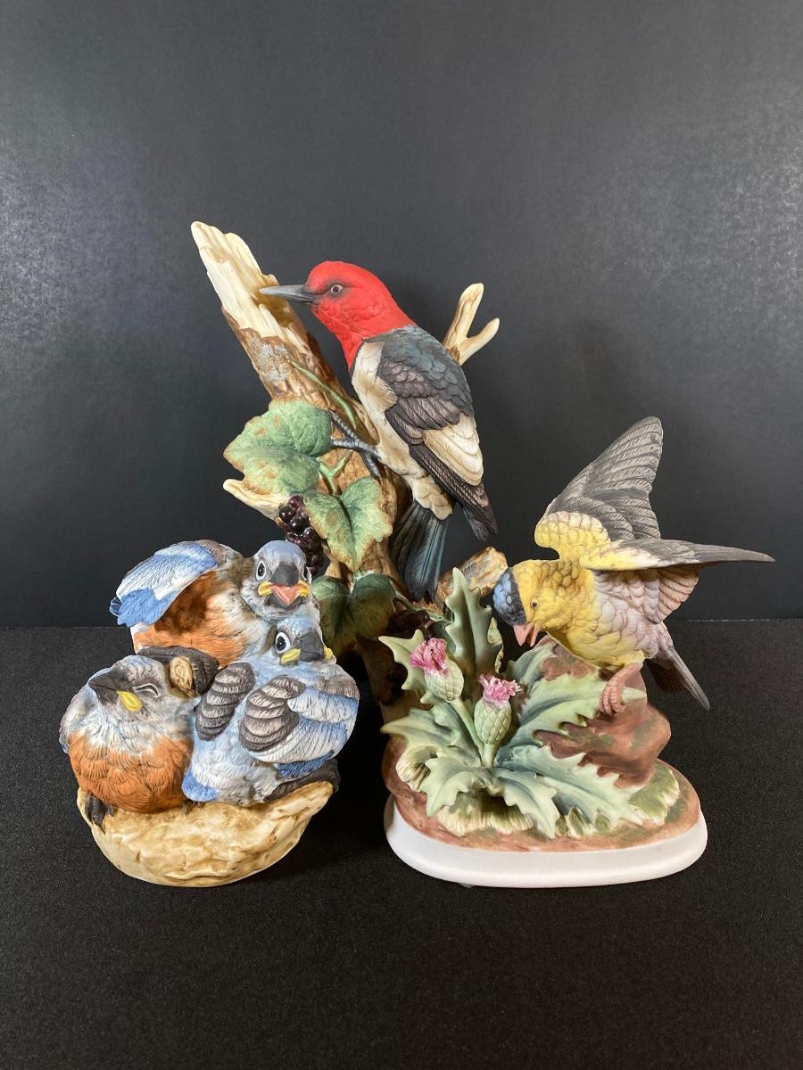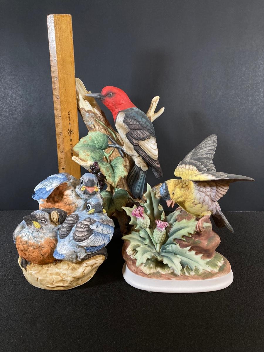 LOT 216KP: Andrea by Sadek Collection of Figurines - Woodpecker, "Baby Bluebirds" and "Goldfinch"