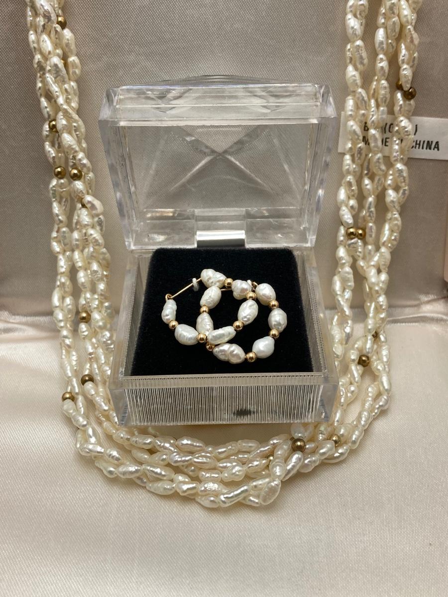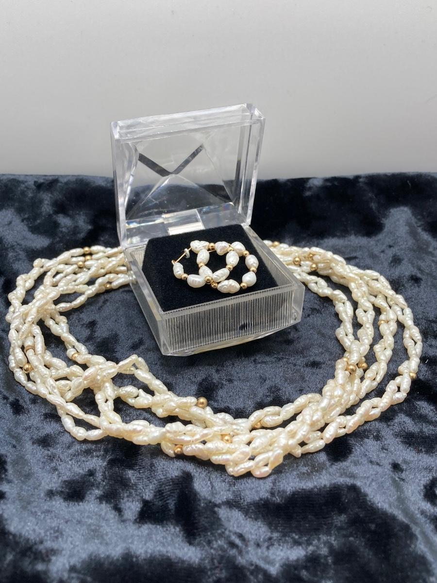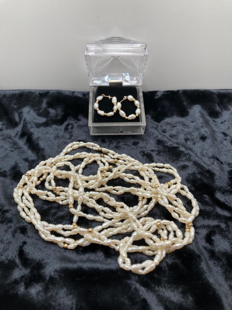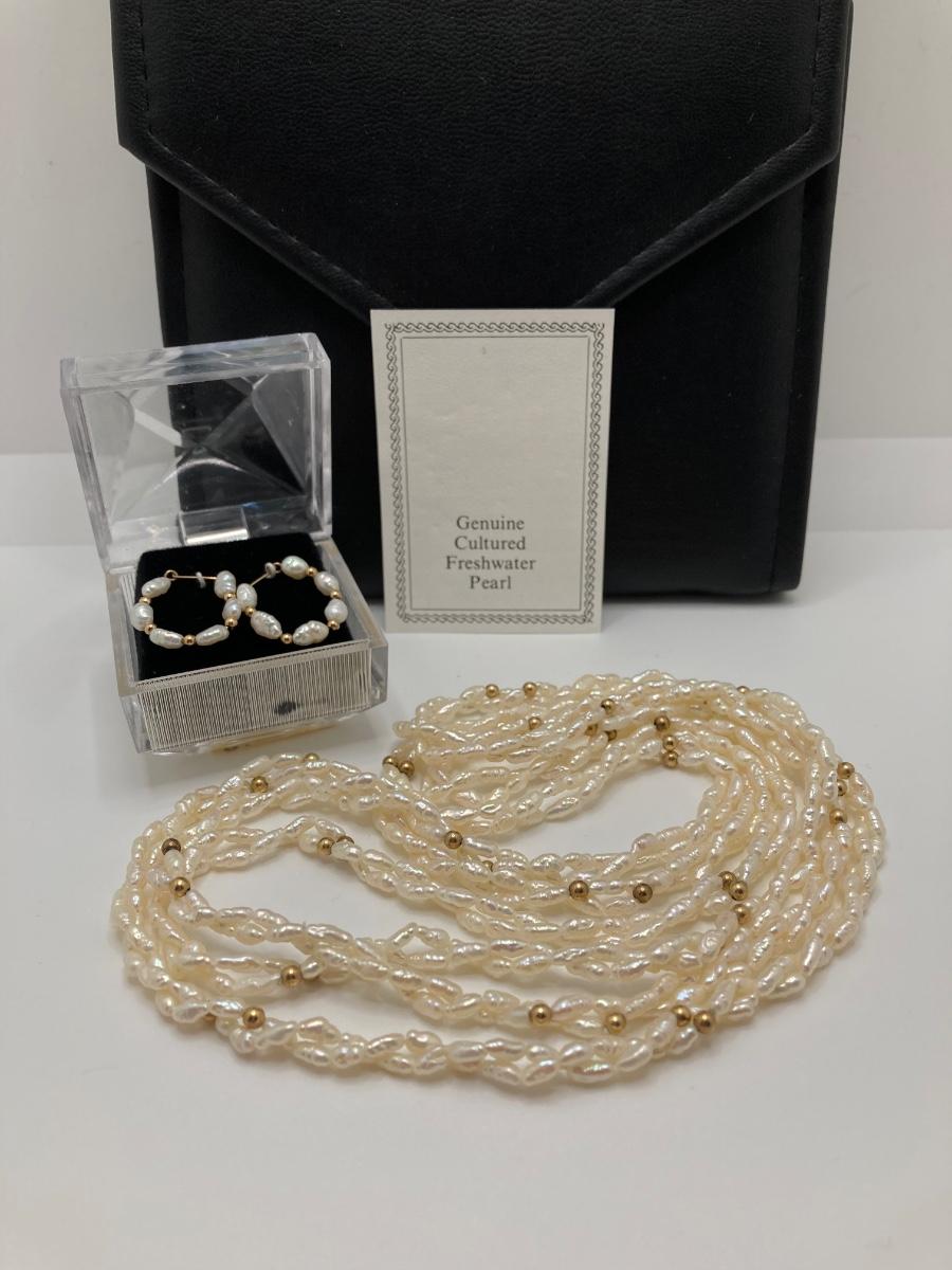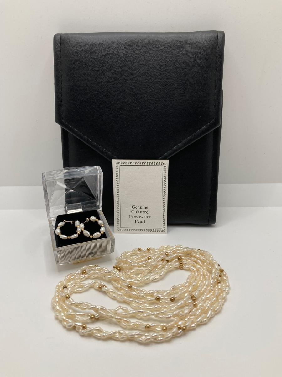 LOT 218J: Genuine Cultured Freshwater Pearl Necklace and Earrings
