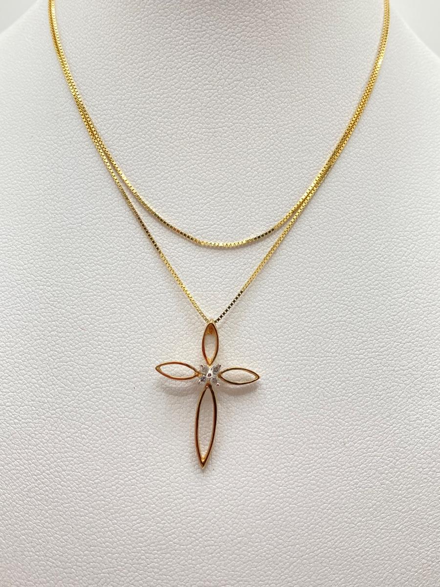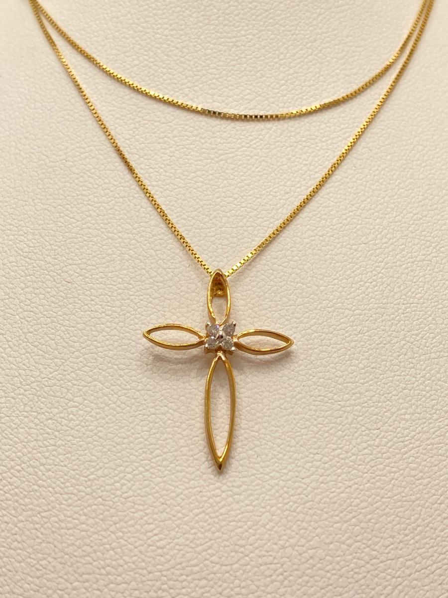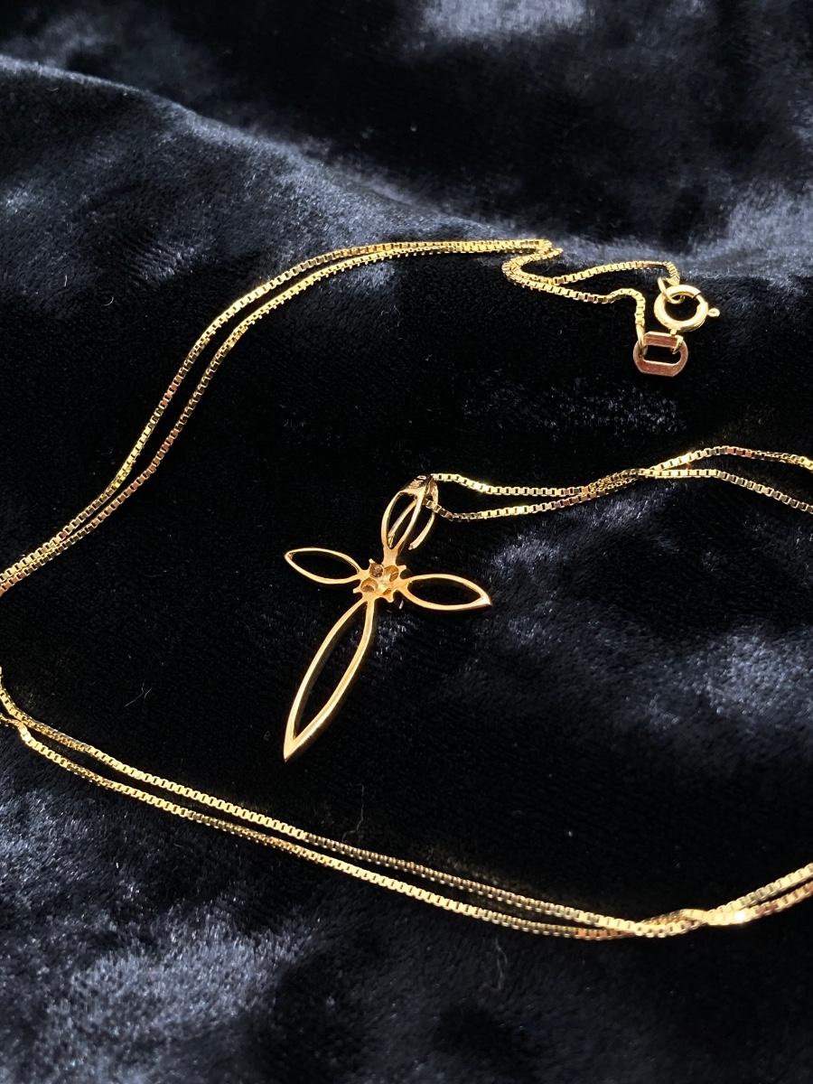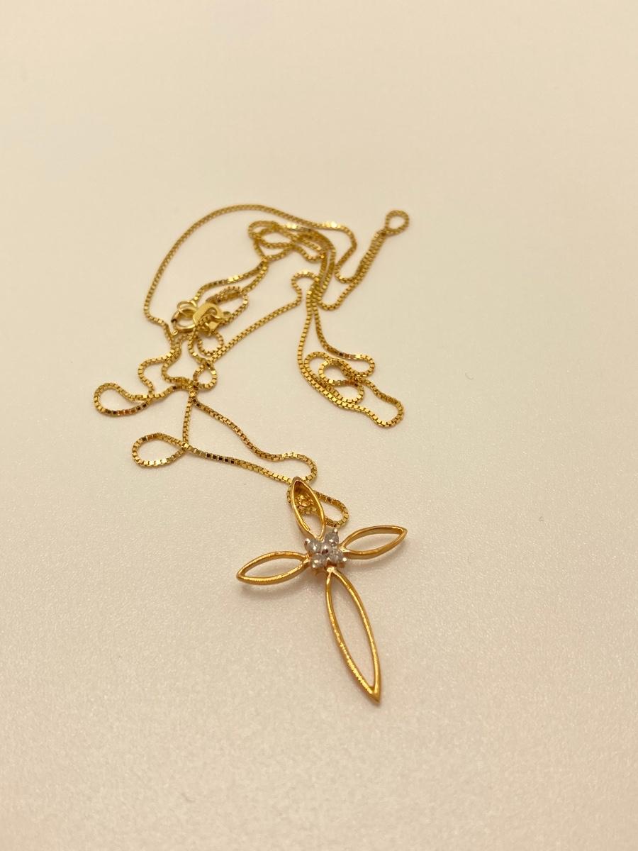 LOT 219J: Gold Necklace with Cross Pendant - 14K., Tw 1.8g - 20"