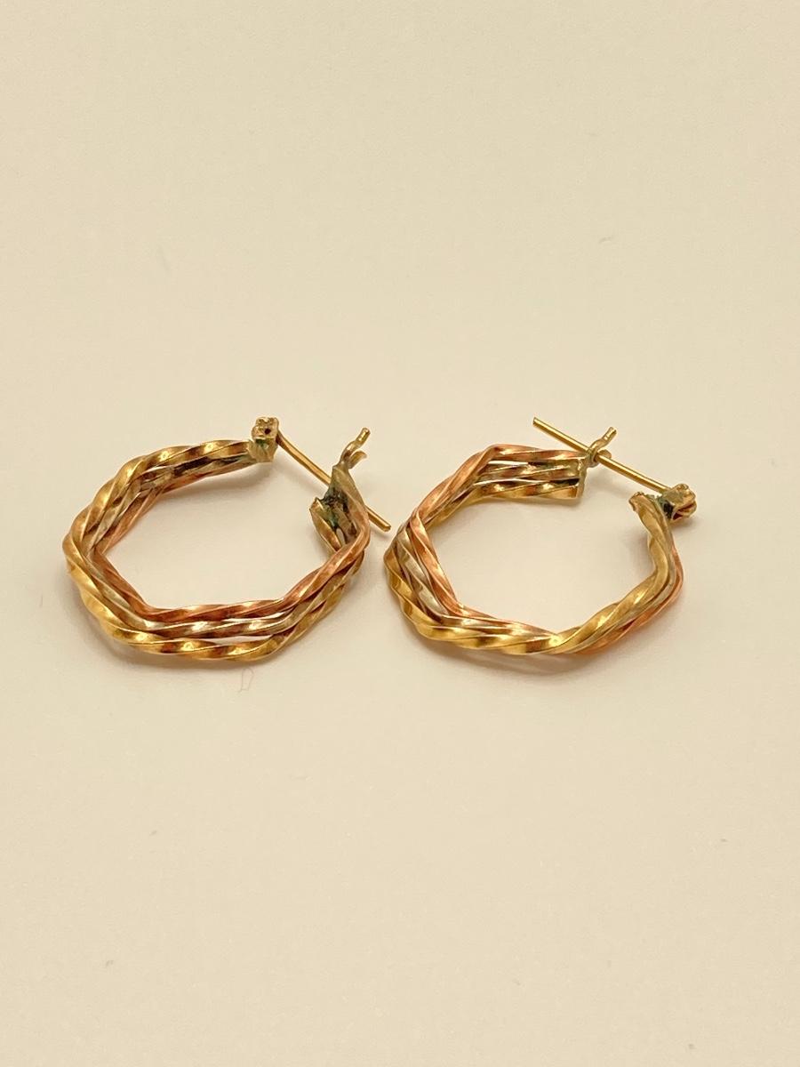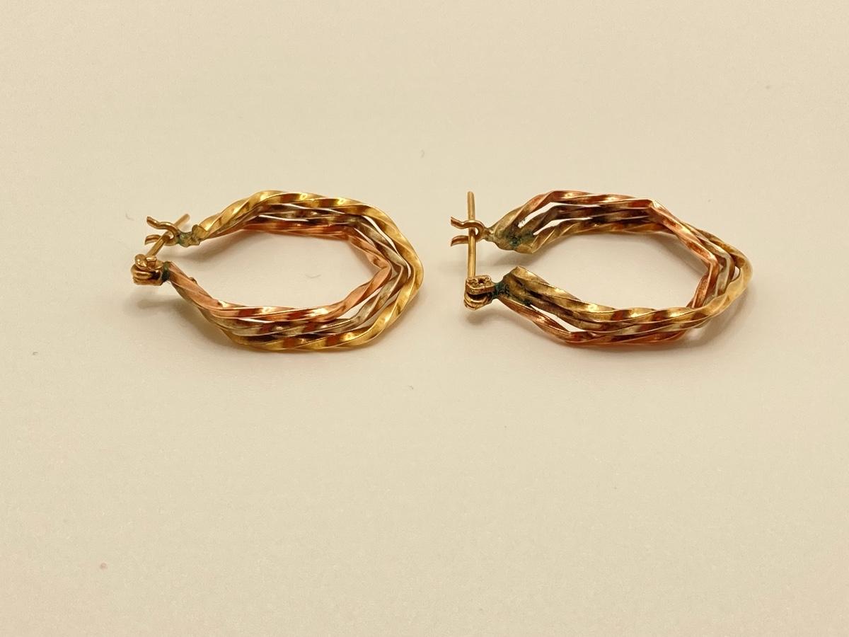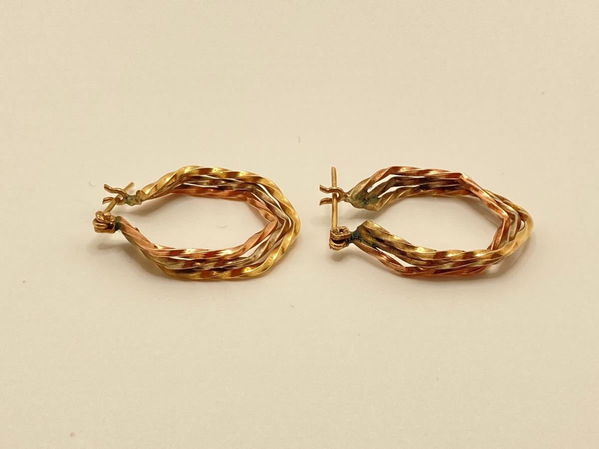 LOT 227J: Tricolor Gold Hoop Earrings - 14K., Tw 3.4g