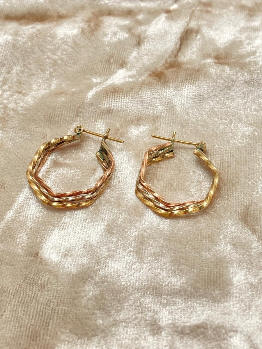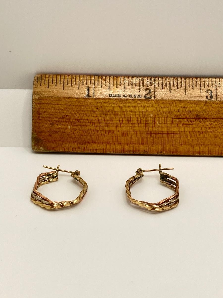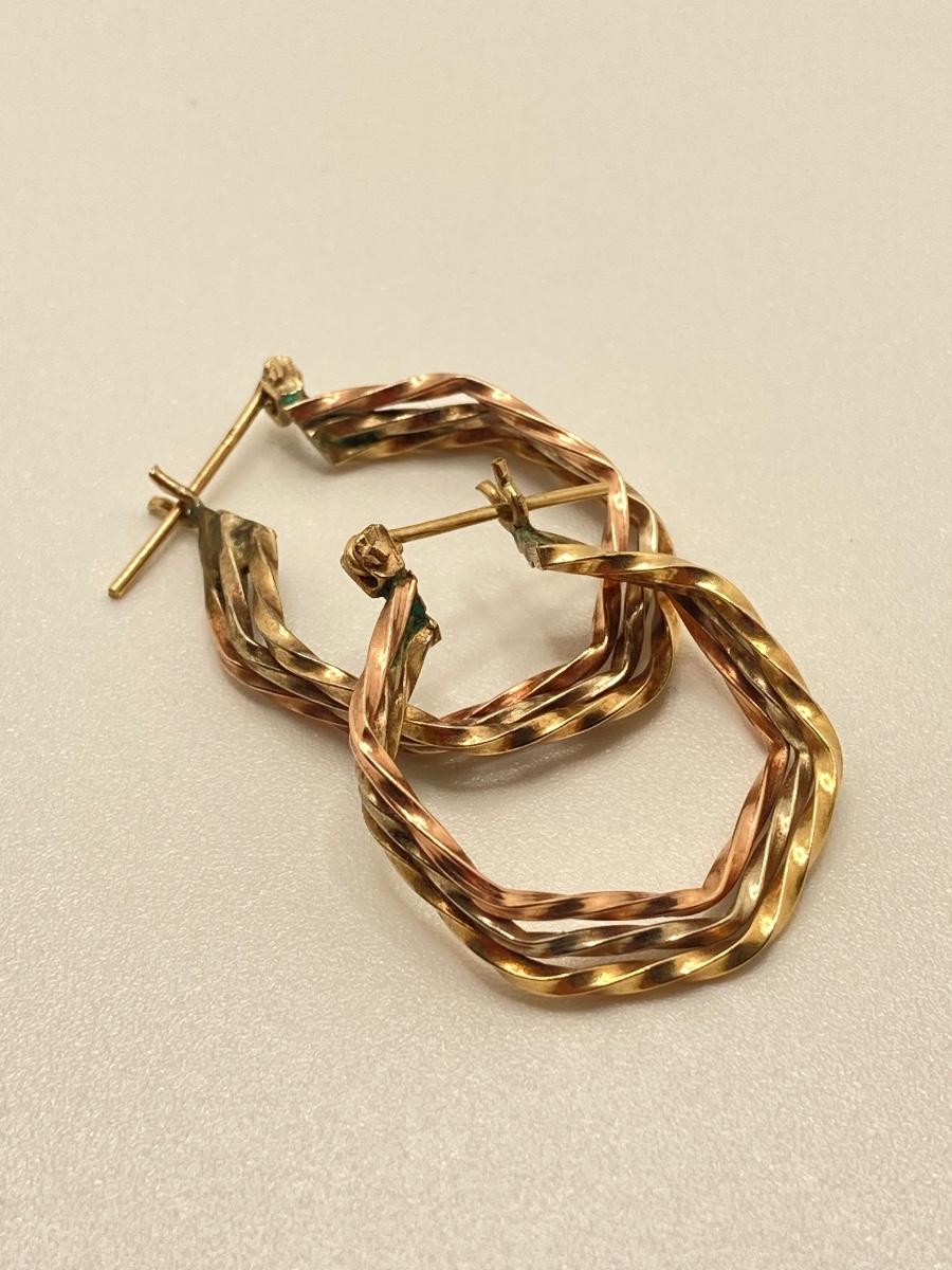 LOT 227J: Tricolor Gold Hoop Earrings - 14K., Tw 3.4g