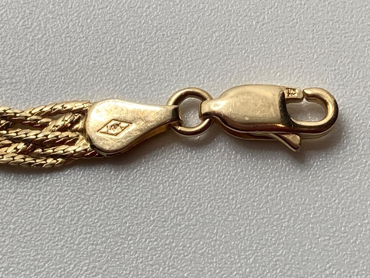 14K., Tw 4.0g - 8 inches - Please see all pictures as they are the best representation of the items. The pictures show condition, measurements if taken, and what is included in the lot. Due to the large amount that we photograph and the time frame, we are not always able to take measurements. All items unless noted, are pre-owned and have been used. If you purchased furniture, you must bring help. We do not allow one person to carry large furniture out on their own. Bring help, tools and a truck for the safety of our client’s homes, and your personal safety. Any damages that result to the property including walls, and floors due to moving of the furniture will be charged to the buyer. Company policy. Thank you.