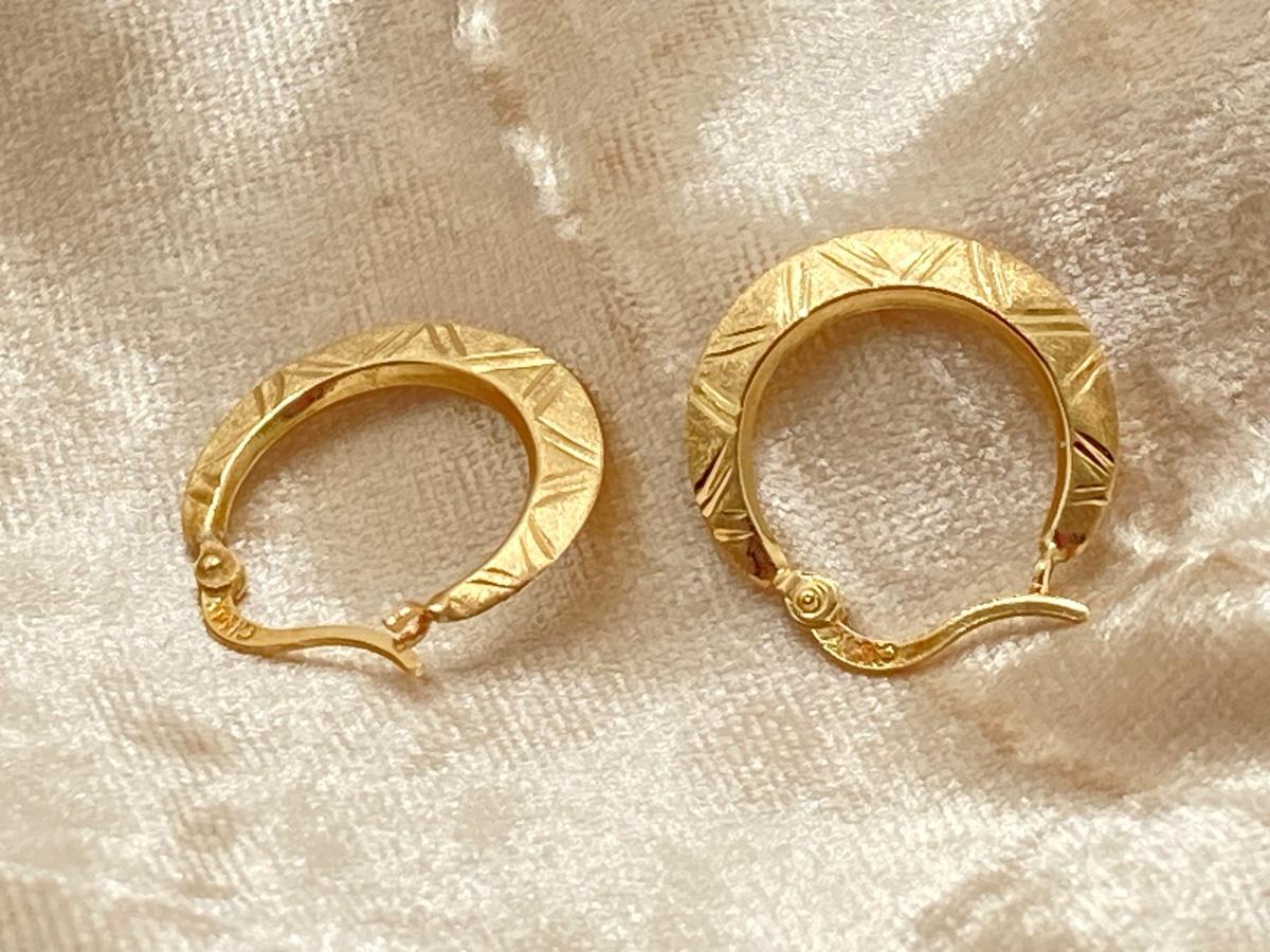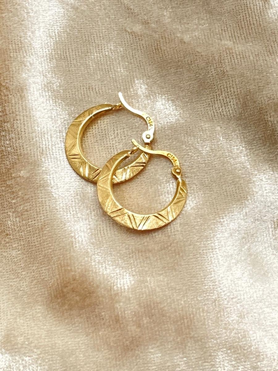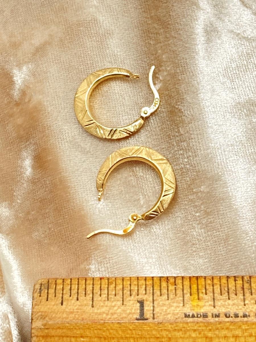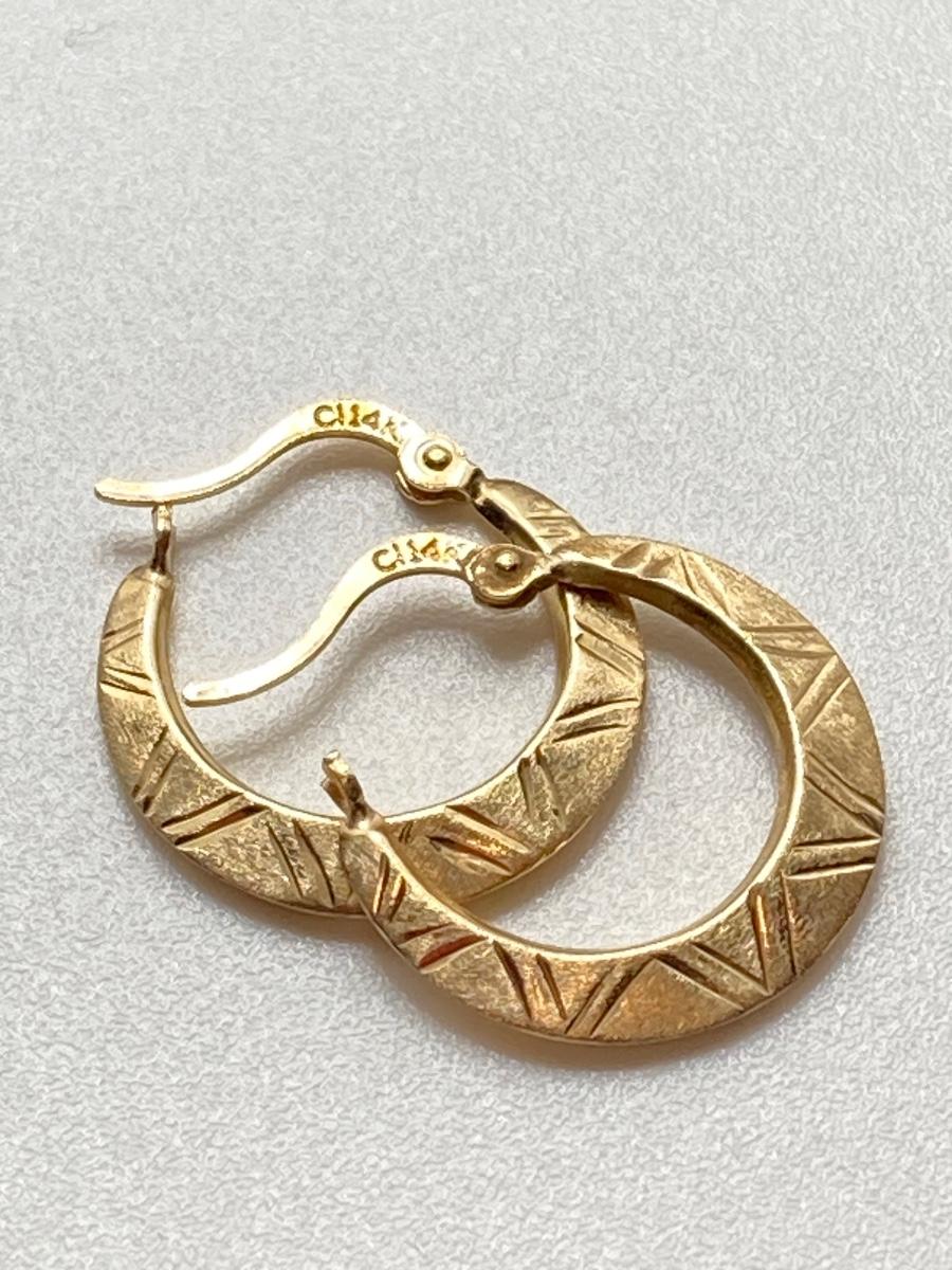 LOT 240J: CI 14K Diamond Cut Brushed Hoop Earrings - 14K., Tw 0.8g