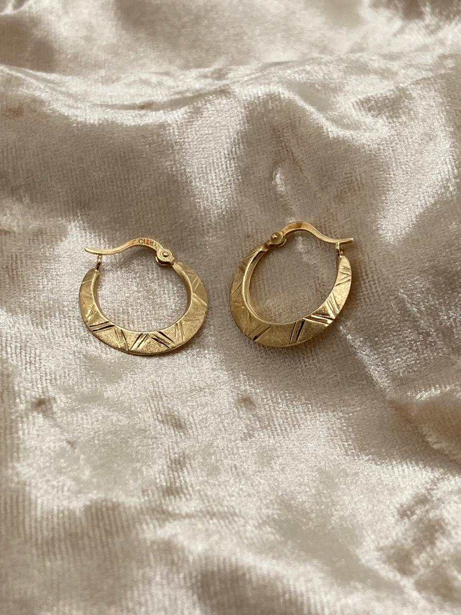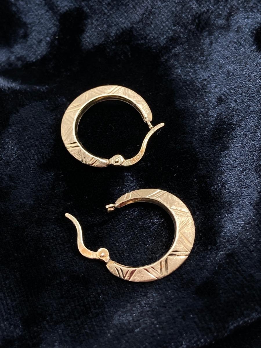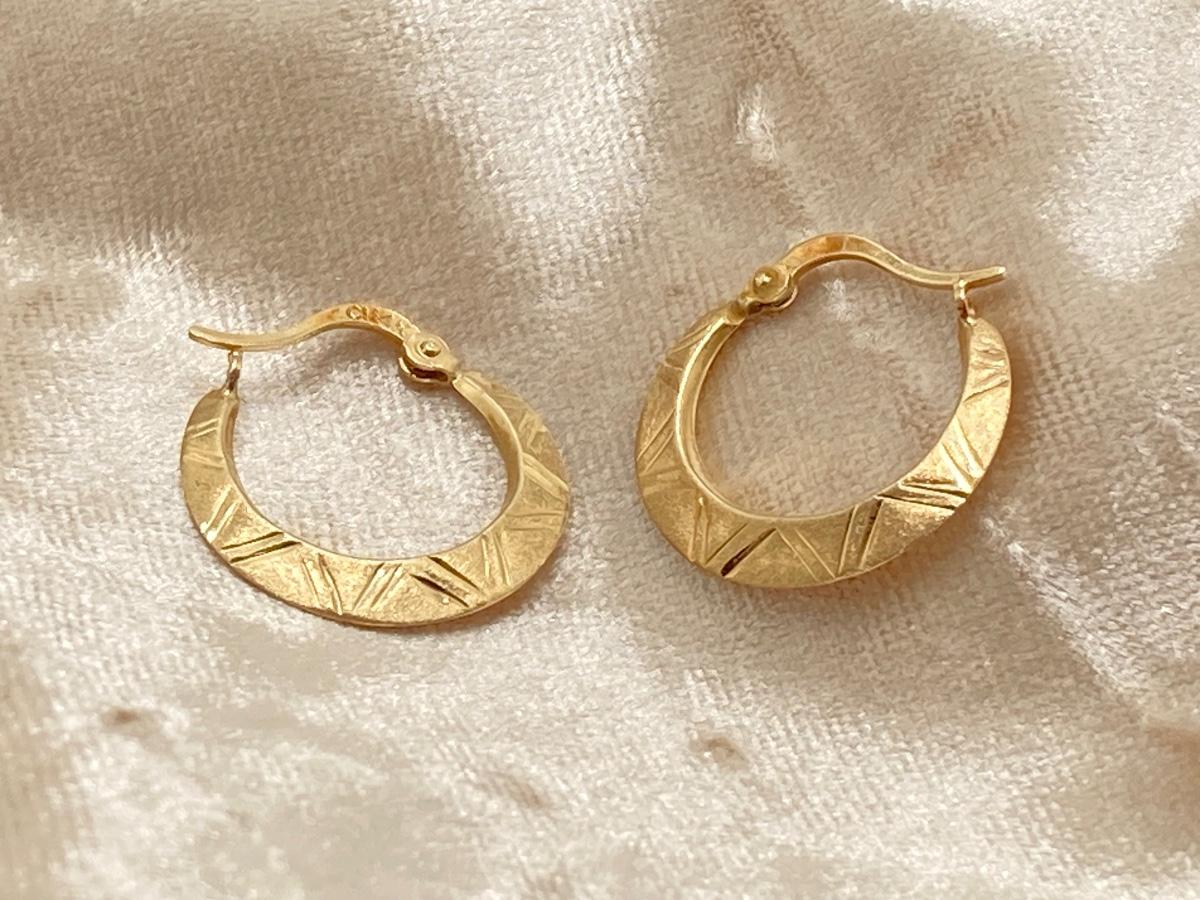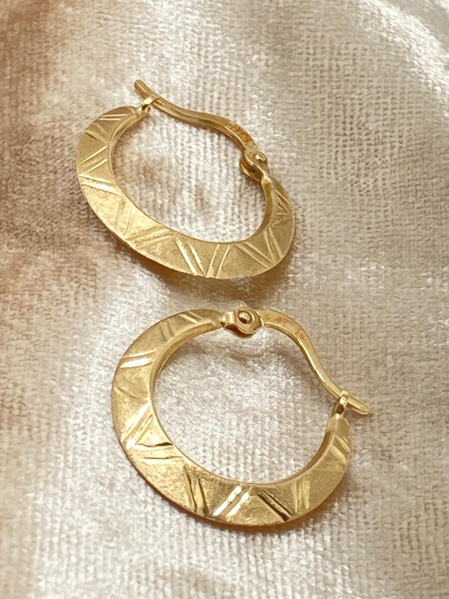 LOT 240J: CI 14K Diamond Cut Brushed Hoop Earrings - 14K., Tw 0.8g