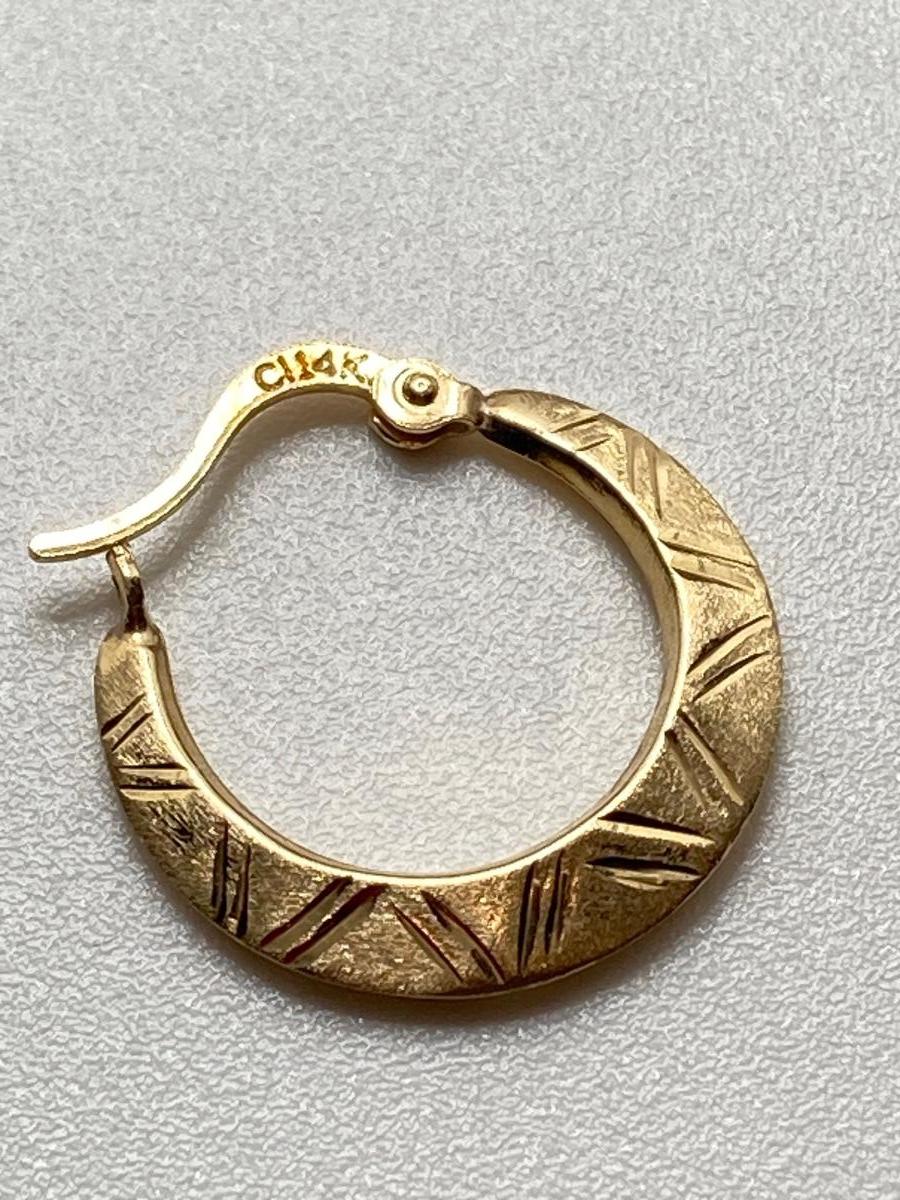 14K., Tw 0.8g - Please see all pictures as they are the best representation of the items. The pictures show condition, measurements if taken, and what is included in the lot. Due to the large amount that we photograph and the time frame, we are not always able to take measurements. All items unless noted, are pre-owned and have been used. If you purchased furniture, you must bring help. We do not allow one person to carry large furniture out on their own. Bring help, tools and a truck for the safety of our client’s homes, and your personal safety. Any damages that result to the property including walls, and floors due to moving of the furniture will be charged to the buyer. Company policy. Thank you.