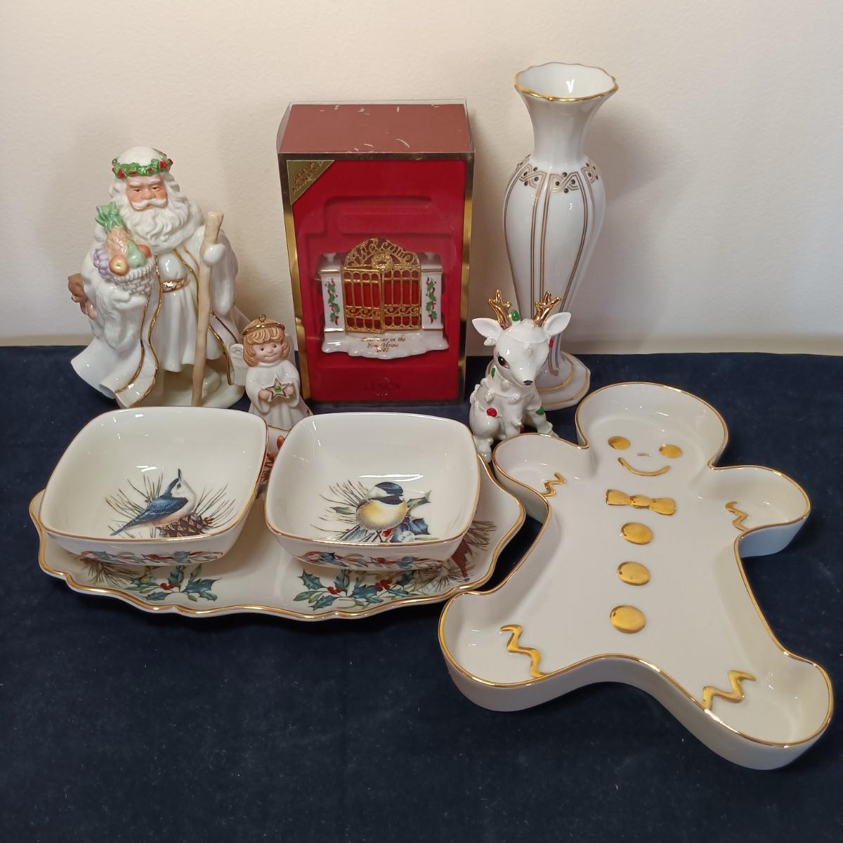 LOT244K: Lenox Holiday Collection- 2002 1st Year New Home Ornament, Ivory China Reindeer, 1999 Father Christmas & More