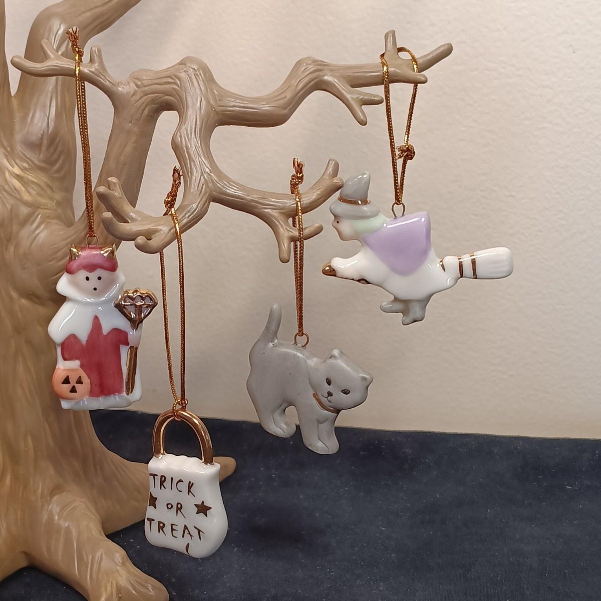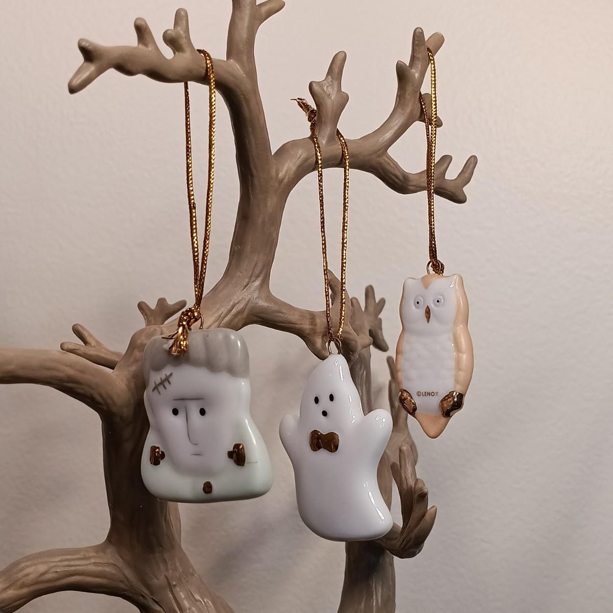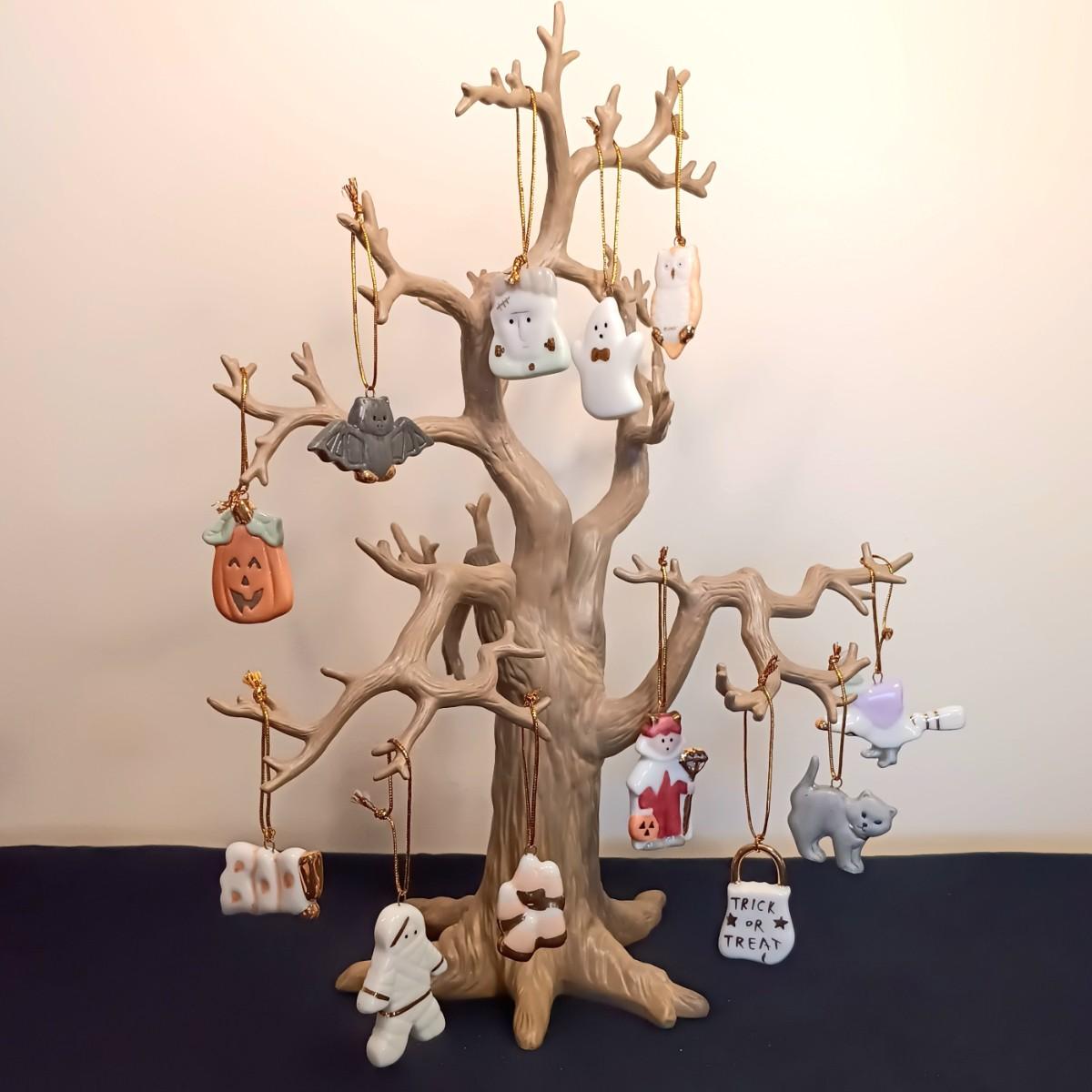 LOT 245LF: Vintage Lenox 'Trick or Treat' Halloween Tree with 12 Ornaments