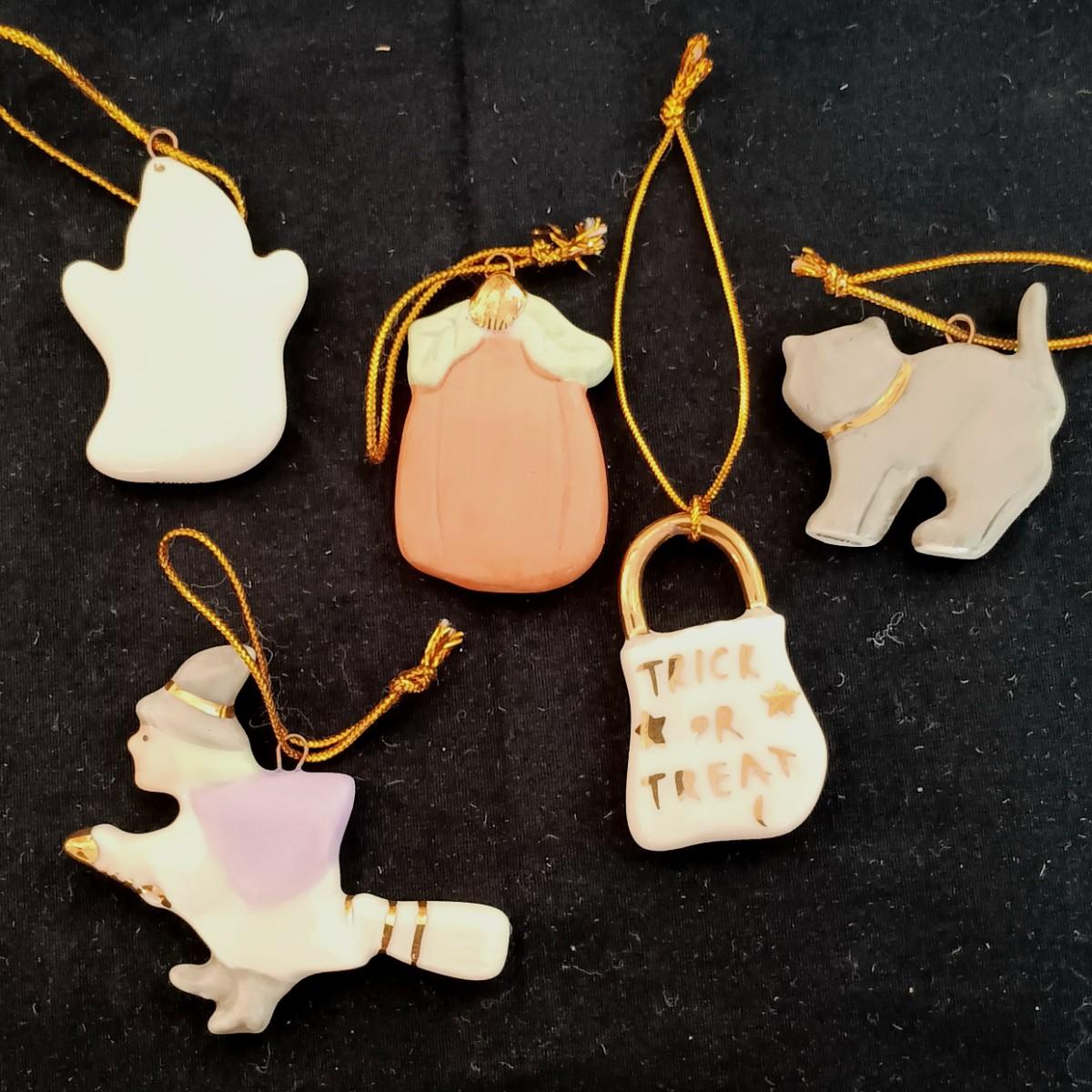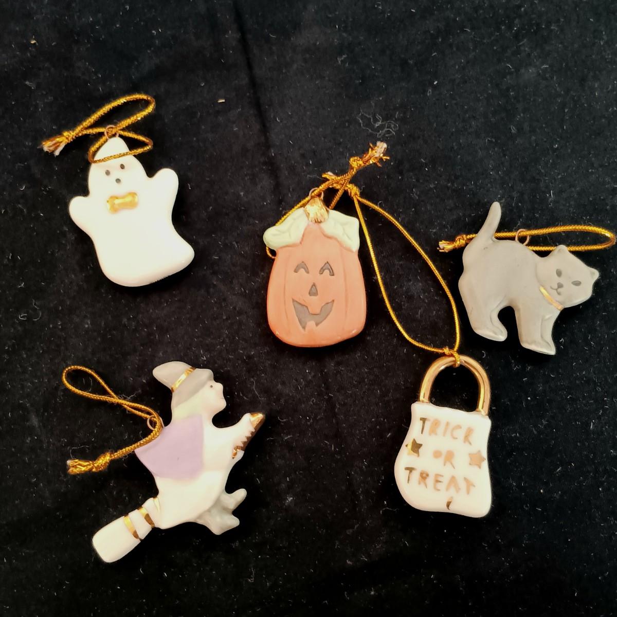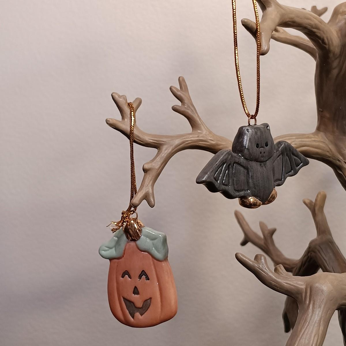 LOT 245LF: Vintage Lenox 'Trick or Treat' Halloween Tree with 12 Ornaments