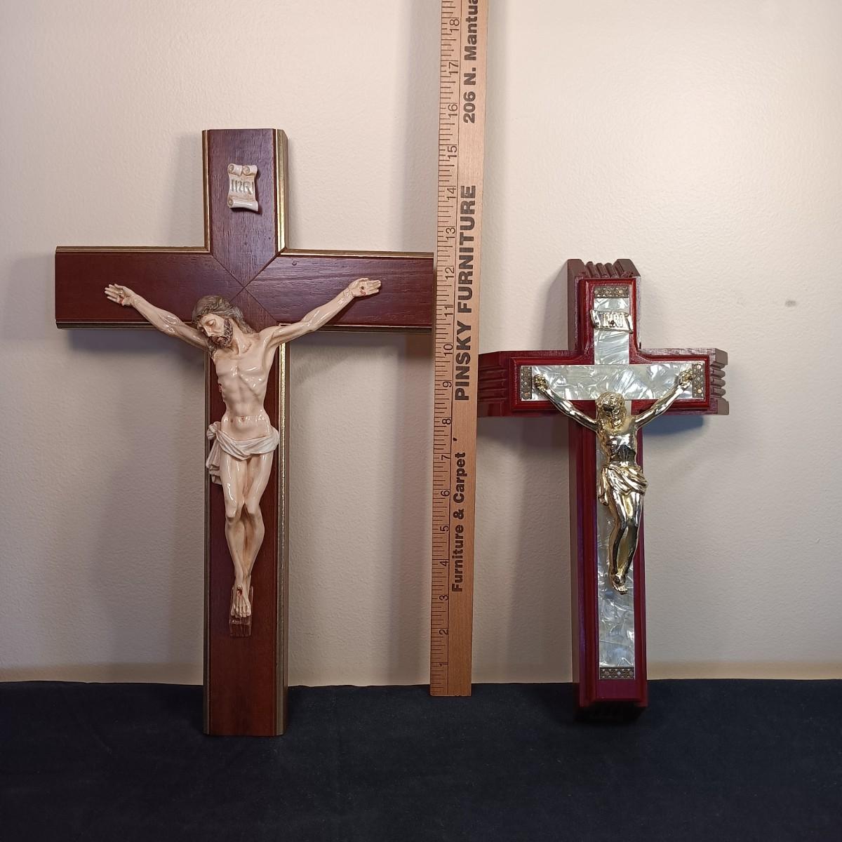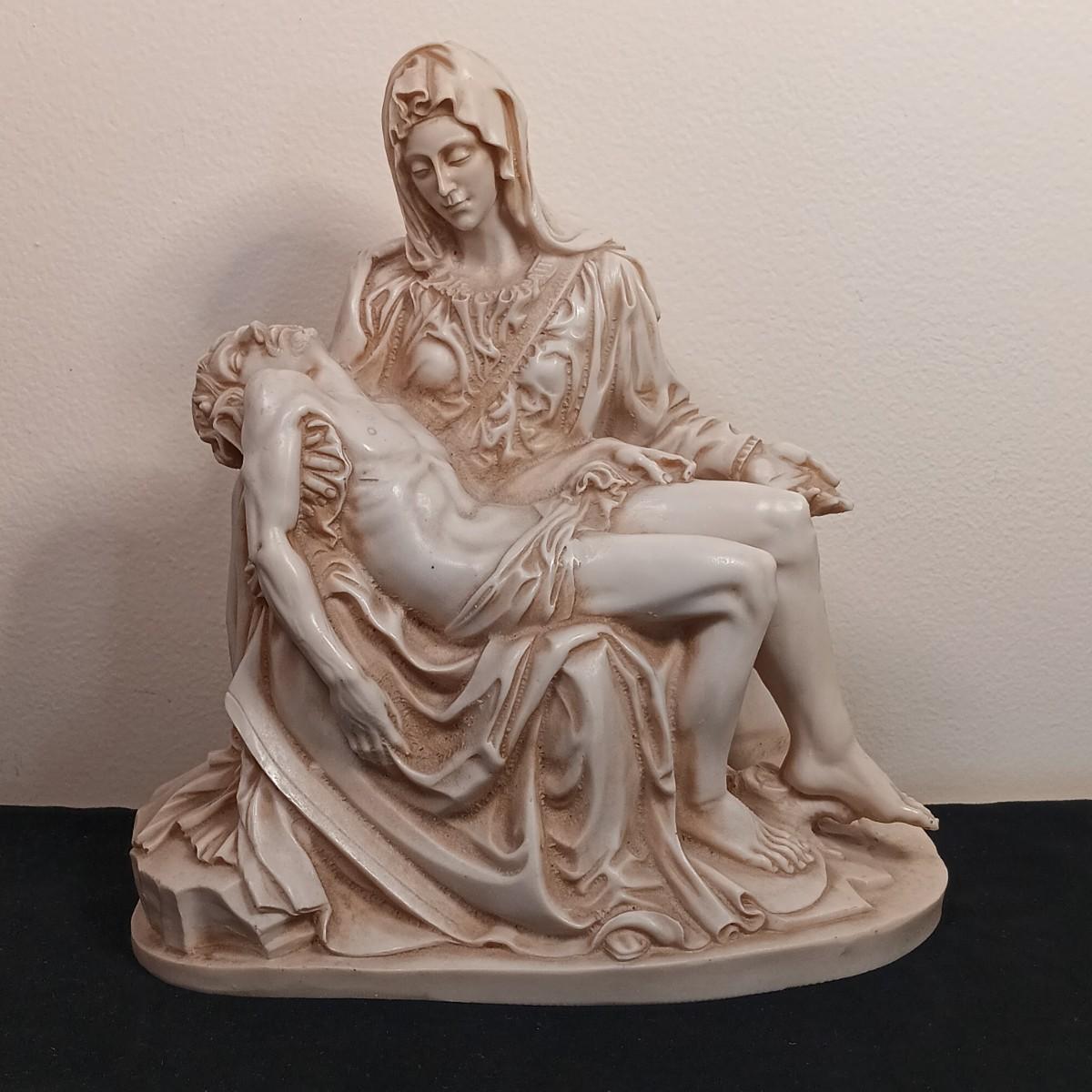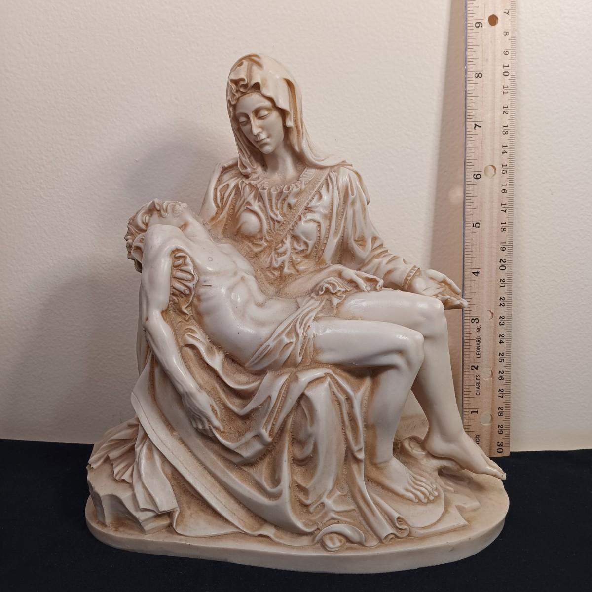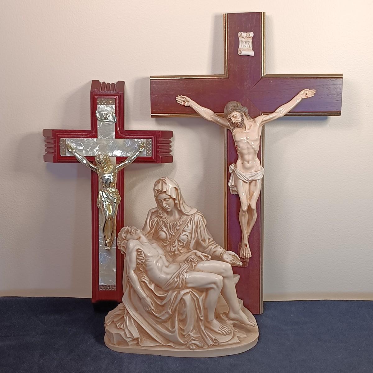 LOT 247K: Religious Collection- Vintage I.A.T. 'Pieta' by Michelangelo Reproduction with Two Wooden Crosses