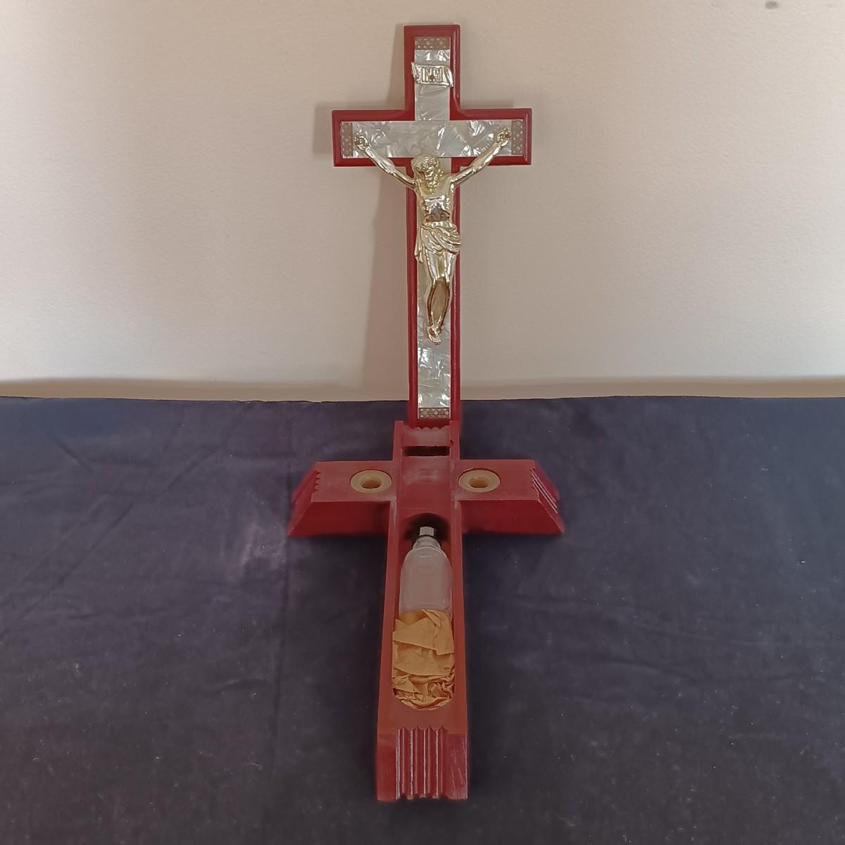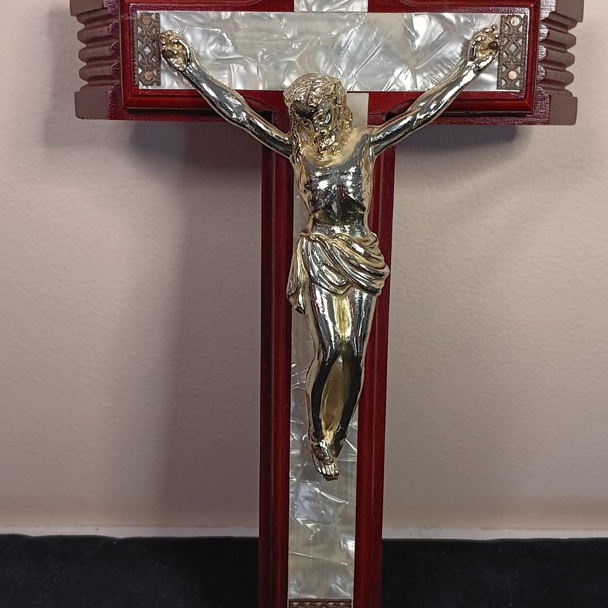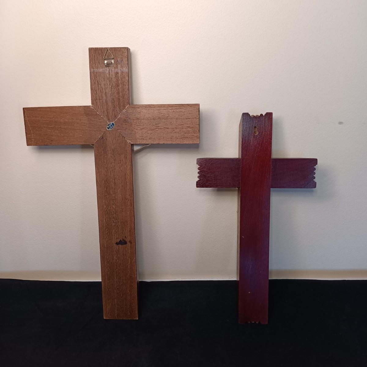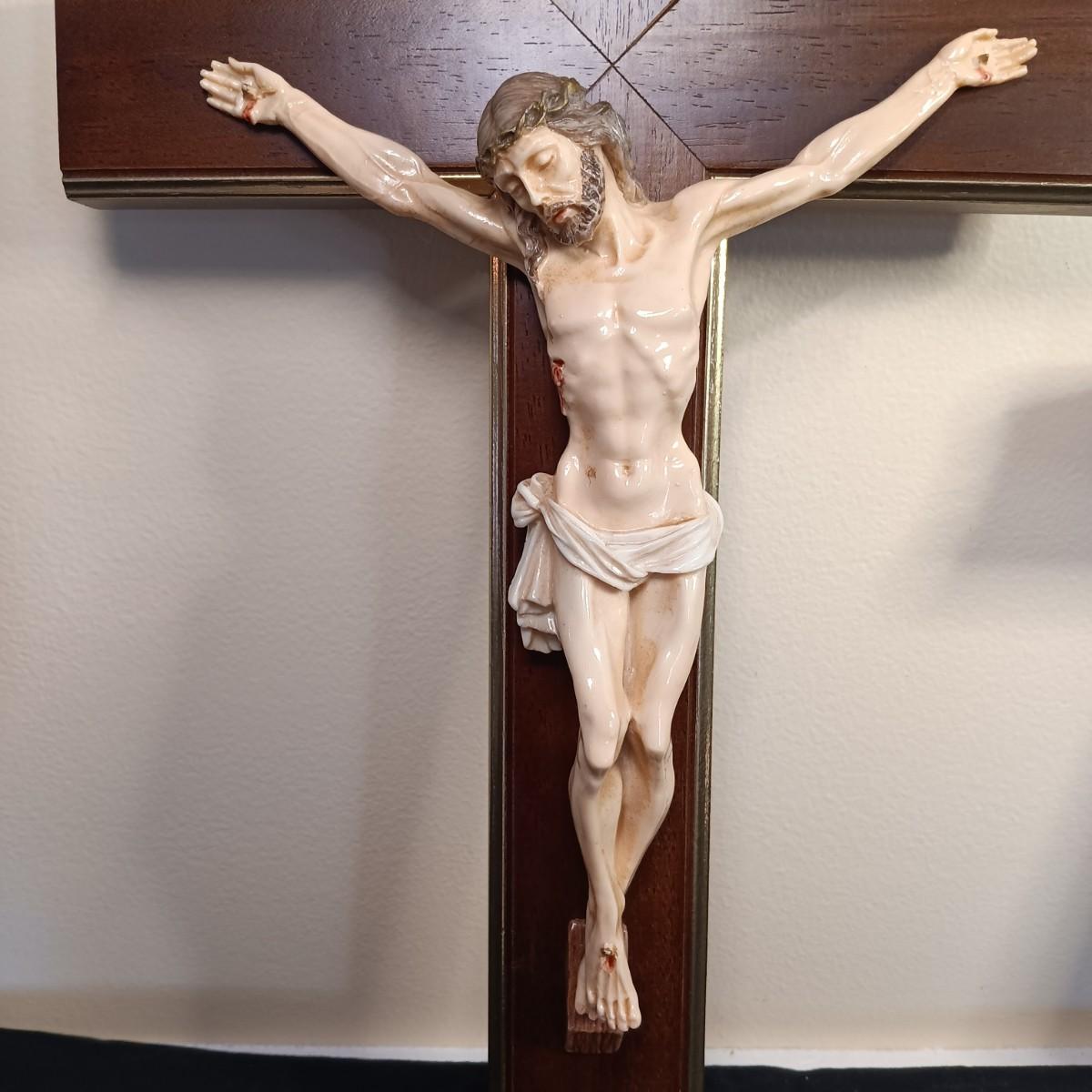 LOT 247K: Religious Collection- Vintage I.A.T. 'Pieta' by Michelangelo Reproduction with Two Wooden Crosses