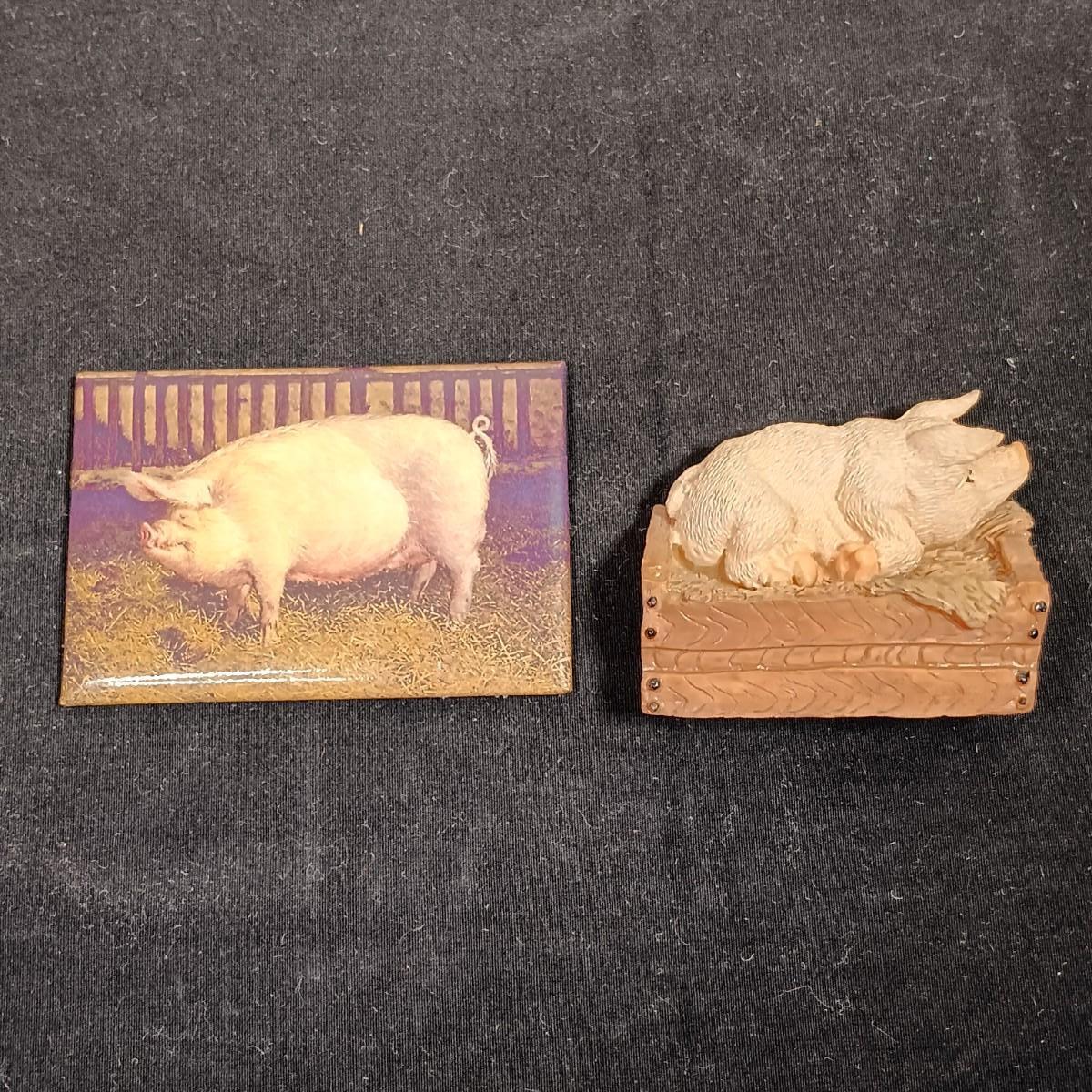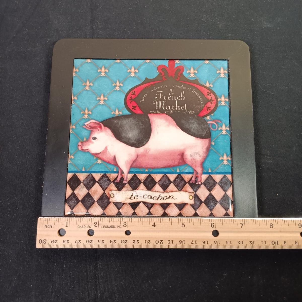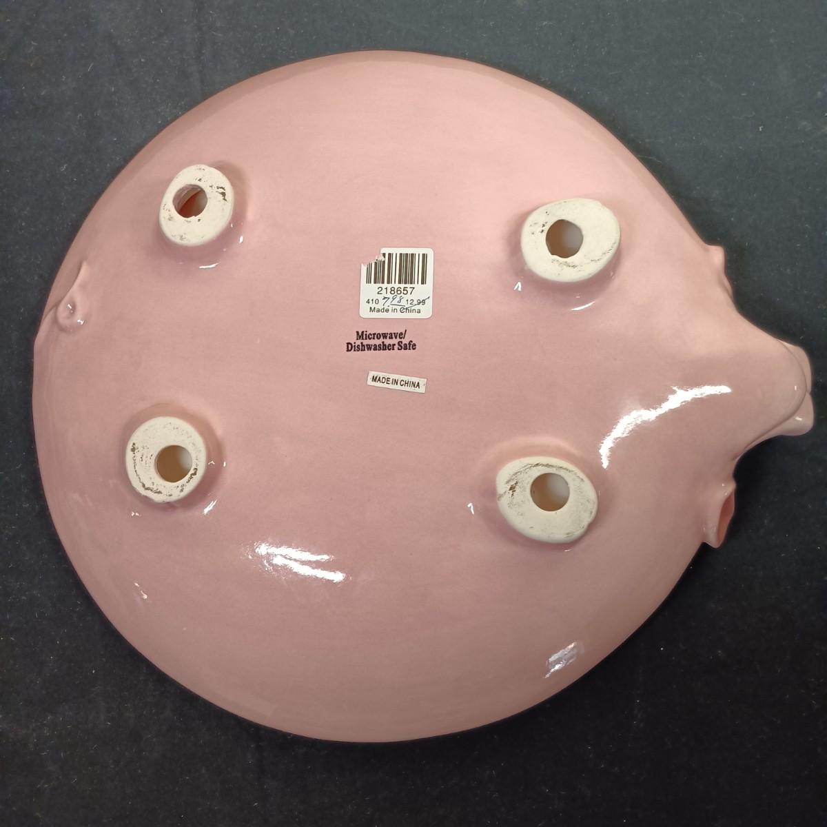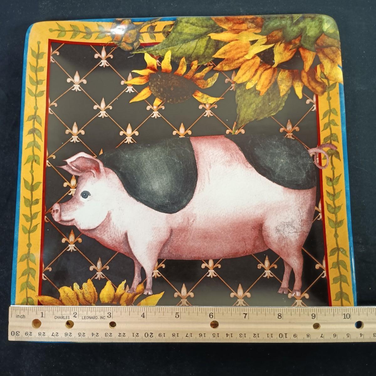 LOT 258K: Pig Collection- Lenox 'Poppies on Blue' Cookie Jar and Votive, Certified International Napkin Holder, Plate and Trivet & More