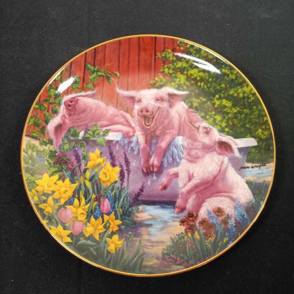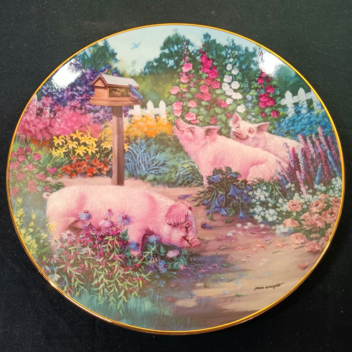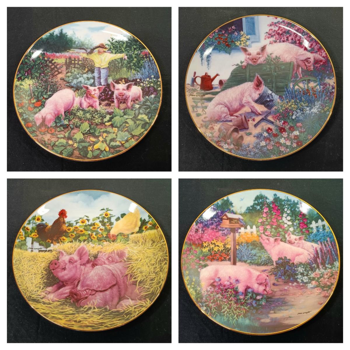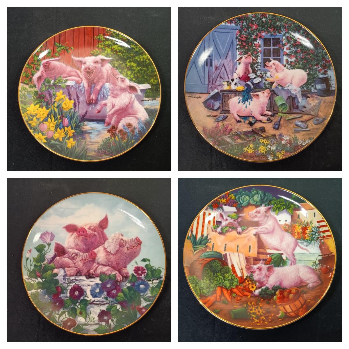 LOT 259 K: Set of 8 Danbury Mint 'Pigs in Bloom' by Joan Wright Collectible Plates