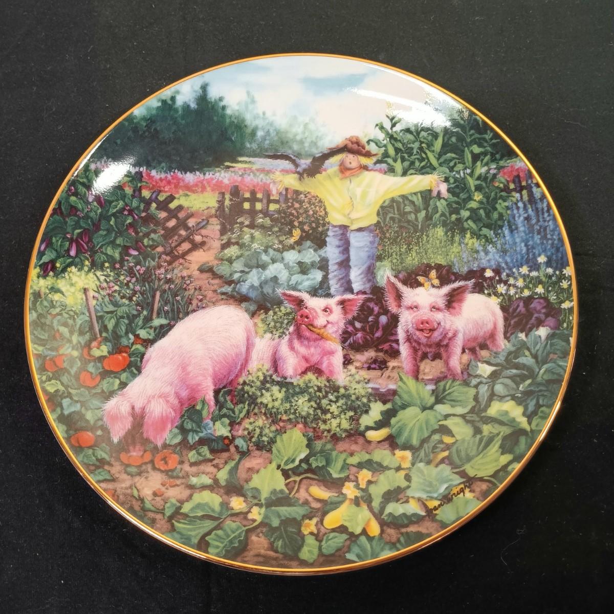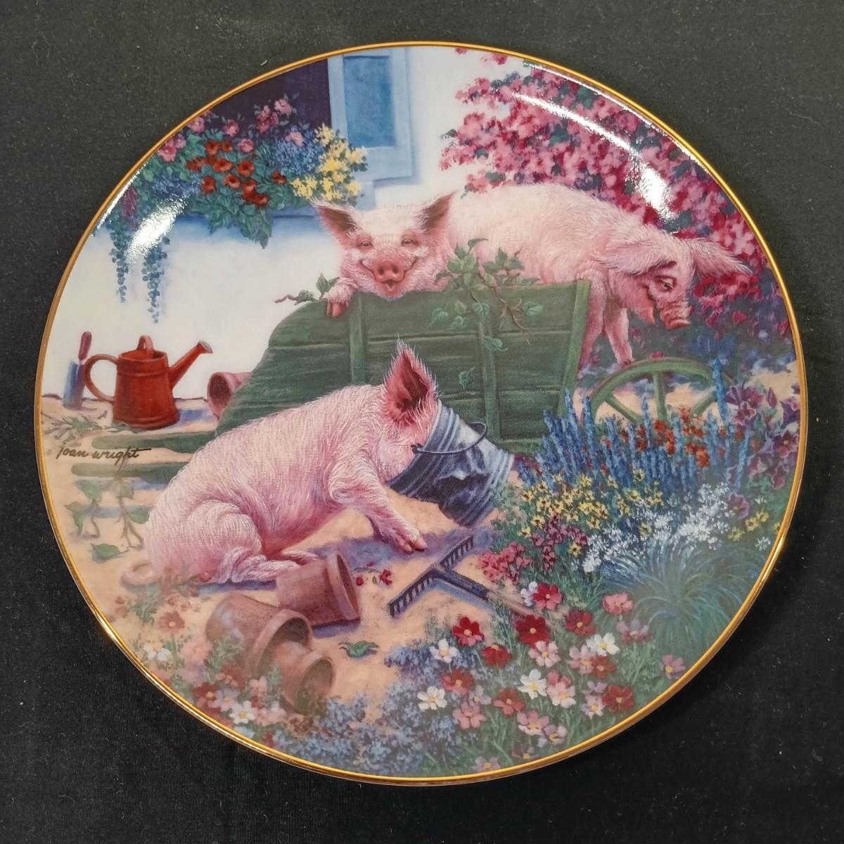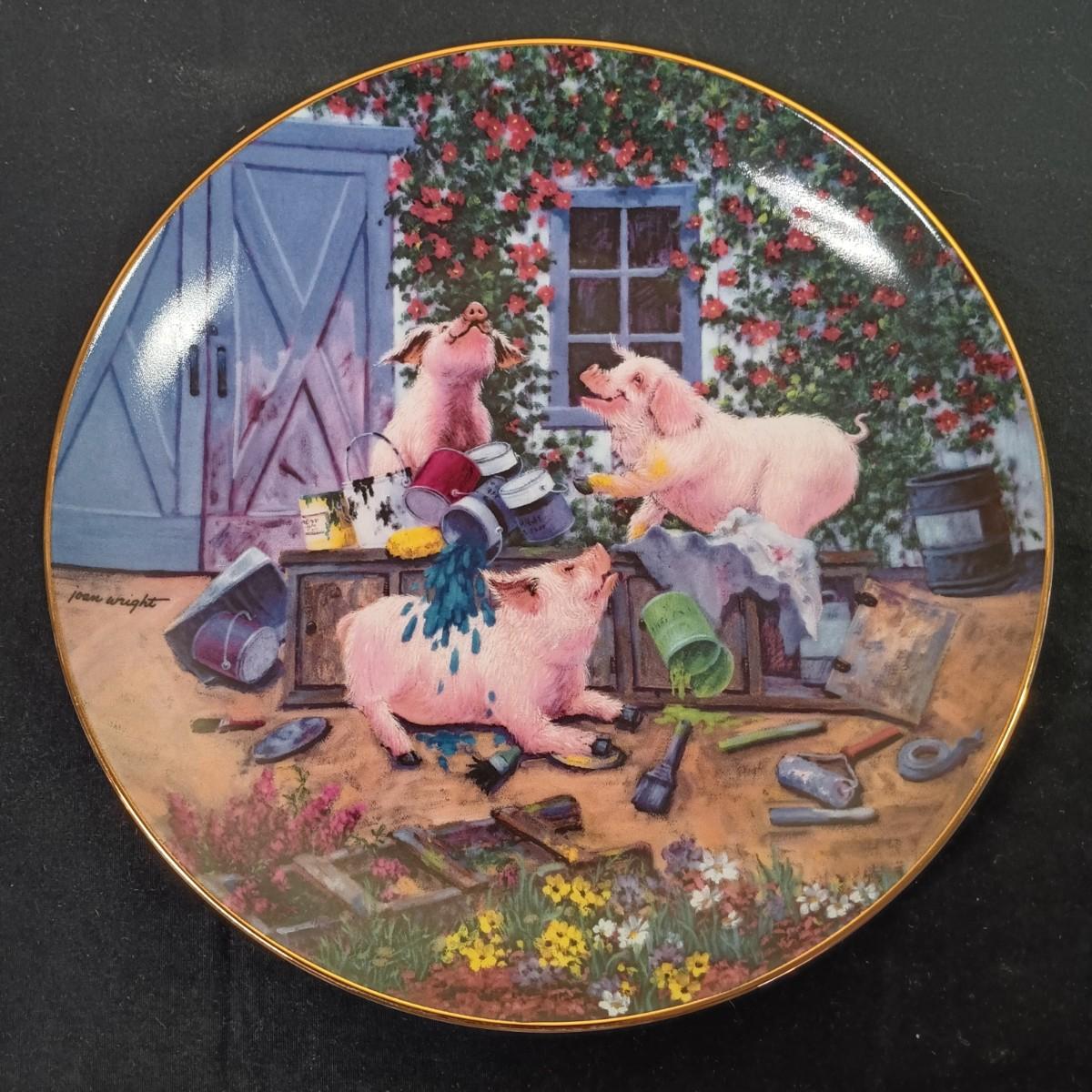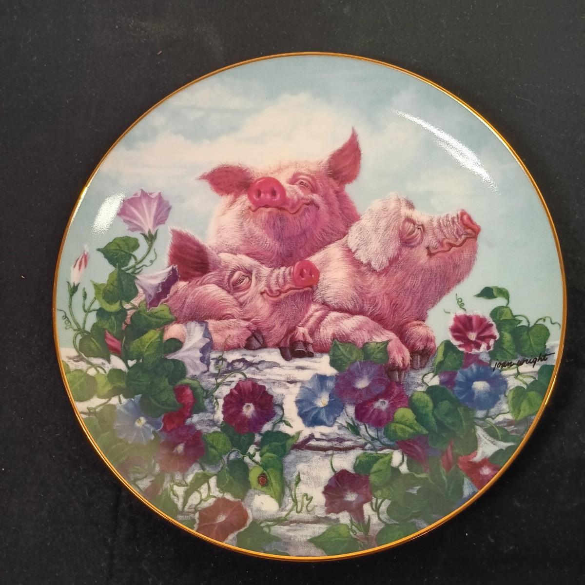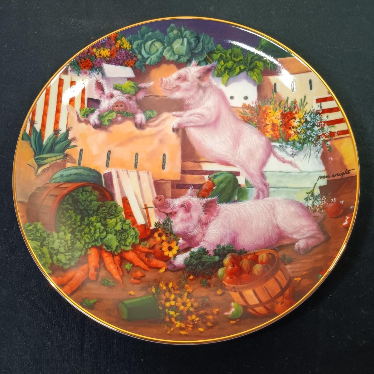 LOT 259 K: Set of 8 Danbury Mint 'Pigs in Bloom' by Joan Wright Collectible Plates
