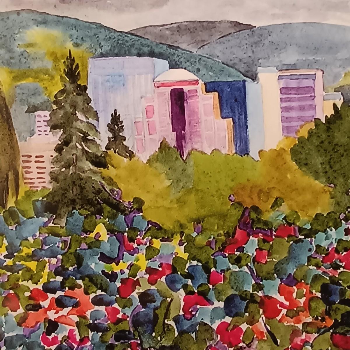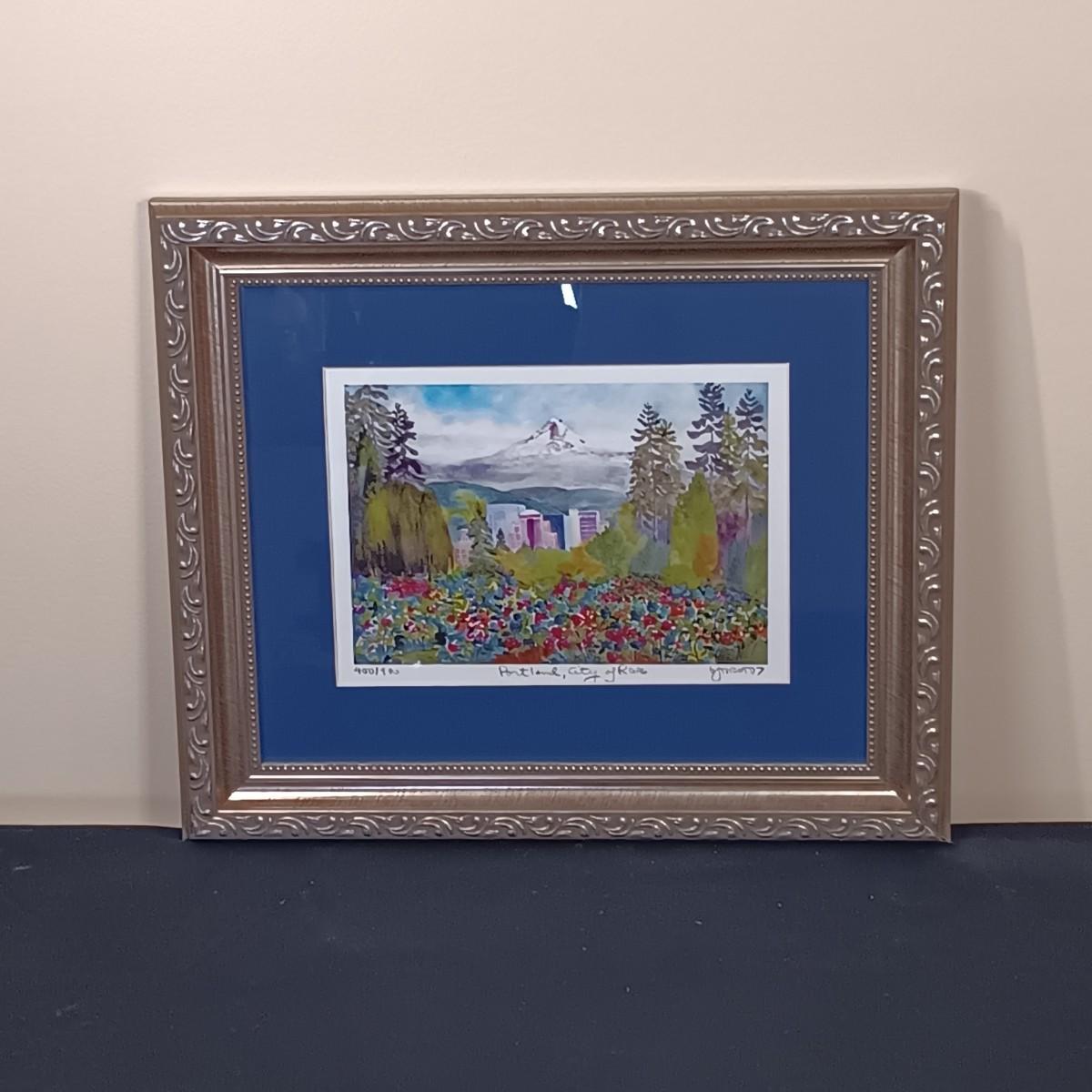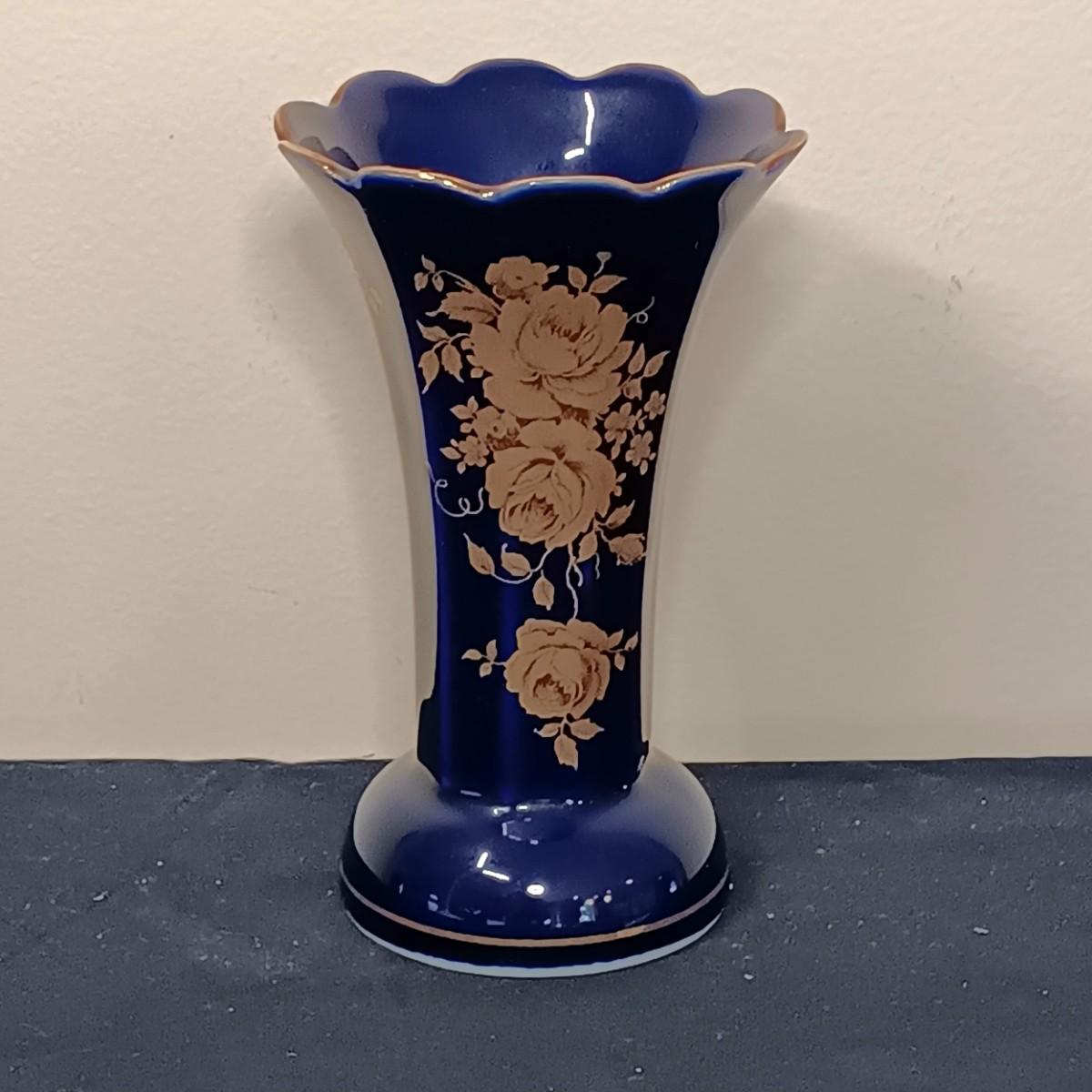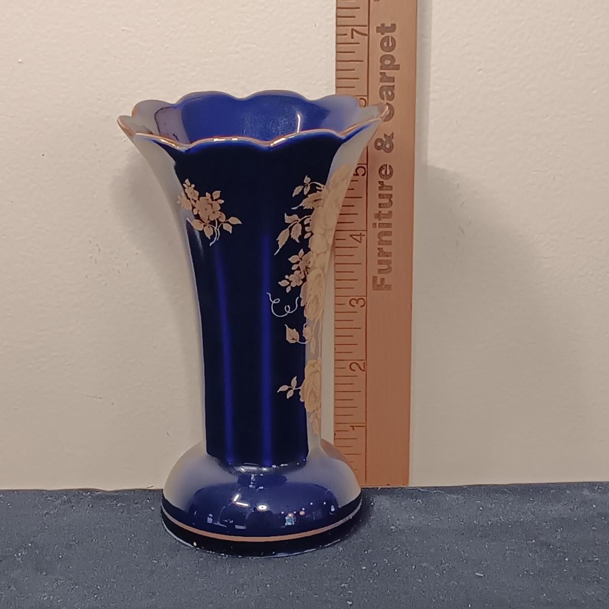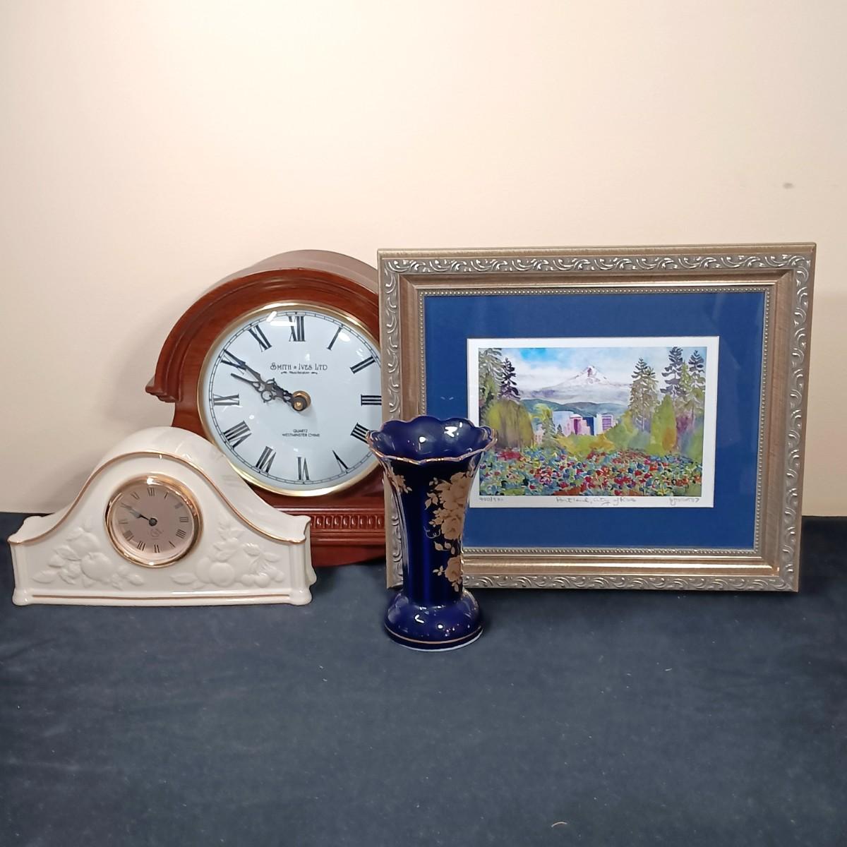 LOT 262K: Lenox 'Fruits of Life' Mantle Clock, Signed Watercolor of Portland, Bareuther Cobalt Vase & Smith & Ives Clock
