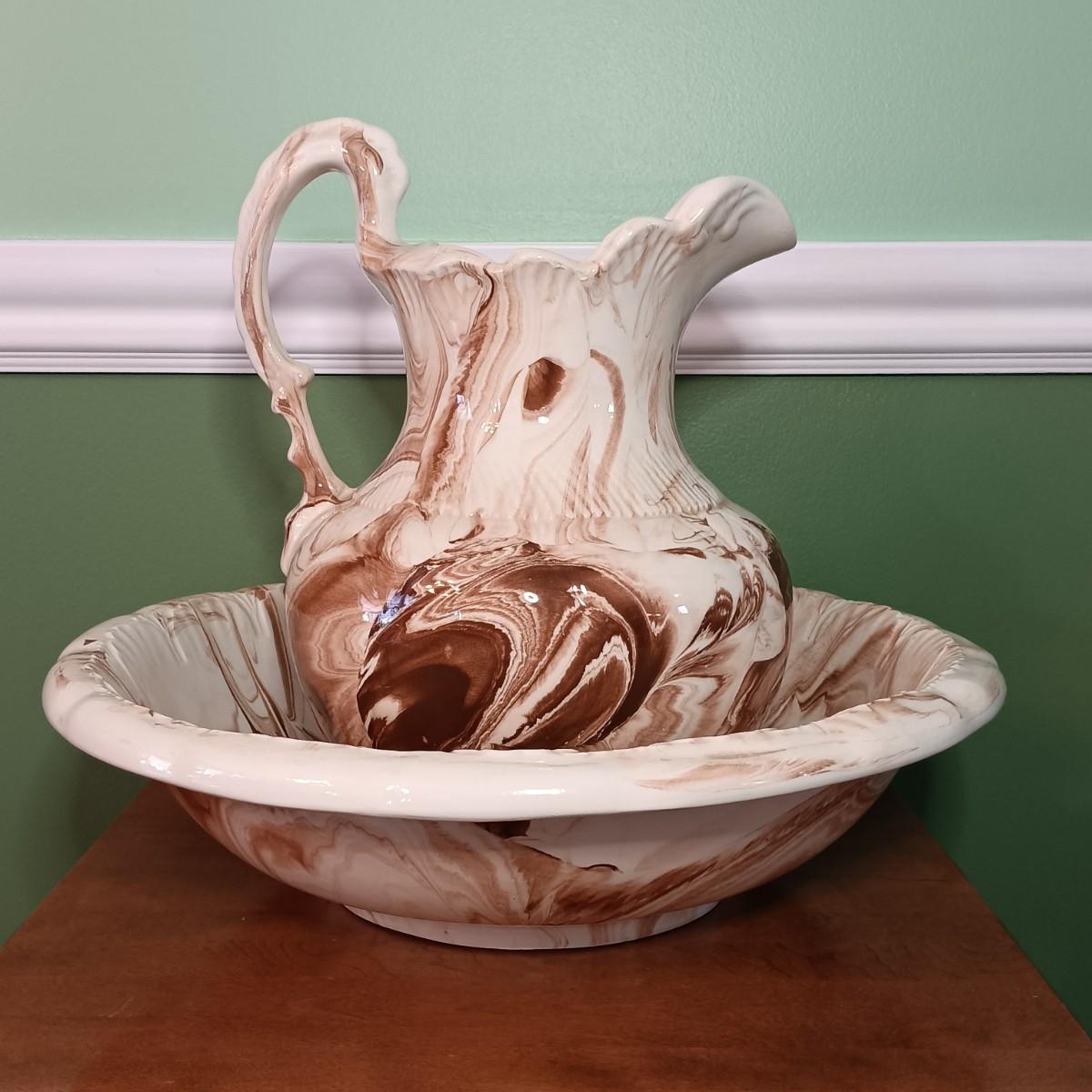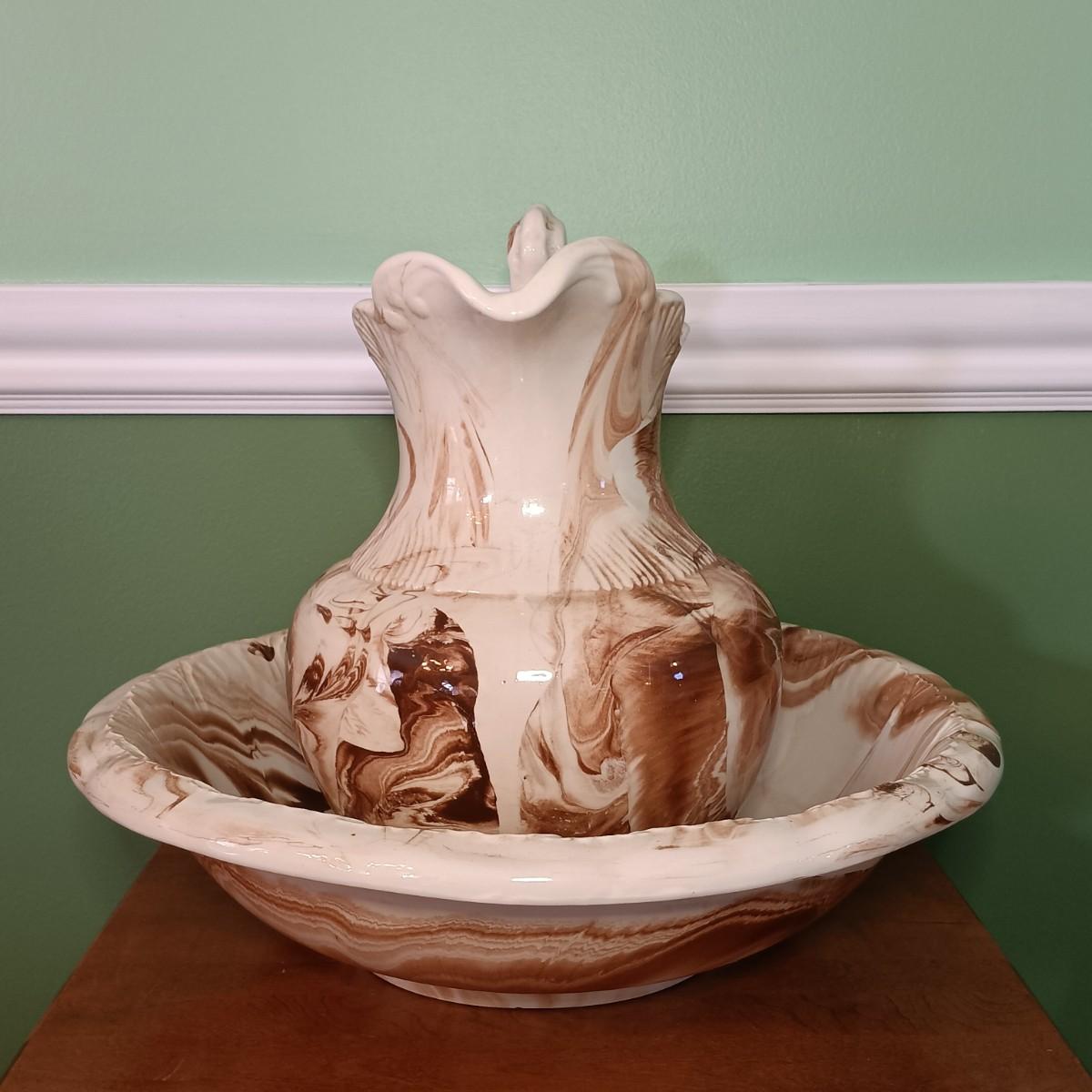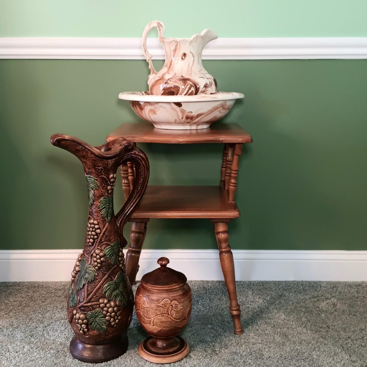 LOT 263D: Vintage Pitcher and Bowl with Side Table & More