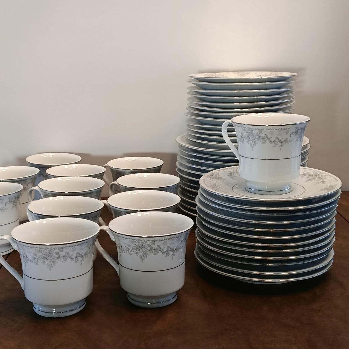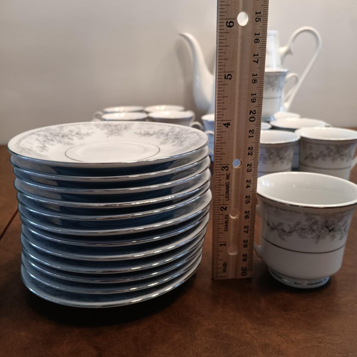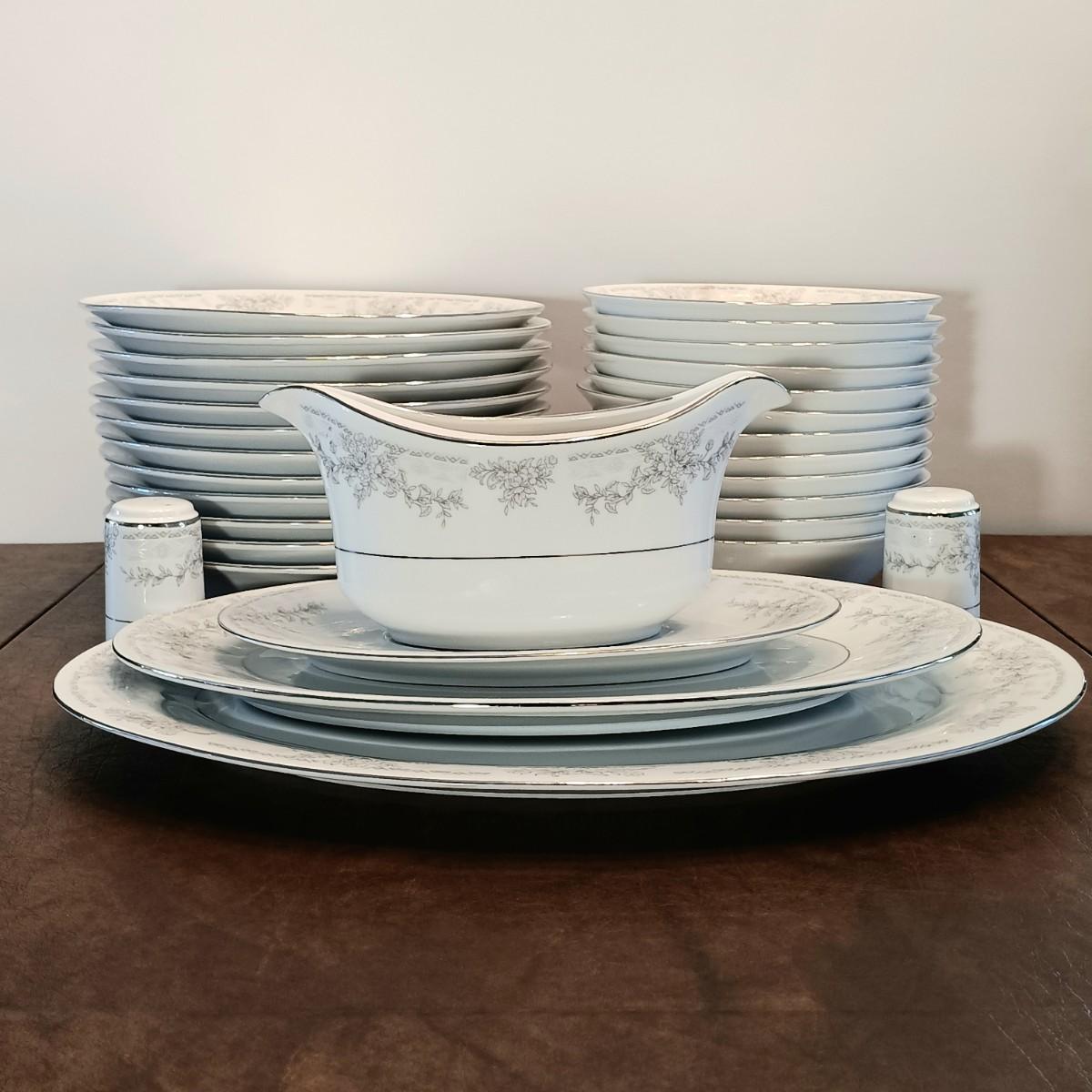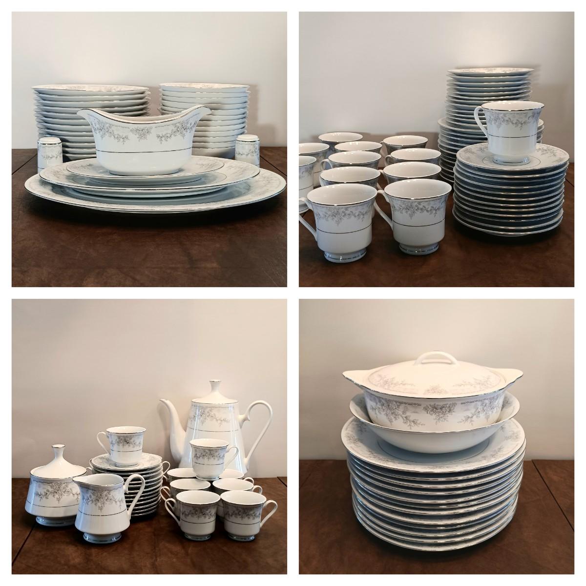 LOT 265D: Lynn's 'Olivia' Grey and White Fine China Set