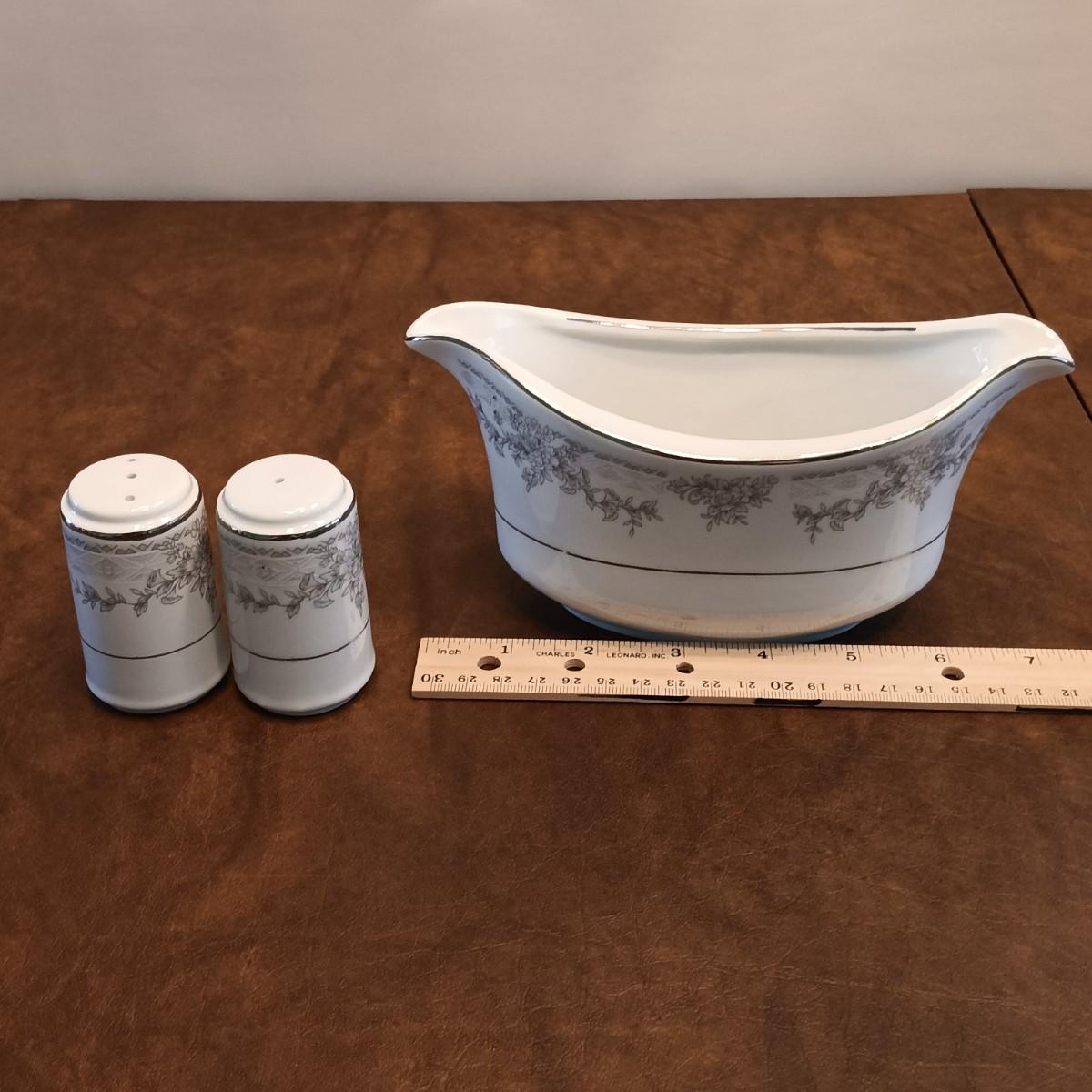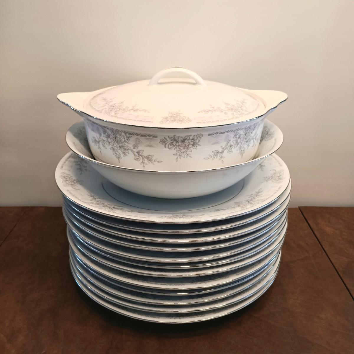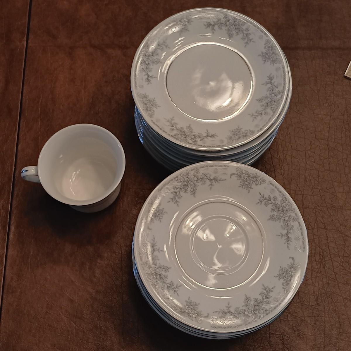 LOT 265D: Lynn's 'Olivia' Grey and White Fine China Set