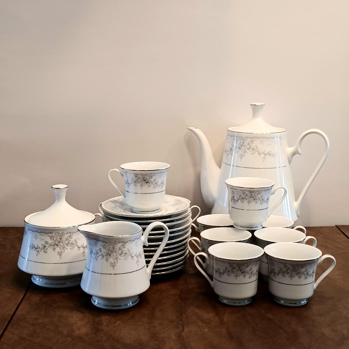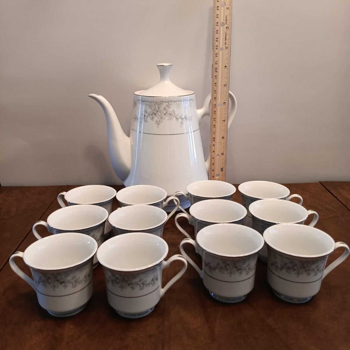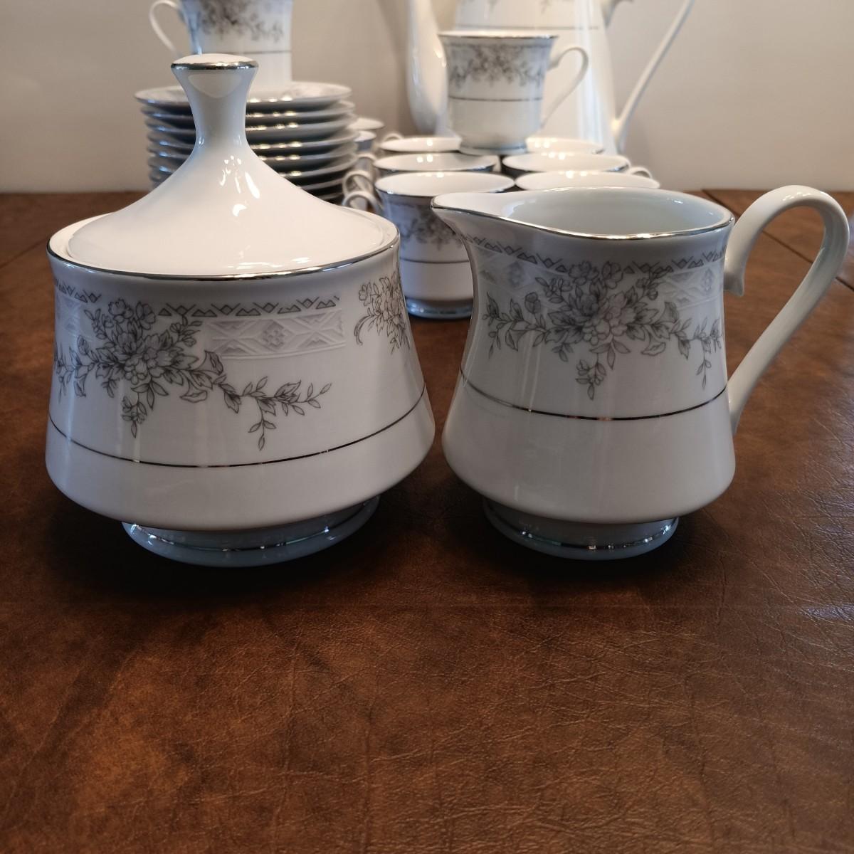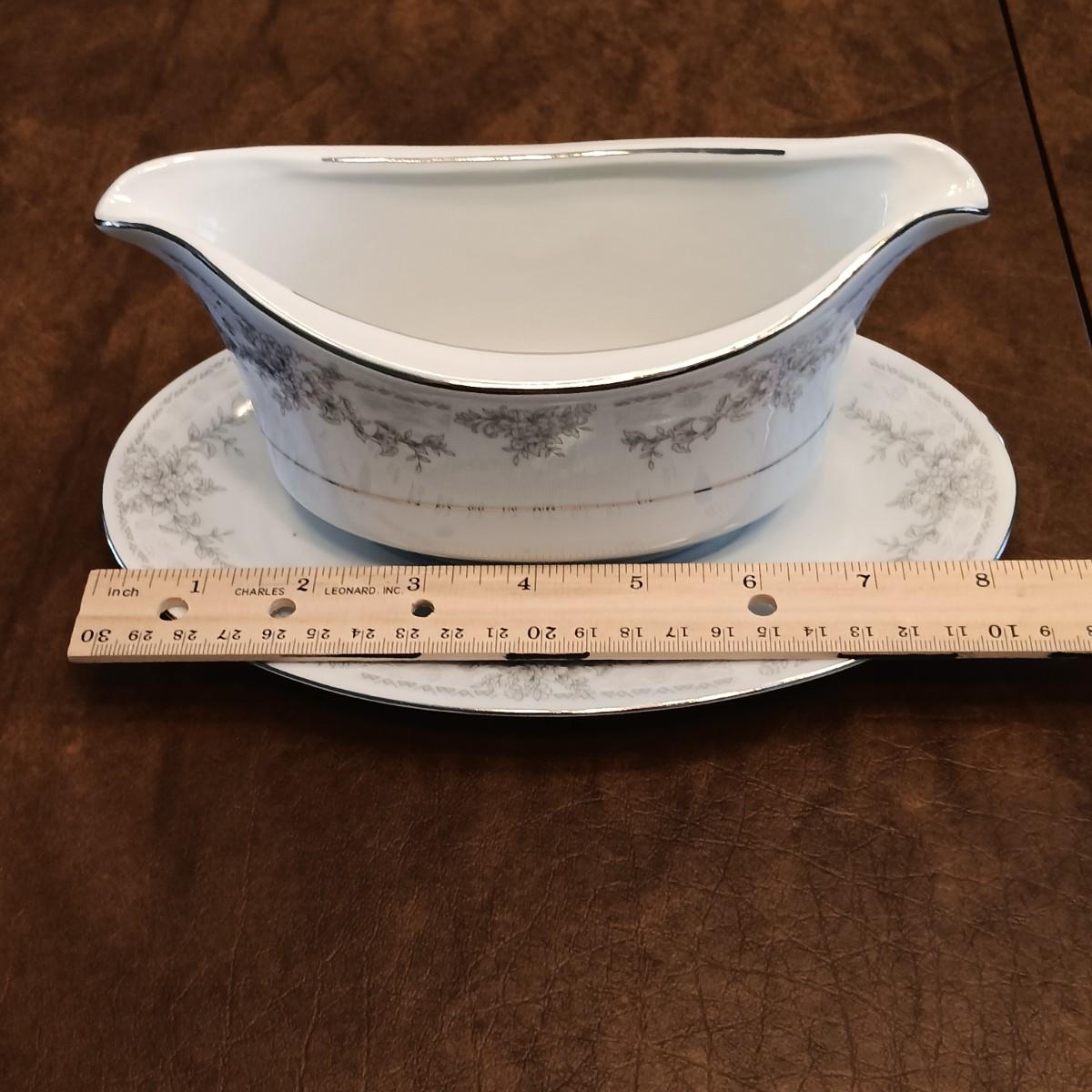 LOT 265D: Lynn's 'Olivia' Grey and White Fine China Set